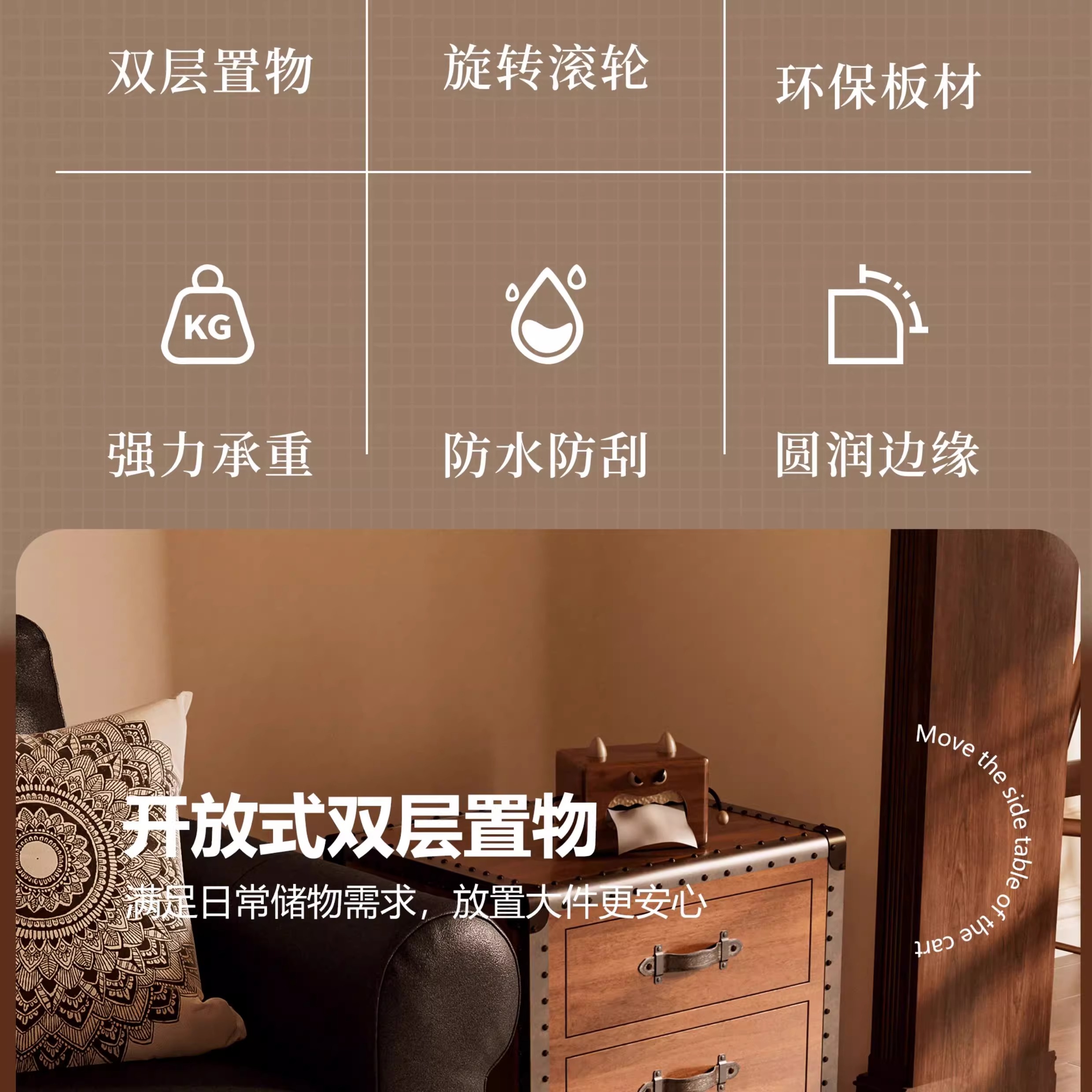 沙发边几可移动客厅小推车置物架带轮奶油风小茶几家用简易小桌子