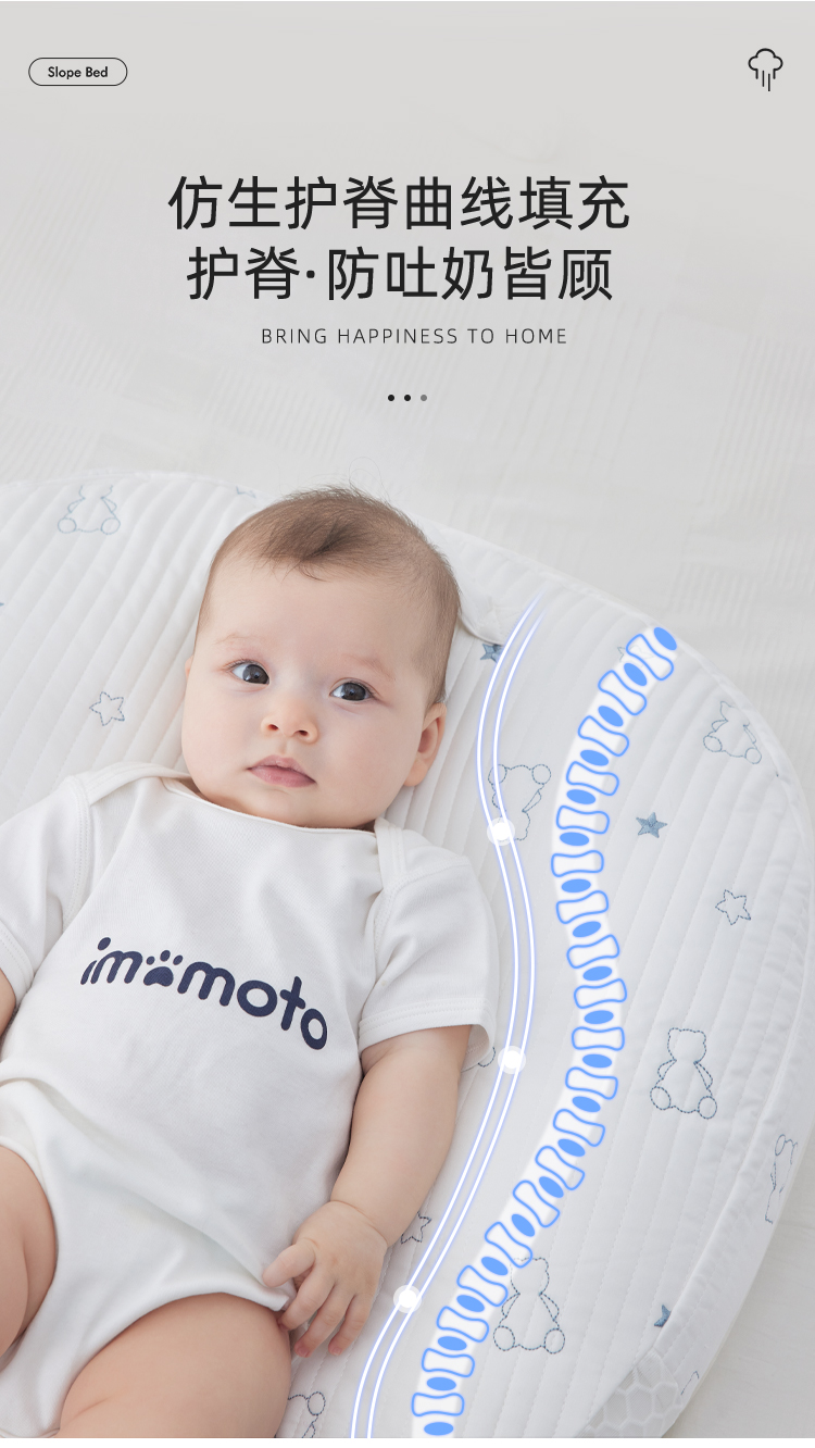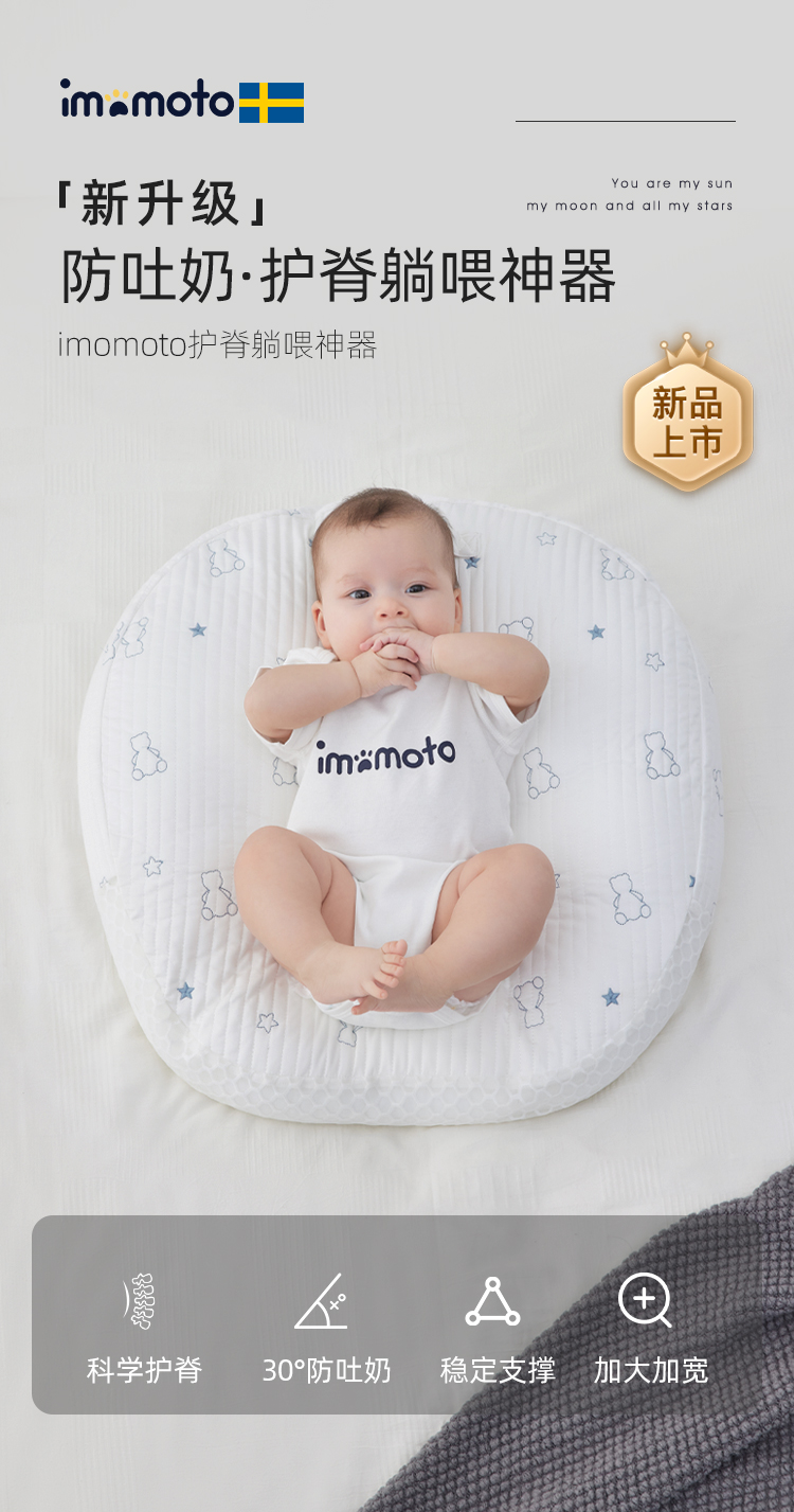 imomoto喂奶斜坡垫哺乳枕婴儿防吐奶斜坡垫安抚宝宝防溢呛奶神器