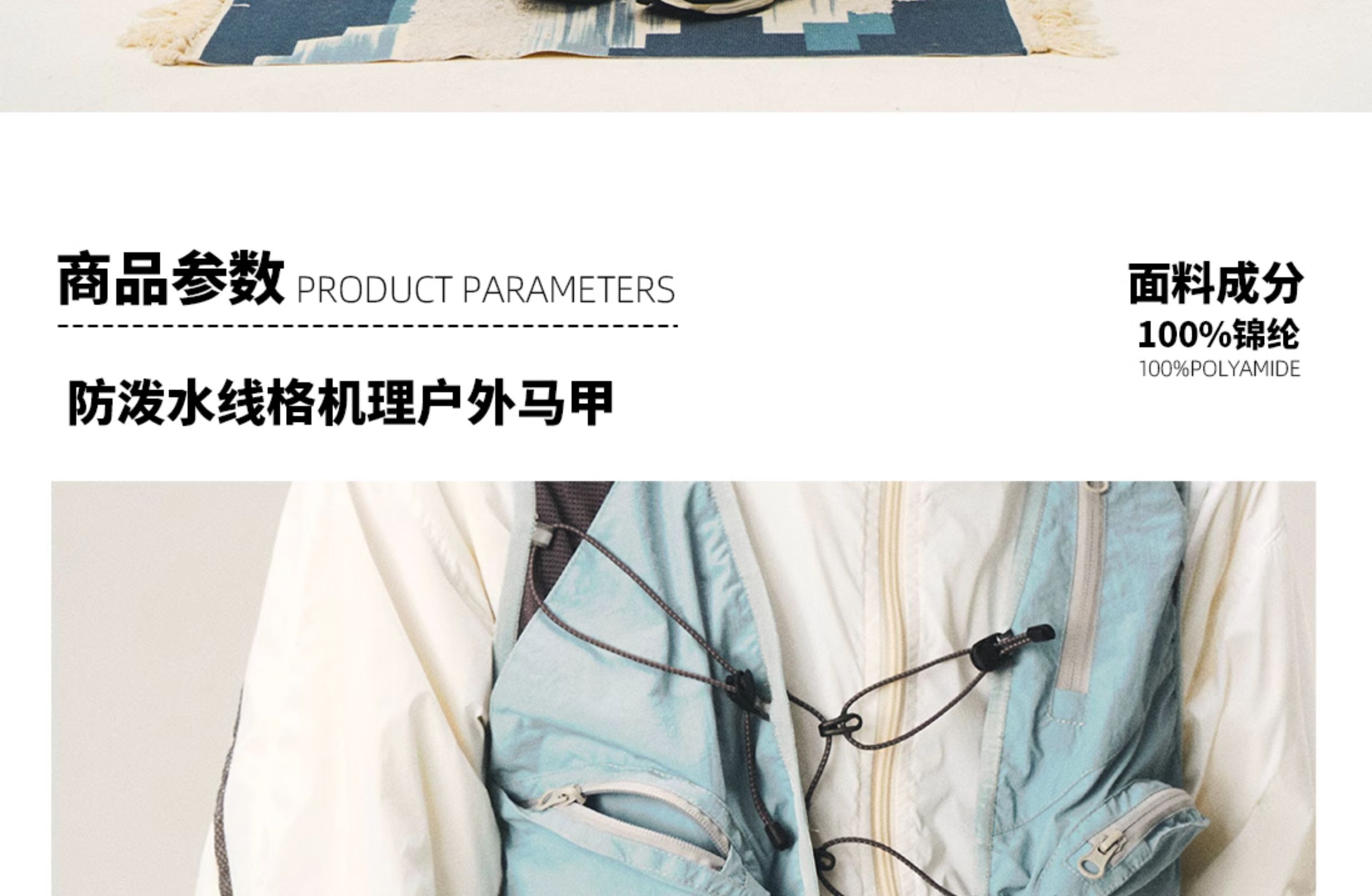 Halcyon 山系户外防泼水线格肌理马甲男多功能运动钓鱼马甲背心