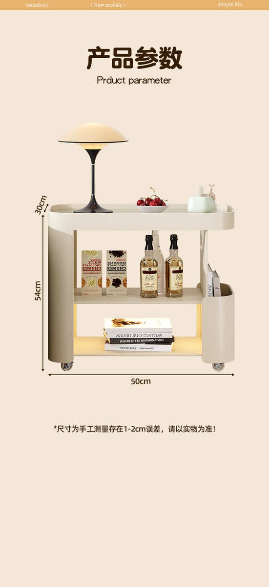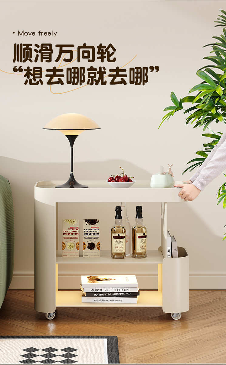 沙发边几轻奢高级感客厅中古风可移动茶几复古小推车床头带轮边柜