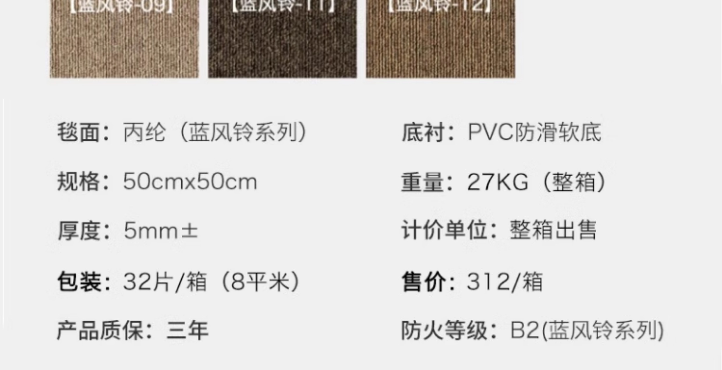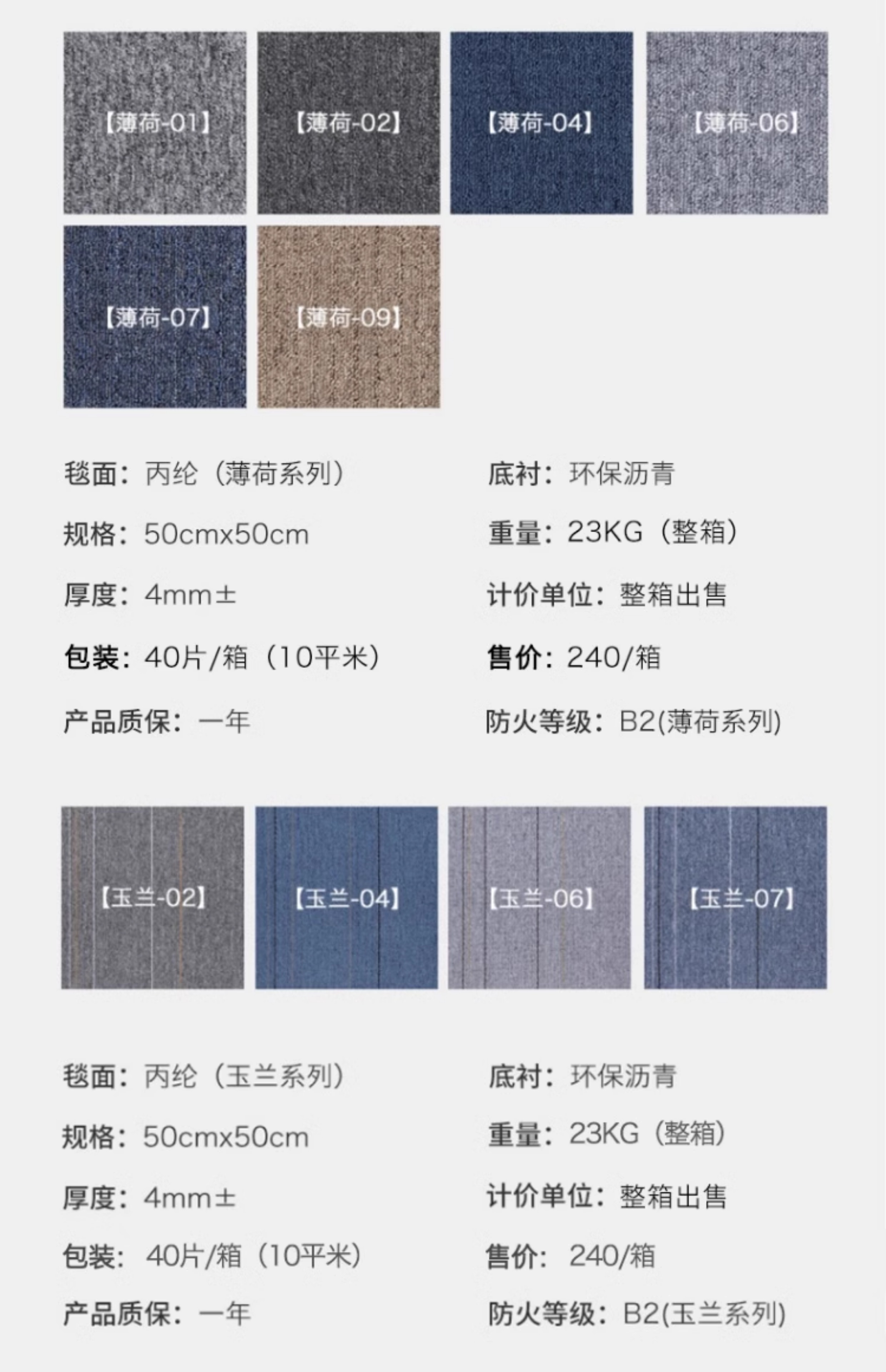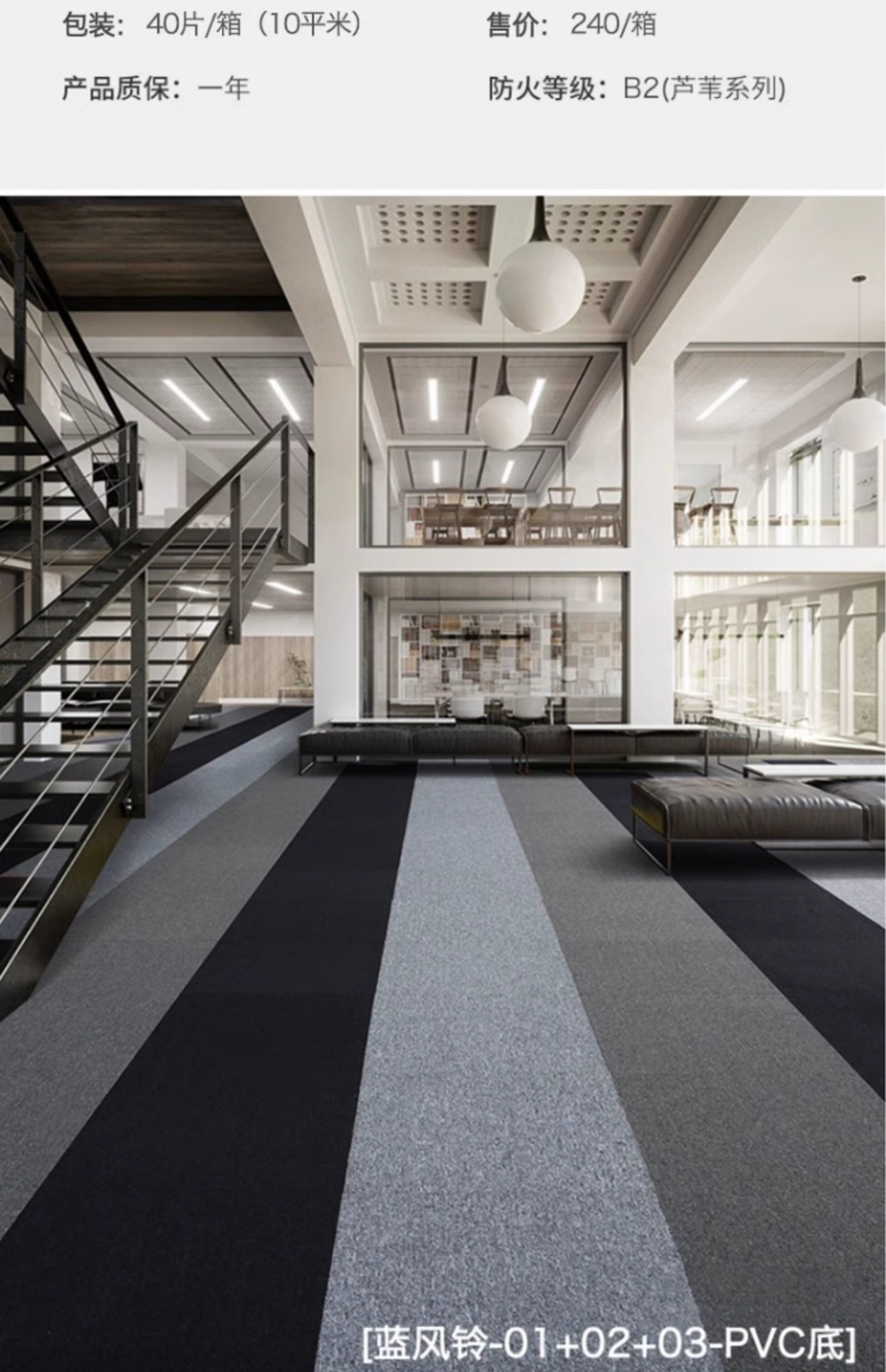 办公室方块拼接地毯商用台球厅写字楼工作室专用大面积全铺pvc