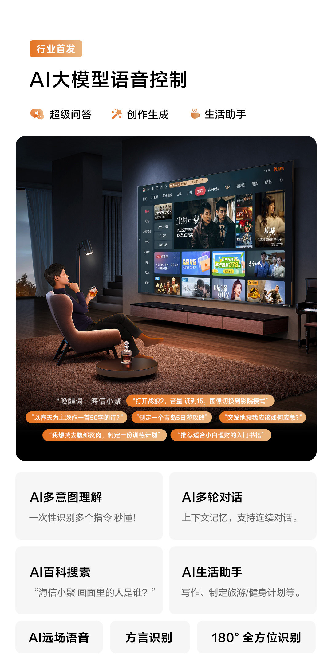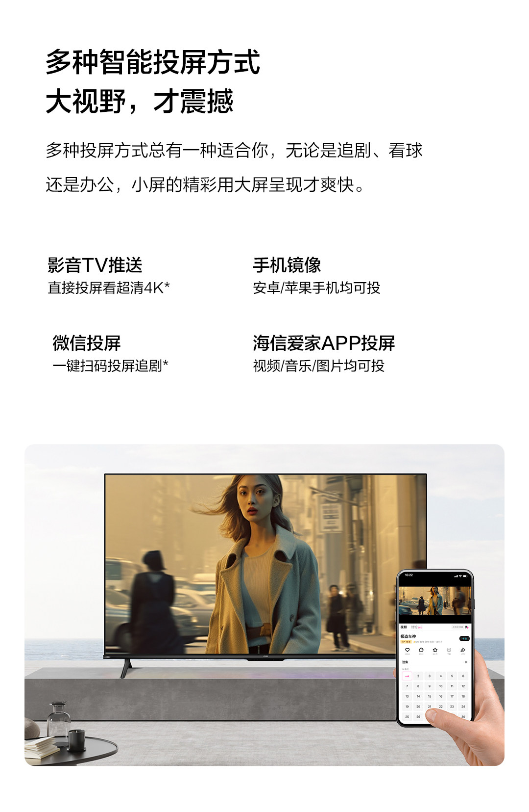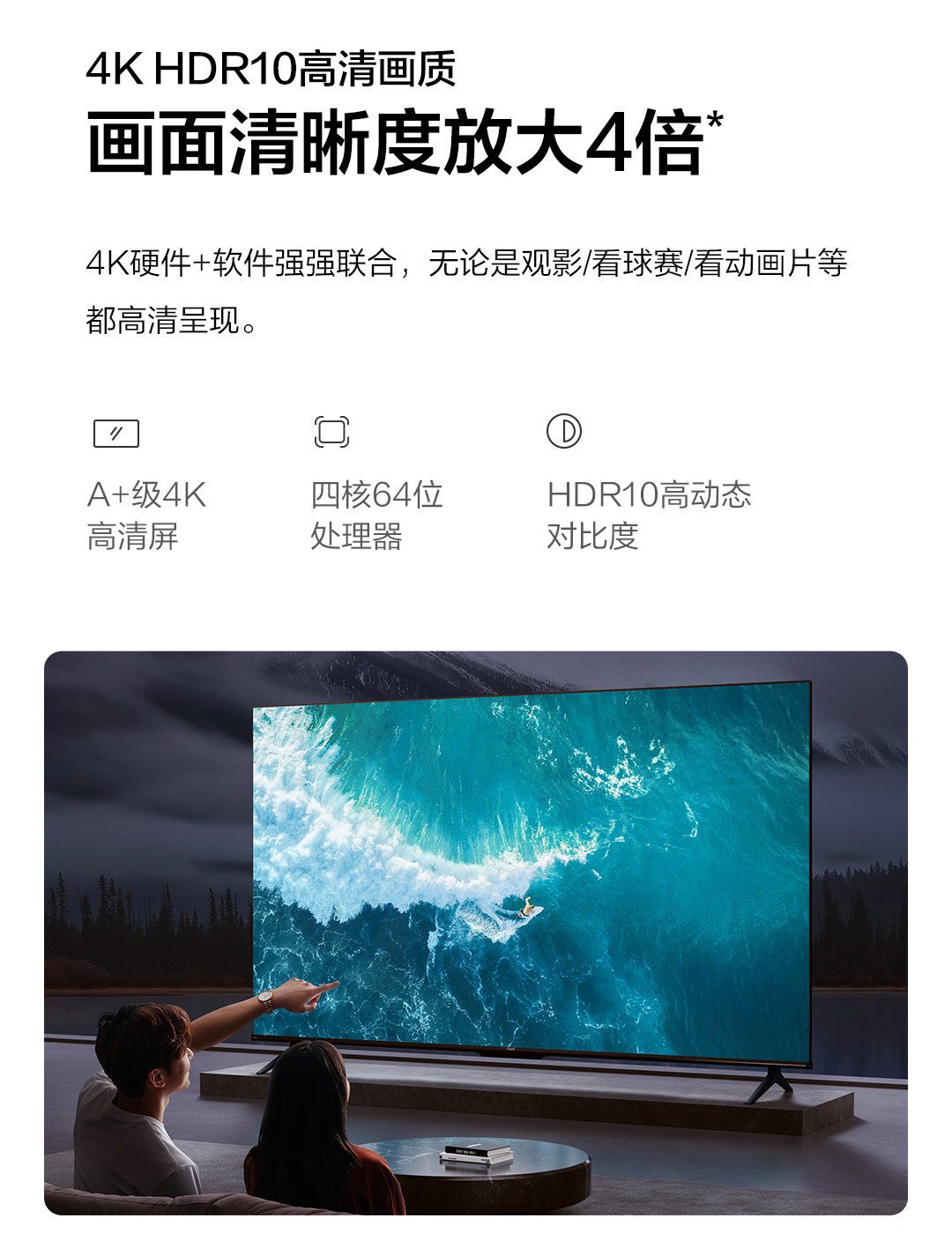 Vidda R55海信电视55英寸4K全面屏液晶平板智能家用电视机65