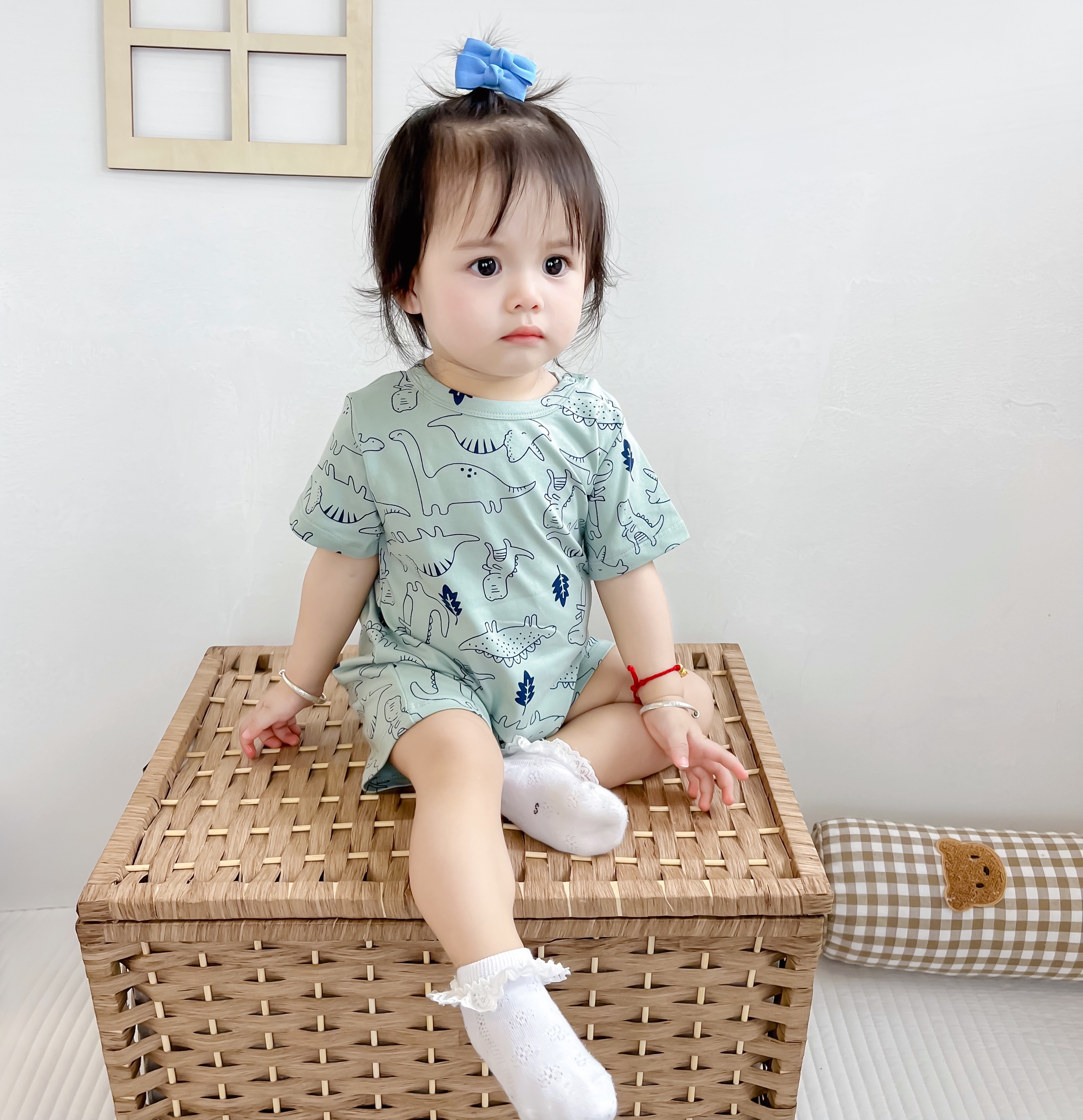 ins夏季薄款爬服短袖婴儿衣服 可爱超萌女宝宝洋气哈衣纯棉连体衣