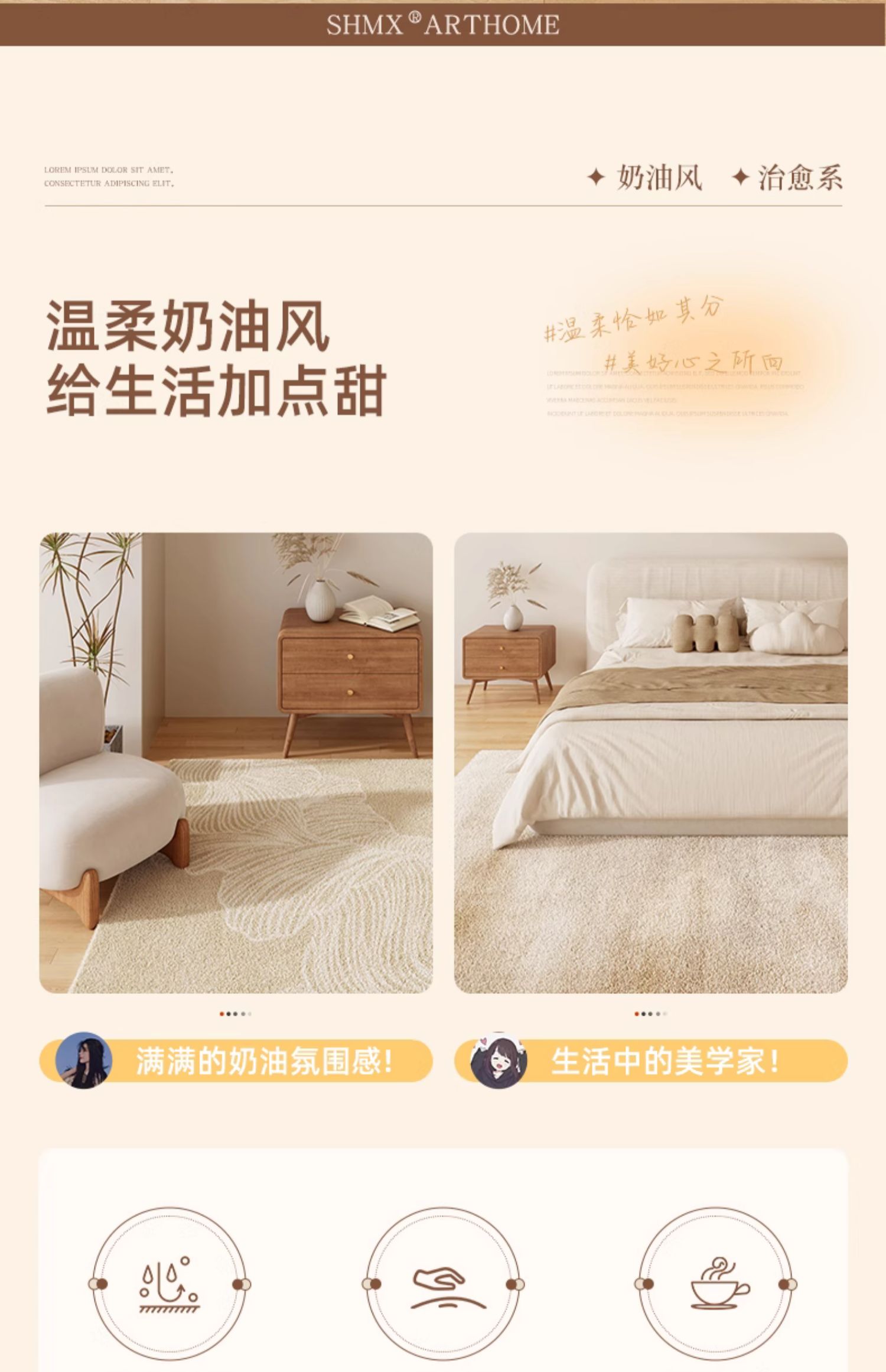 地毯卧室奶油风ins床边毯免打理家用客厅茶几毯加厚隔音满铺地垫