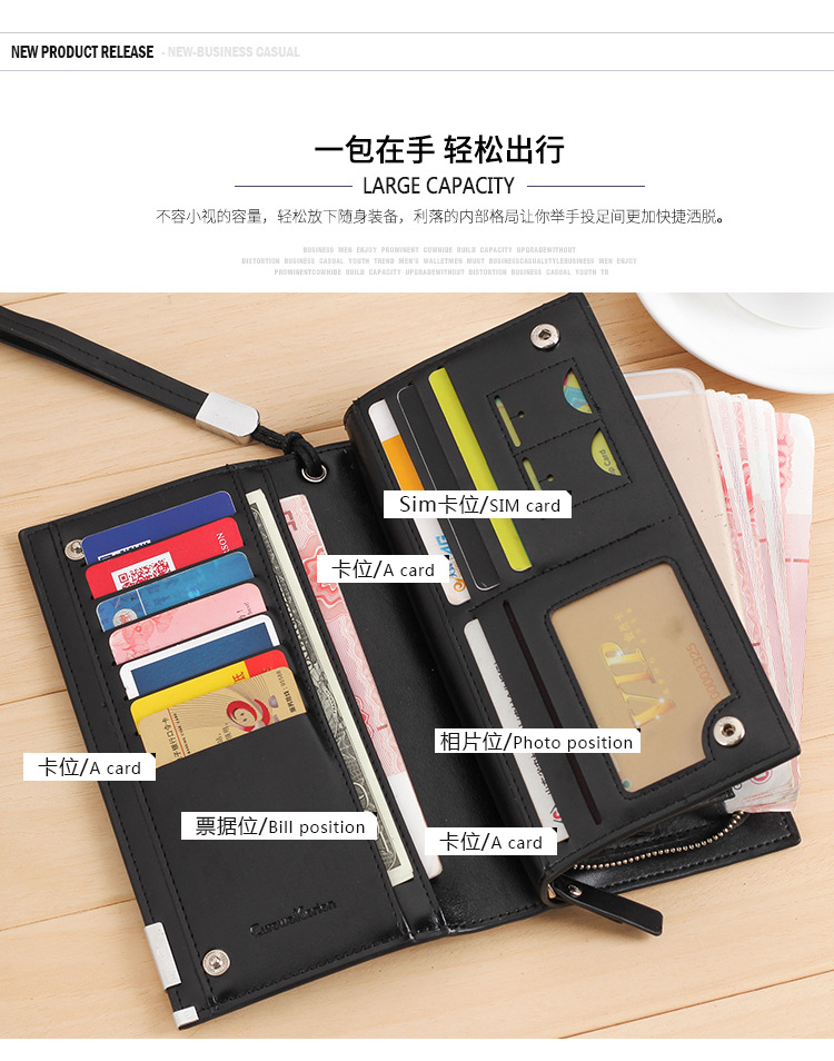 钱包男长款拉链手包时尚多功能商务青年手拿包多卡位男士手机包潮