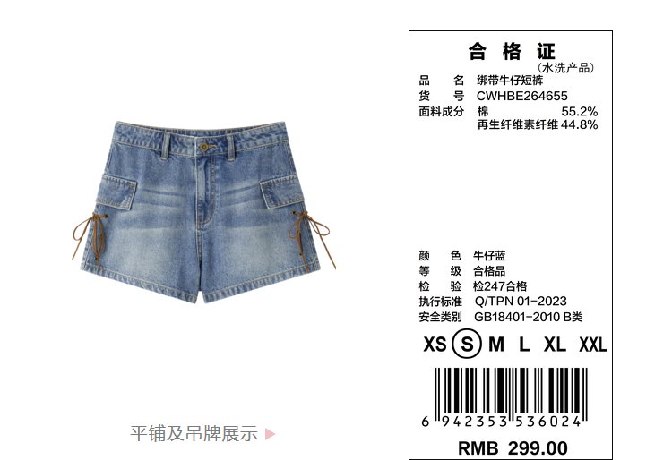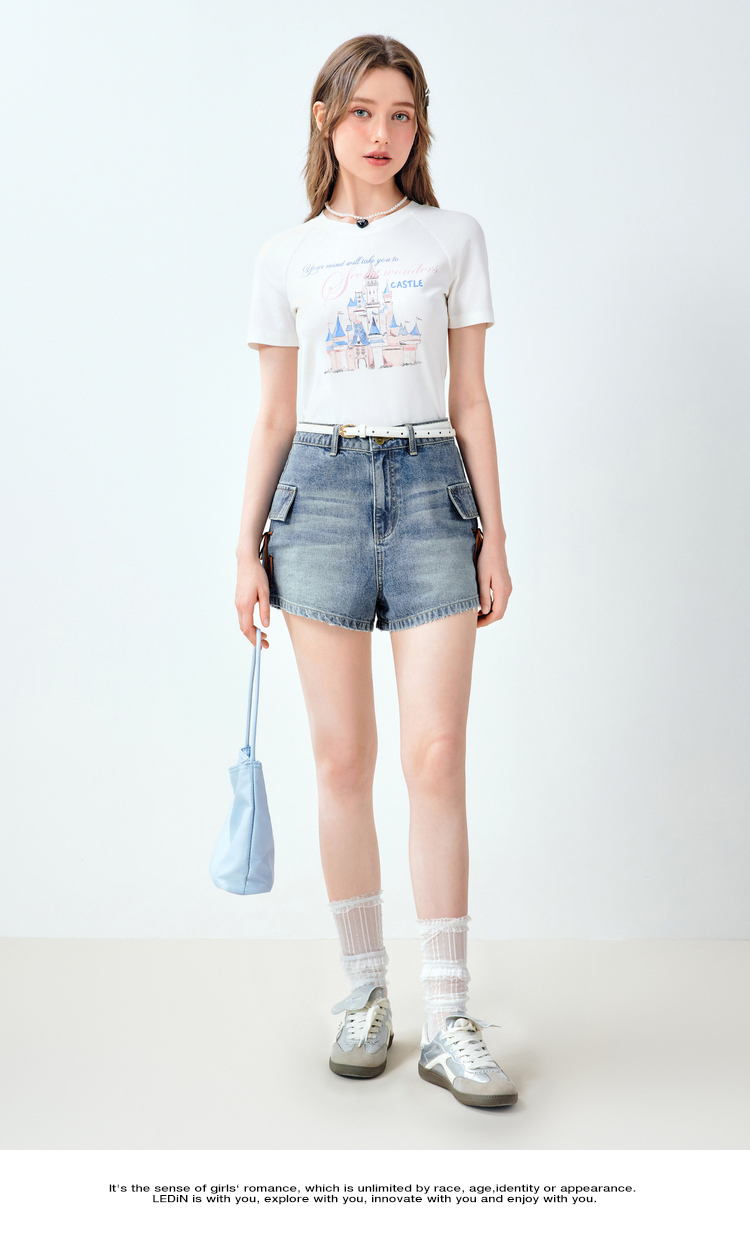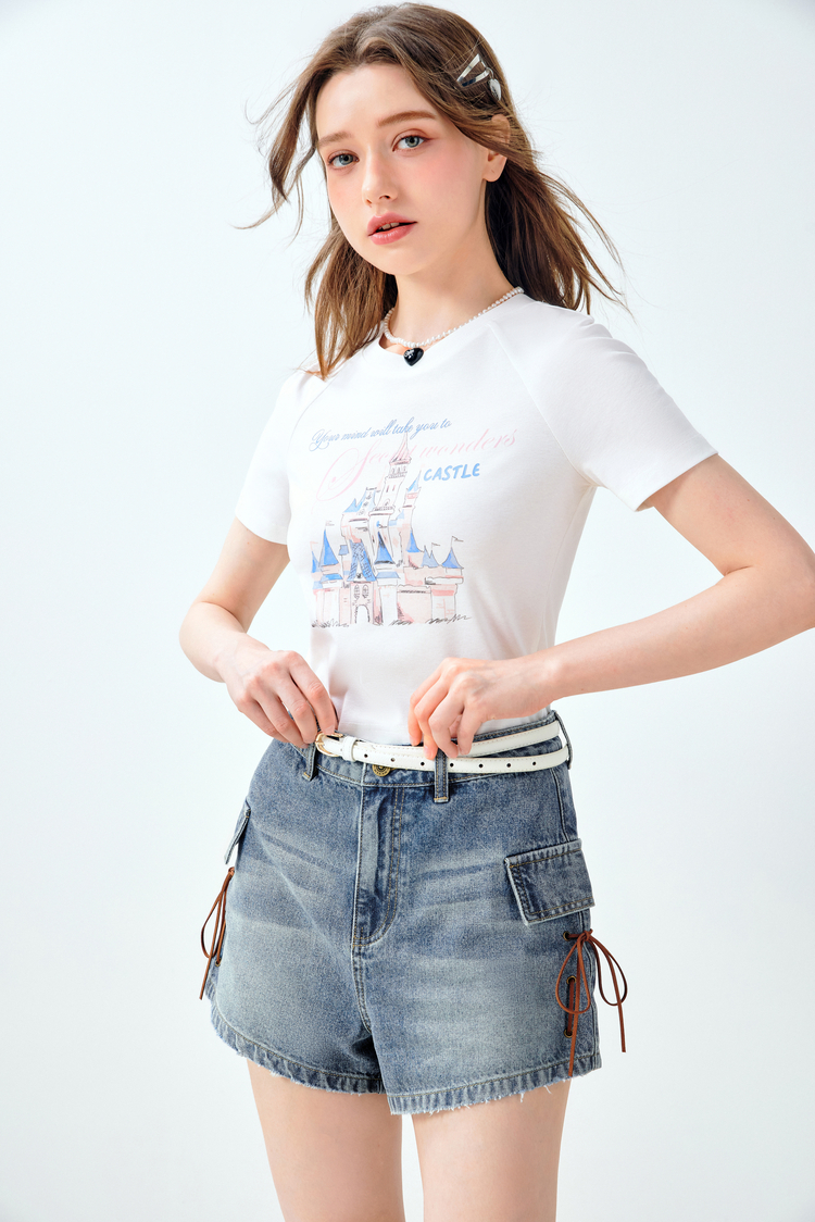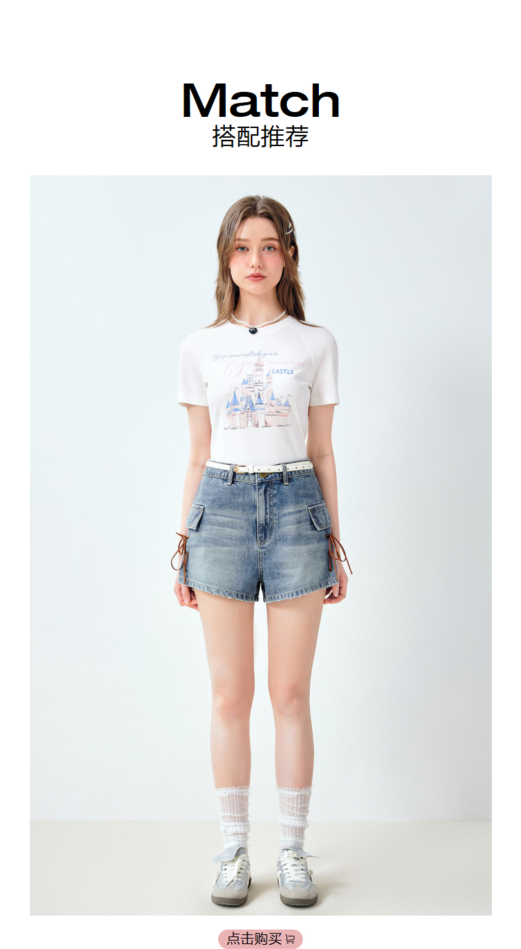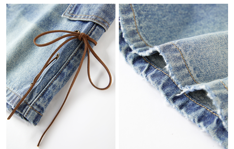 乐町绑带设计牛仔短裤夏季新款怀旧套色洗水色性感辣妹休闲裤子