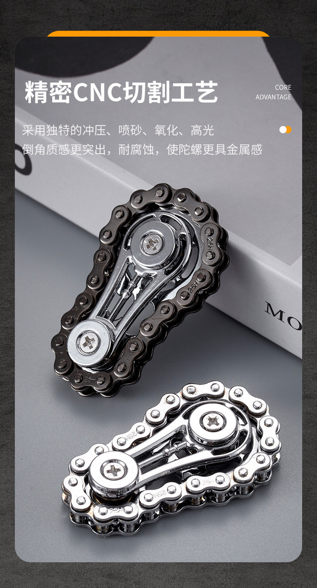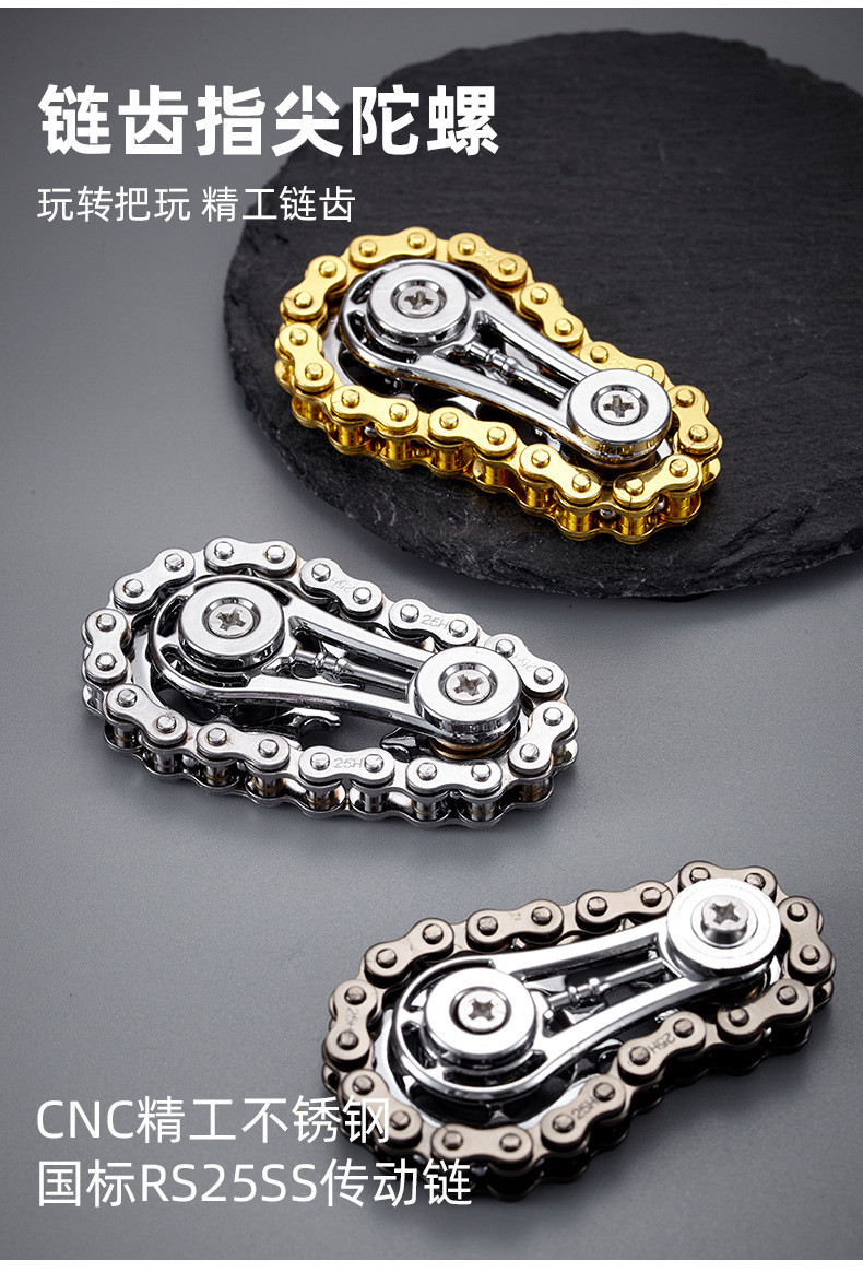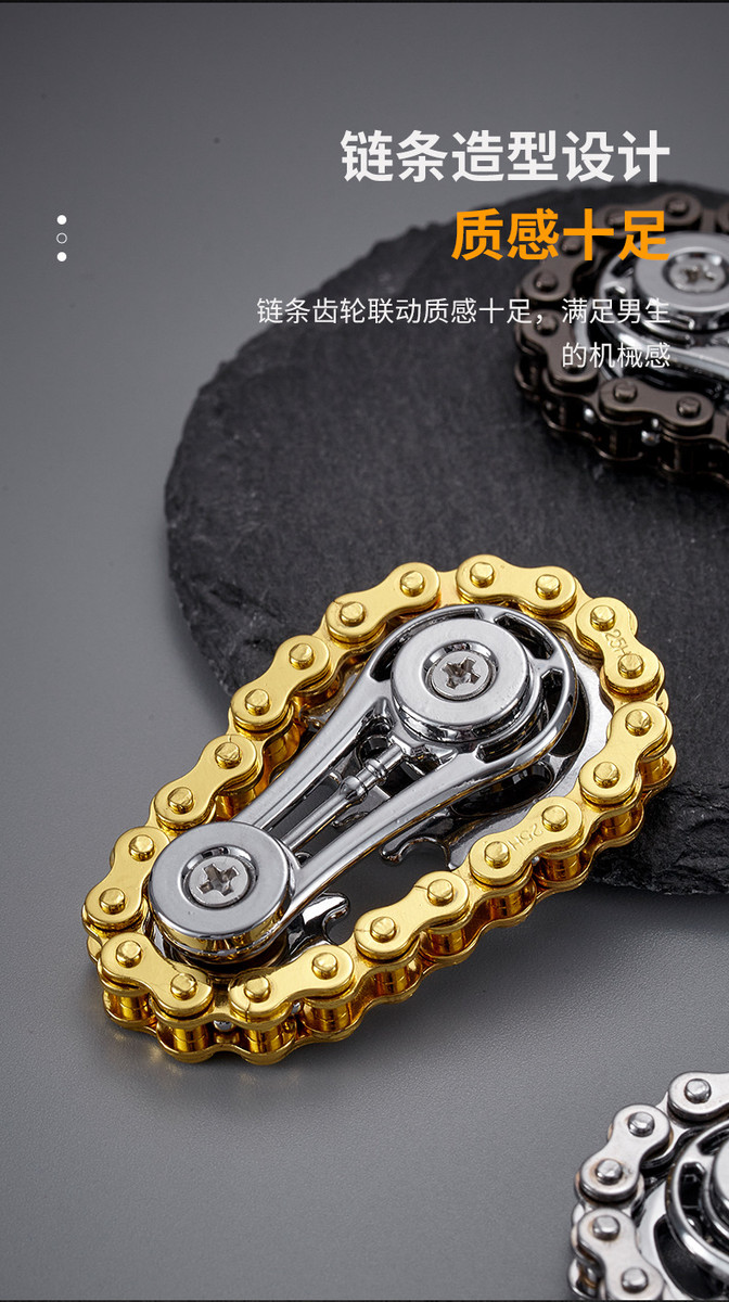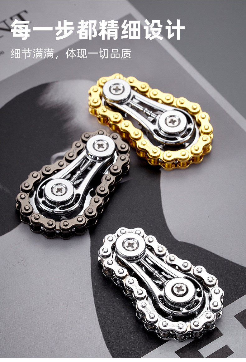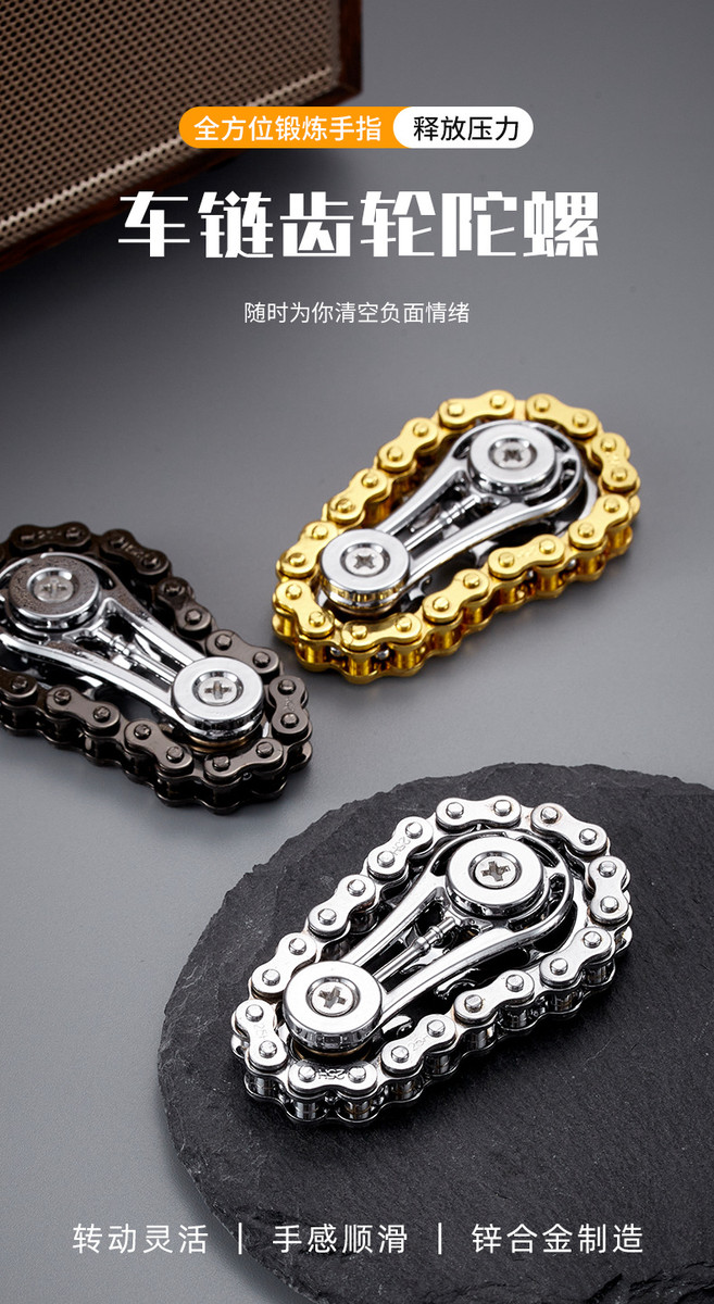 金属车轮齿轮车链指尖陀螺链条减压玩具解压神器有趣陀螺无聊神器
