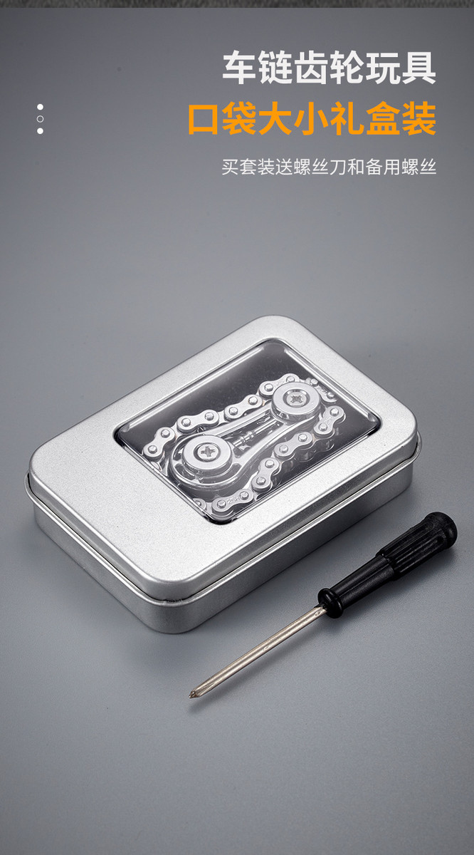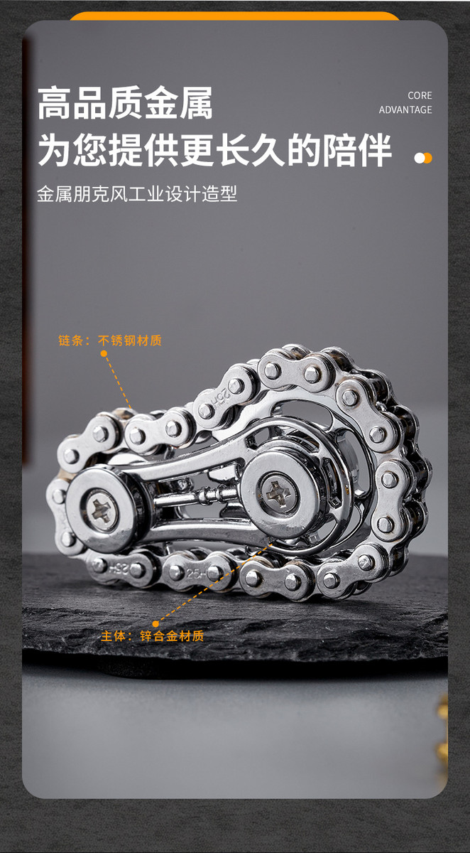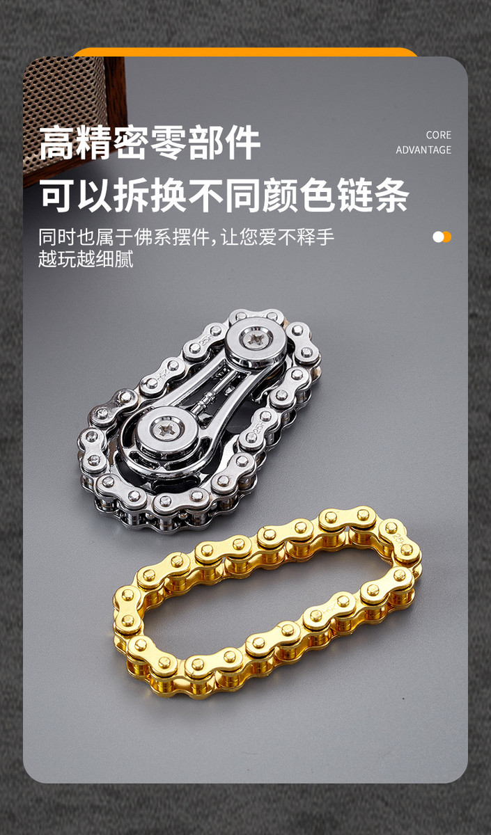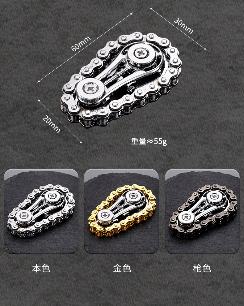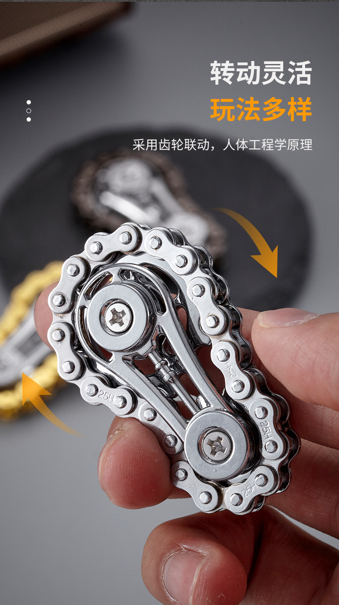 金属车轮齿轮车链指尖陀螺链条减压玩具解压神器有趣陀螺无聊神器