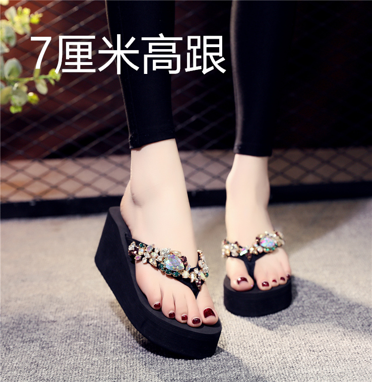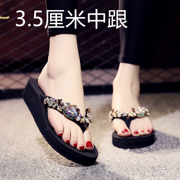 网红2025高跟串珠水钻拖鞋女夏时尚外穿防滑夹脚凉拖鞋沙滩人字拖