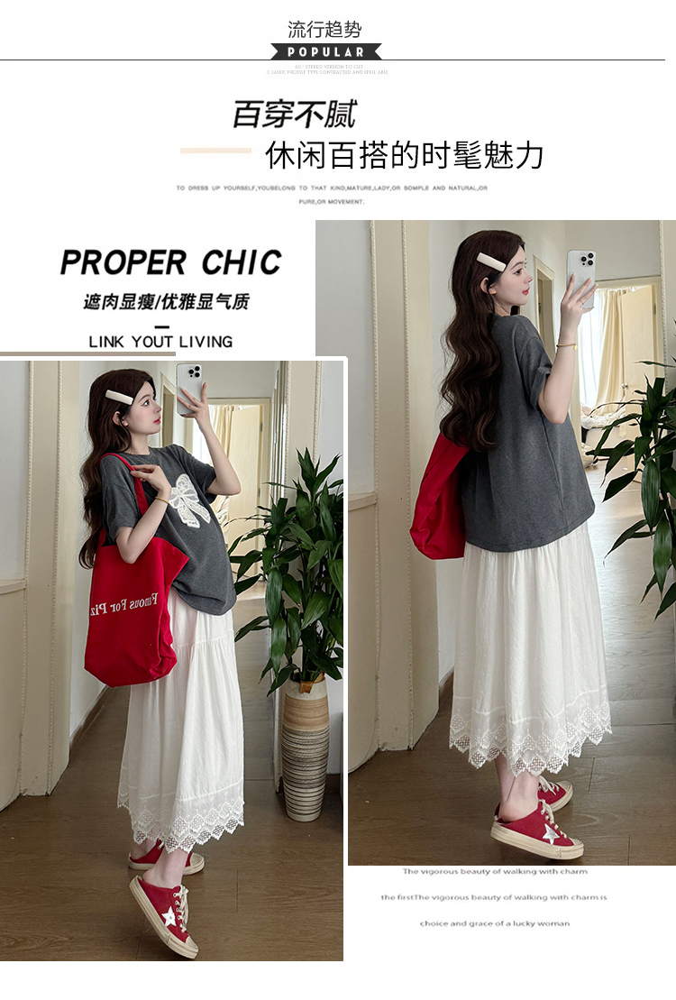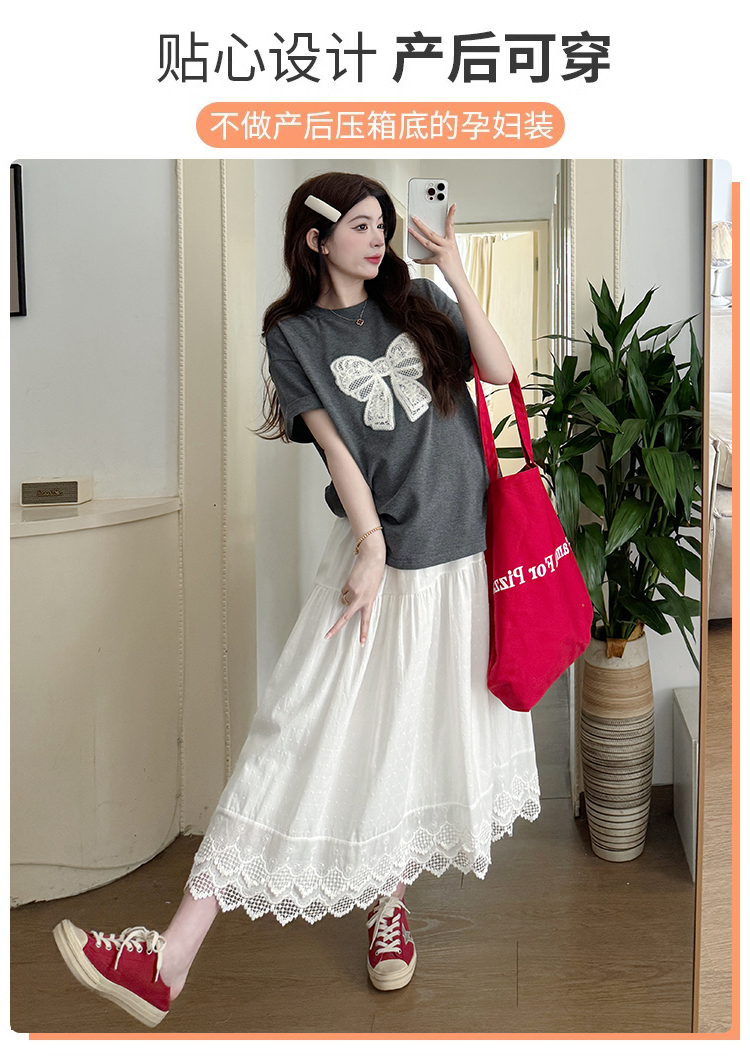 孕妇装夏装2025新款套装孕妈妈高级感穿搭t恤上衣+半身裙两件套