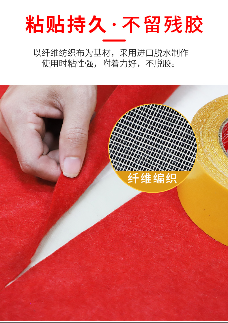 网格双面胶高粘度门对强力固定贴粘地毯春联对联专用不留痕透明无痕墙面耐高温地板地垫革拼接福布基胶带
