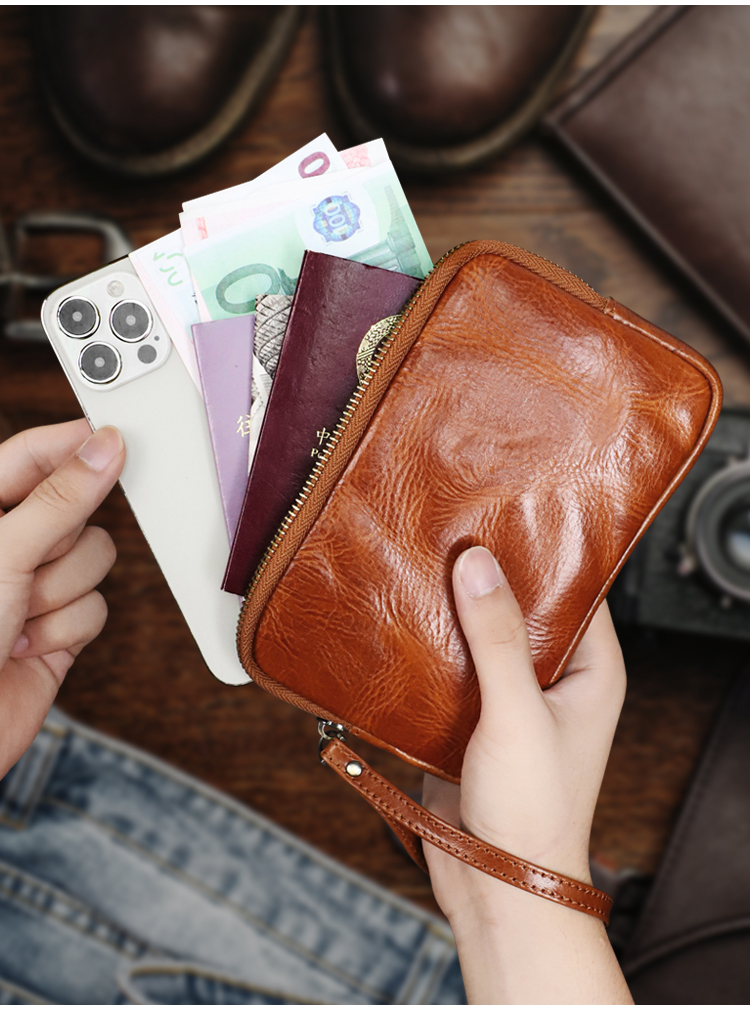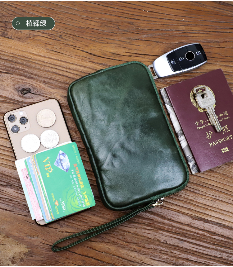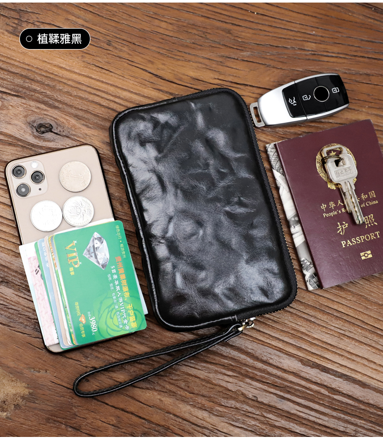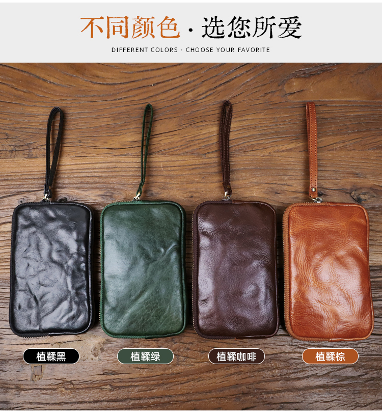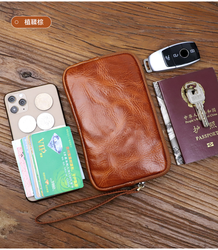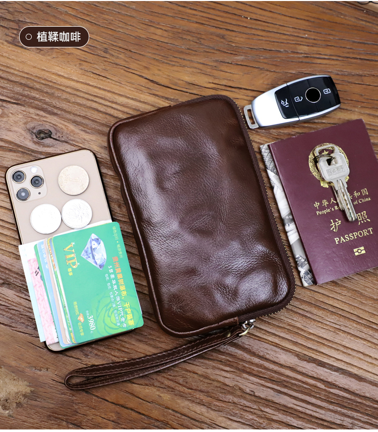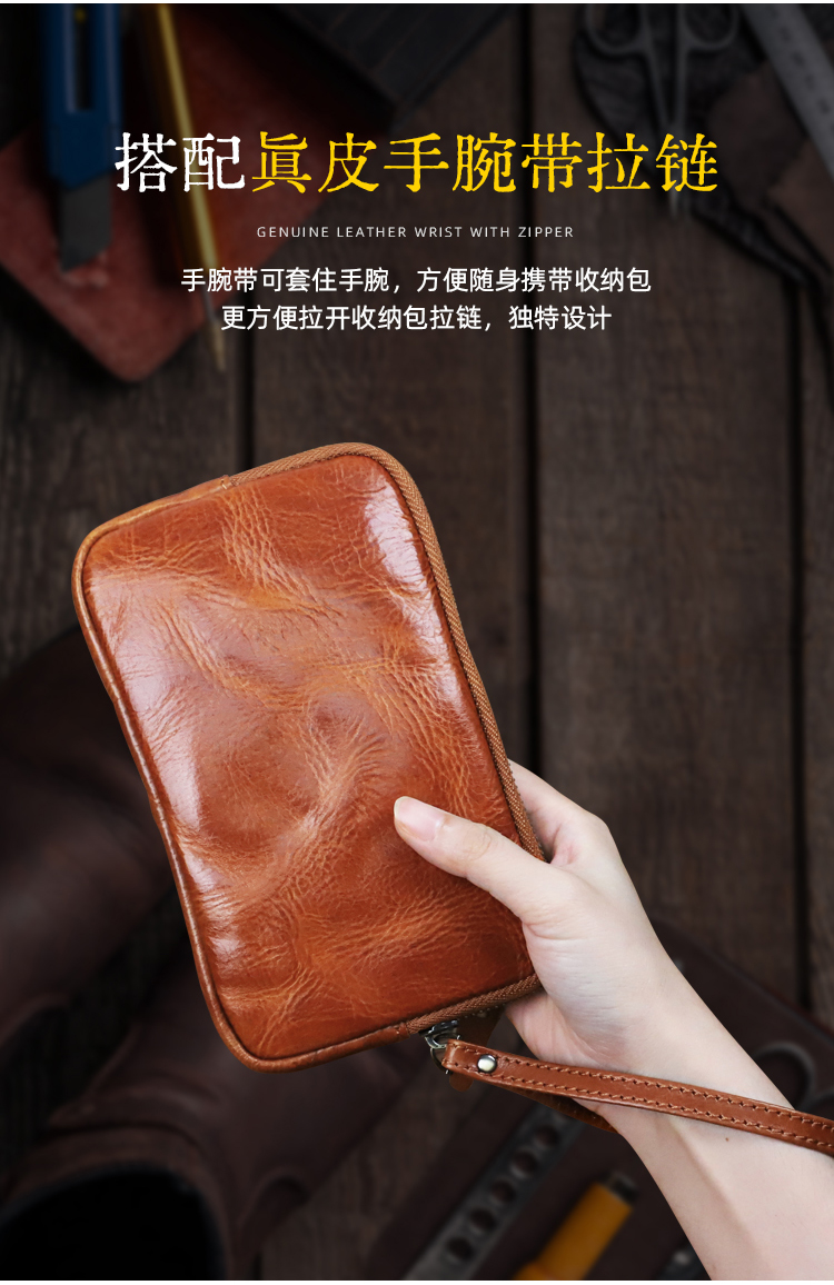 新款真皮拉链大容量钱包男女植鞣牛皮手拿包复古手抓包潮牌手机包