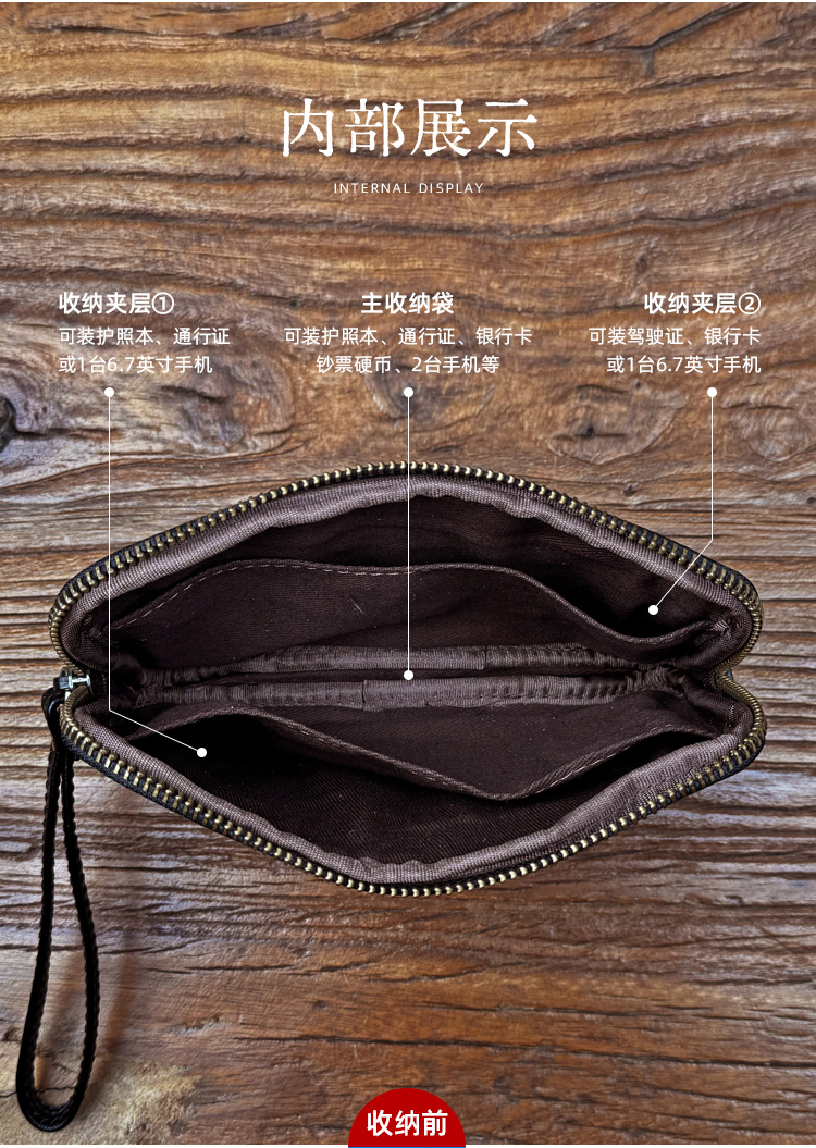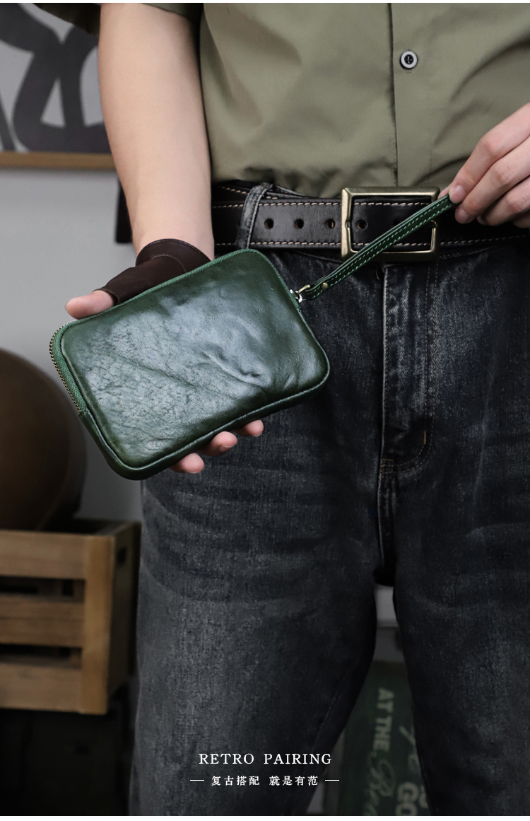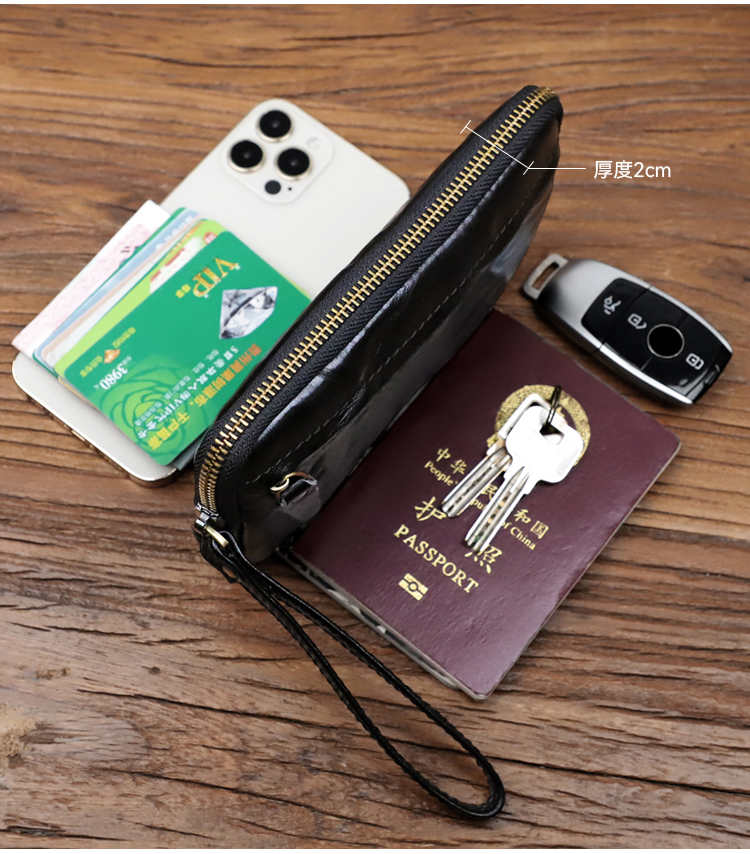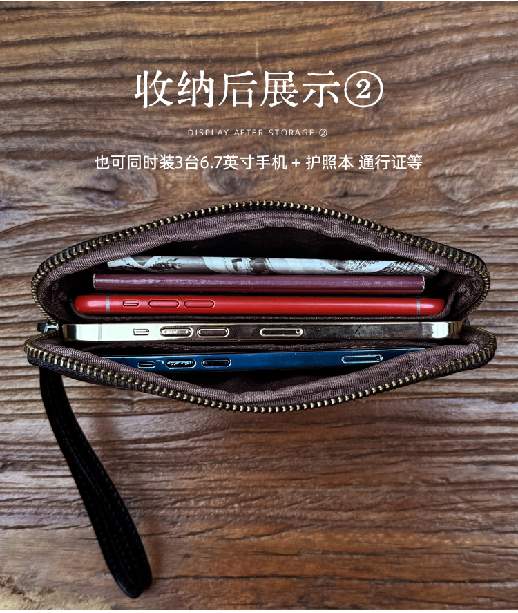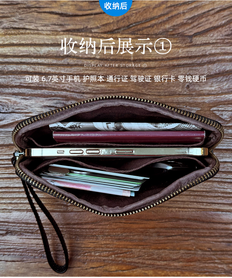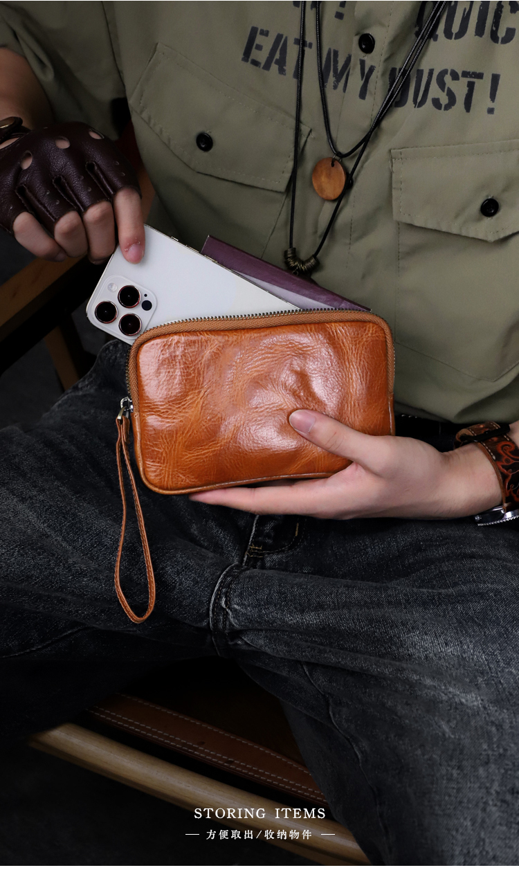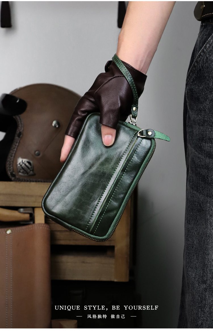 新款真皮拉链大容量钱包男女植鞣牛皮手拿包复古手抓包潮牌手机包