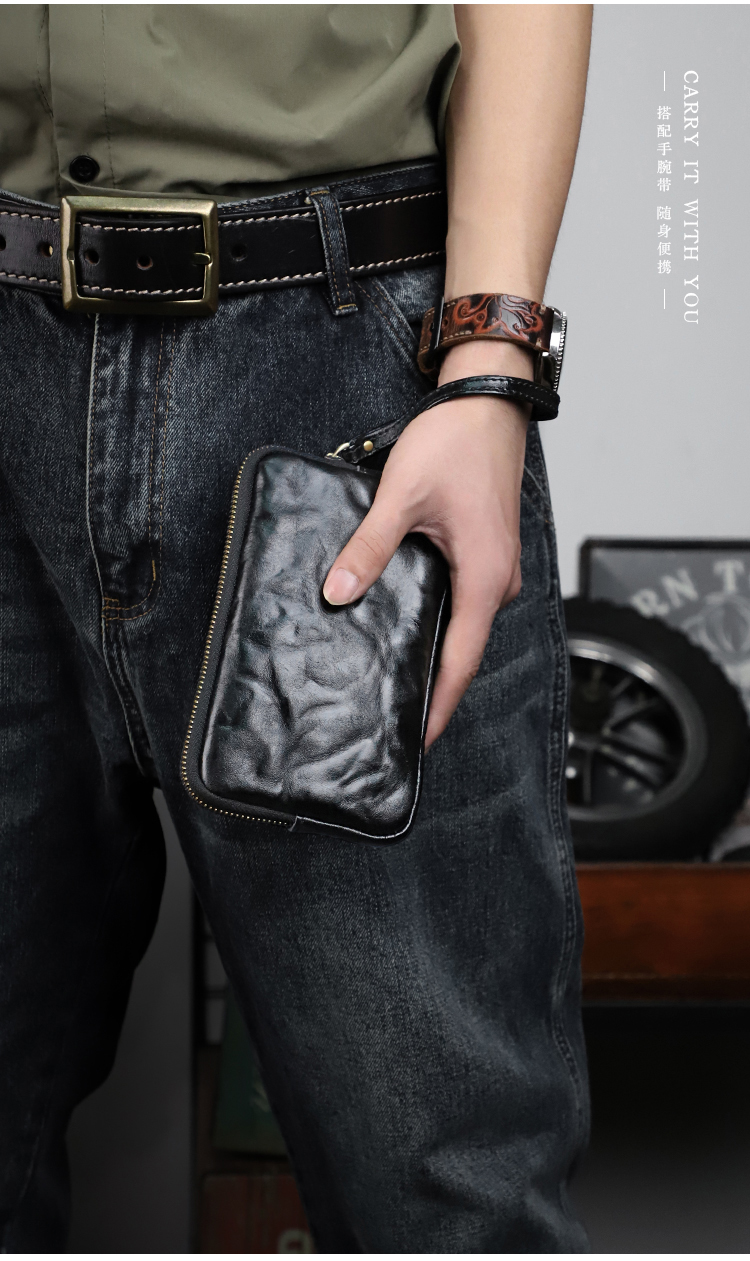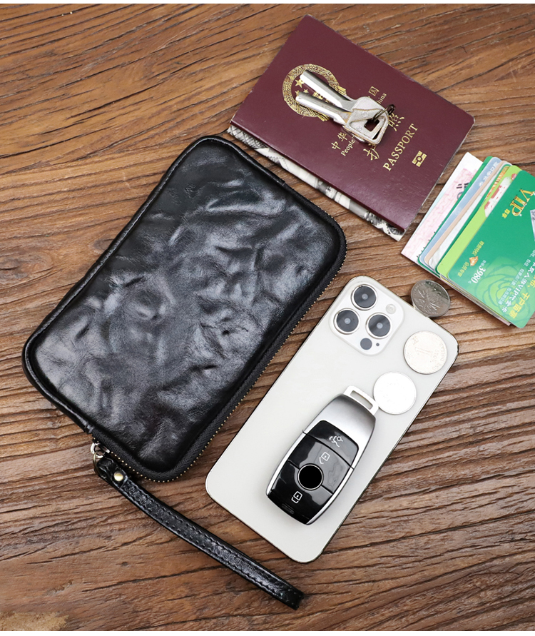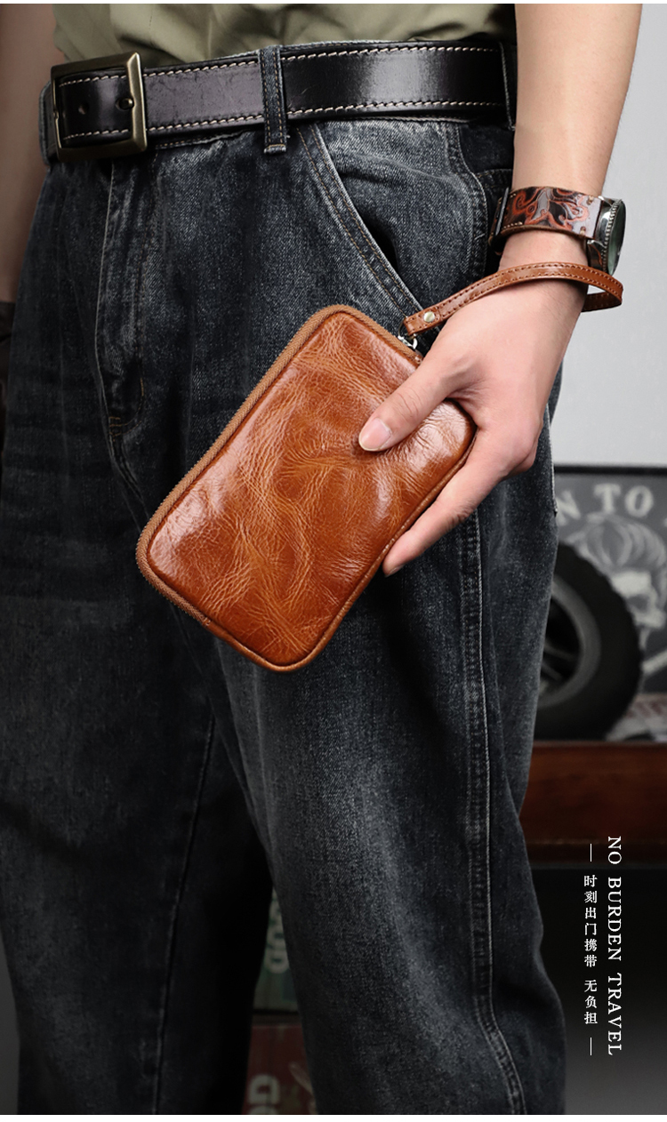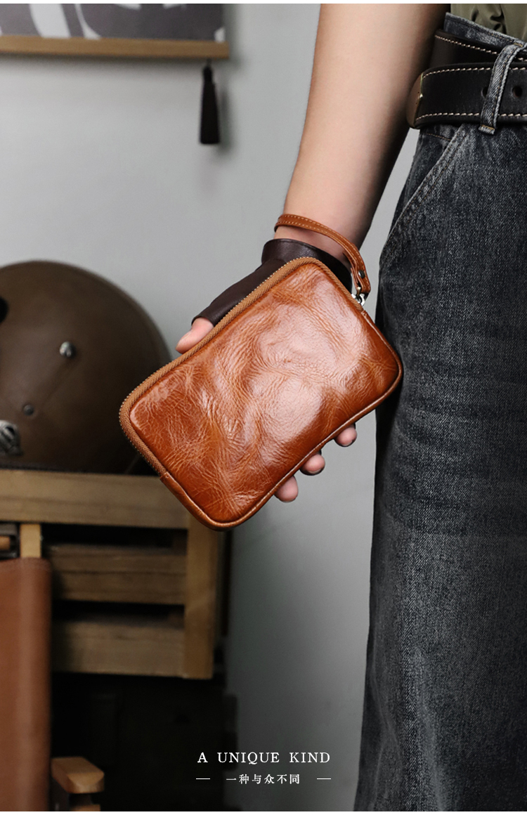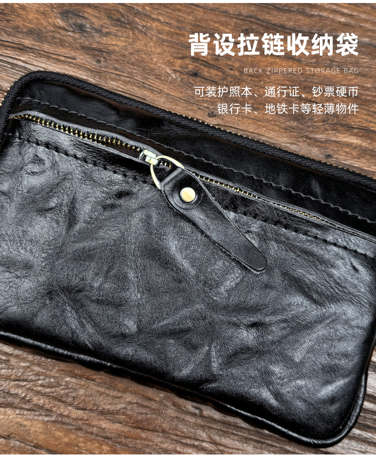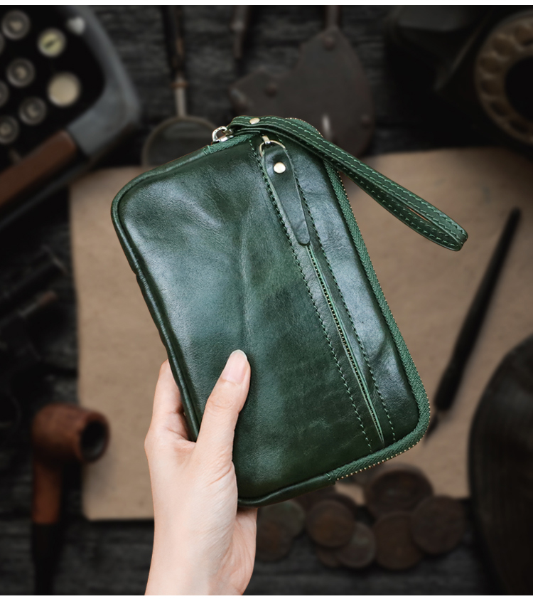 新款真皮拉链大容量钱包男女植鞣牛皮手拿包复古手抓包潮牌手机包