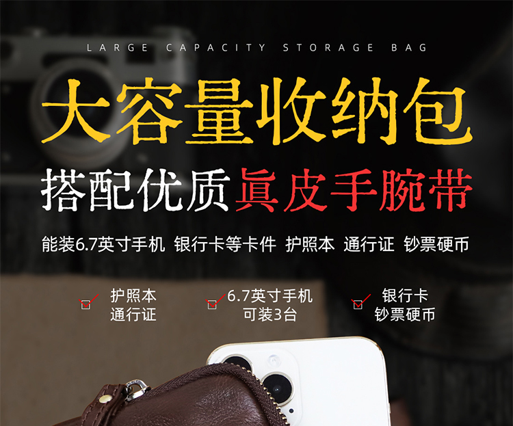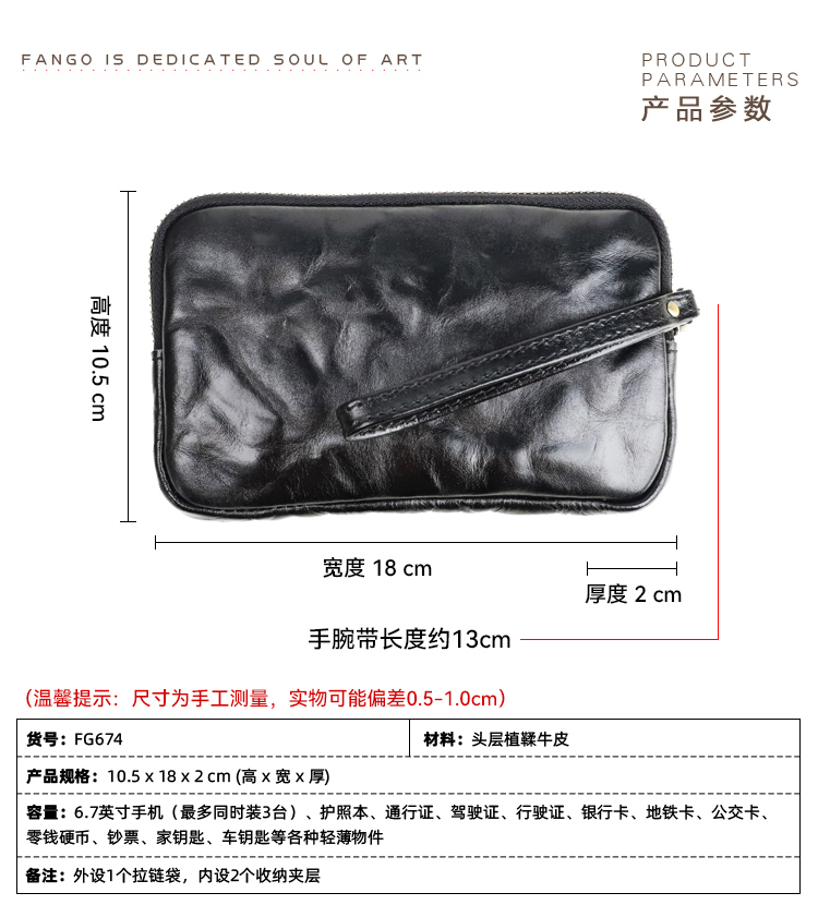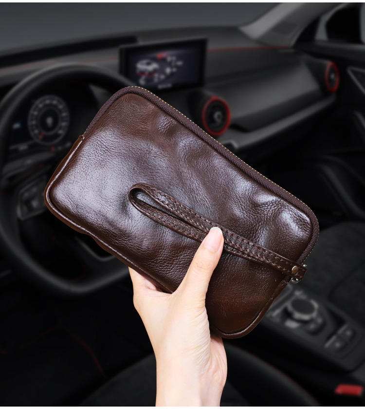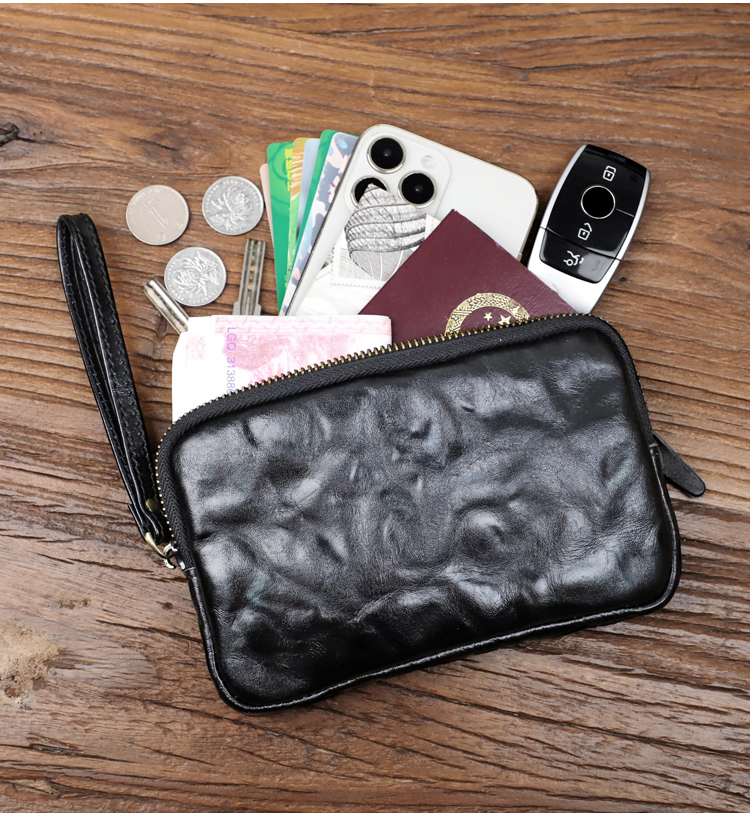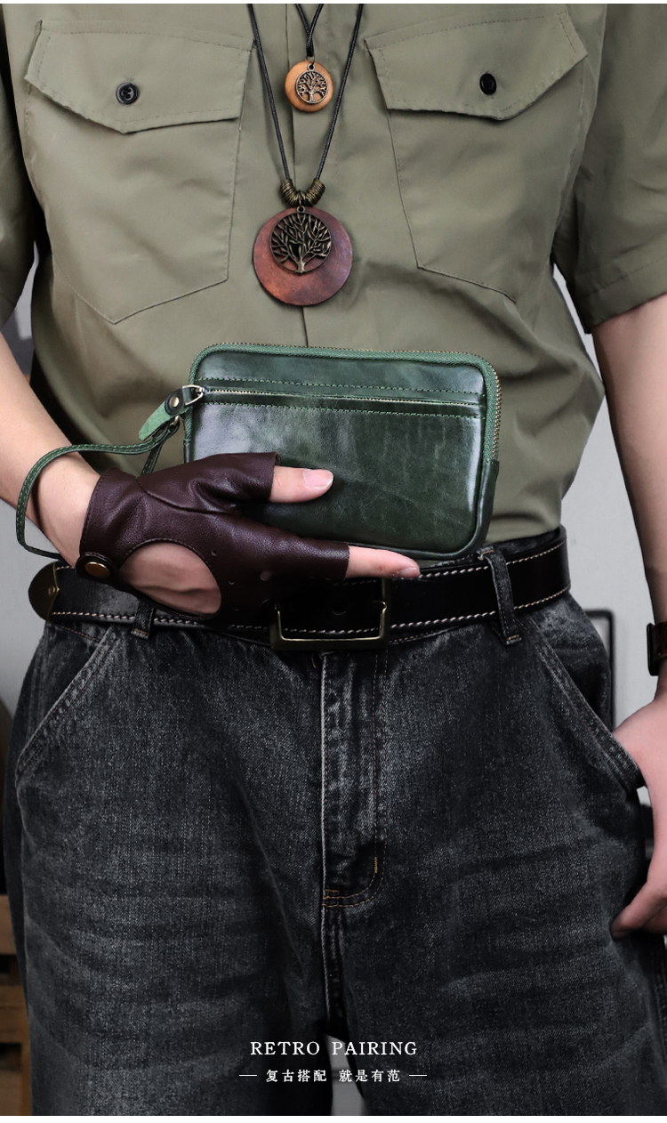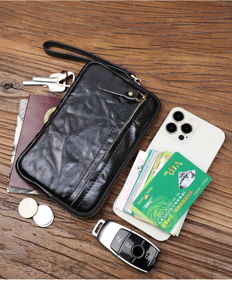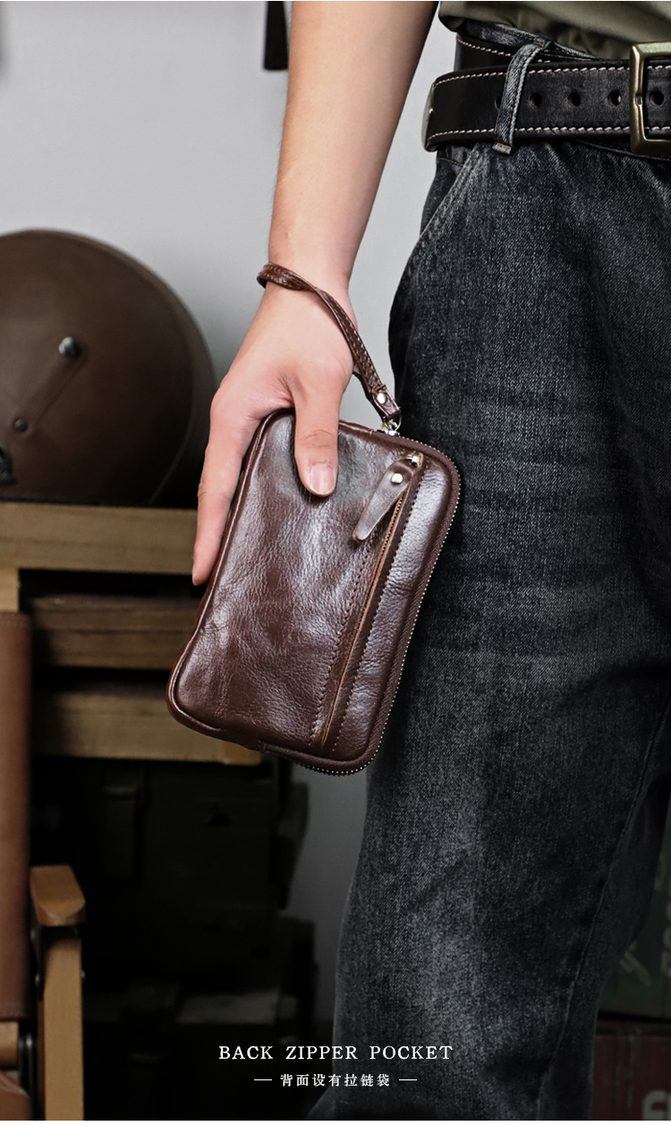新款真皮拉链大容量钱包男女植鞣牛皮手拿包复古手抓包潮牌手机包