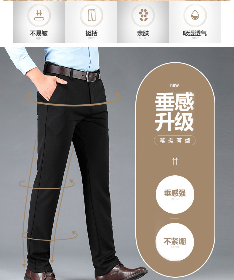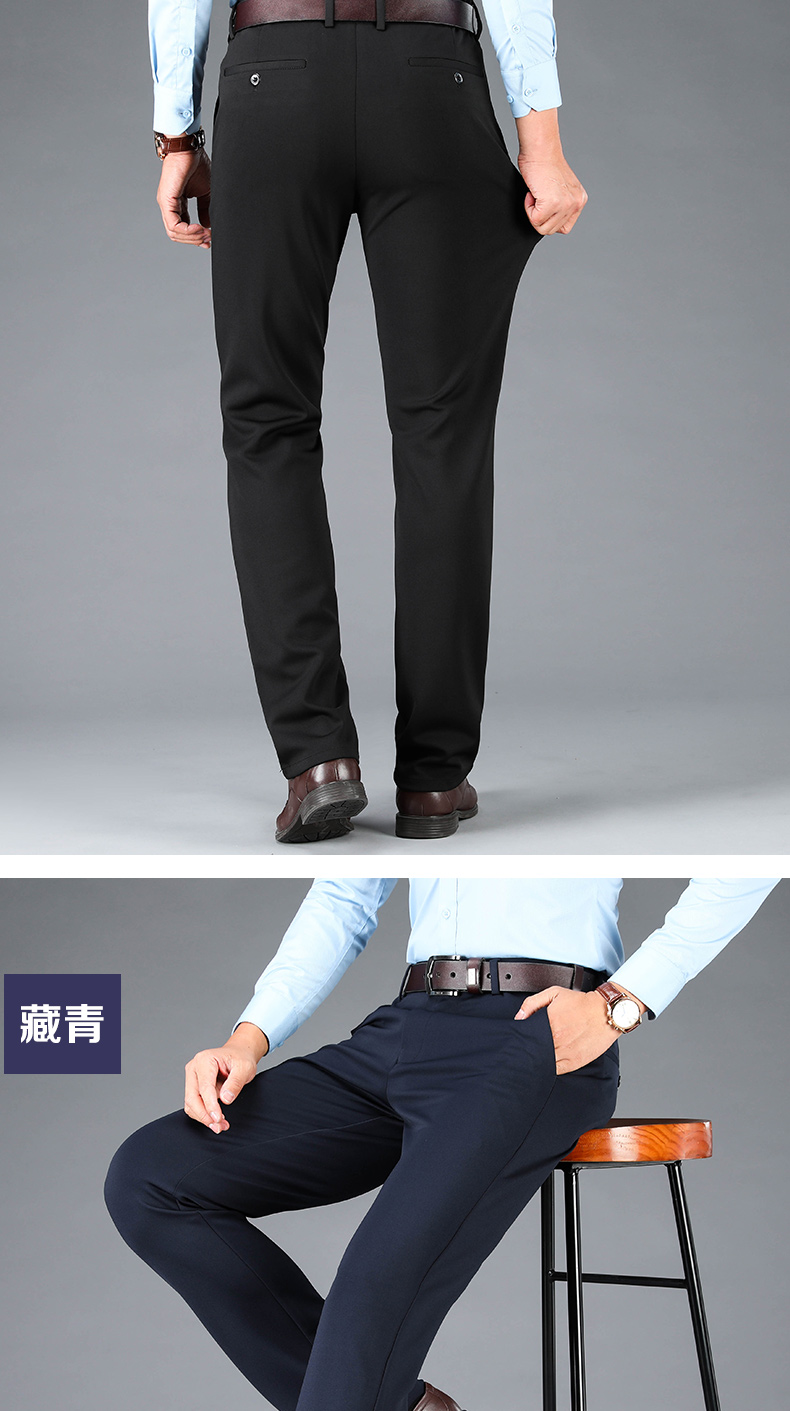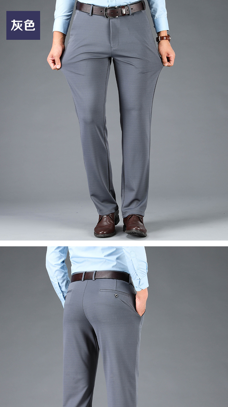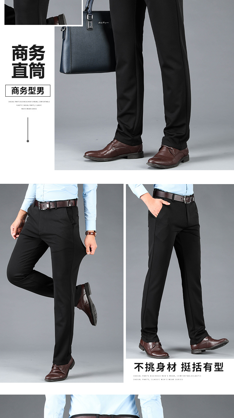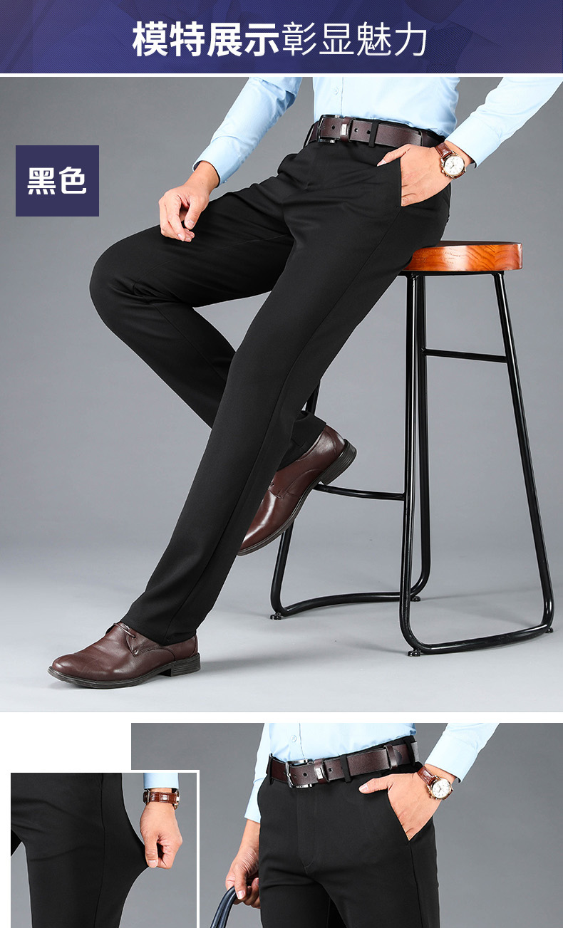 春夏季男士休闲裤宽松直筒商务薄款西裤高弹力男裤黑色抗皱长裤子