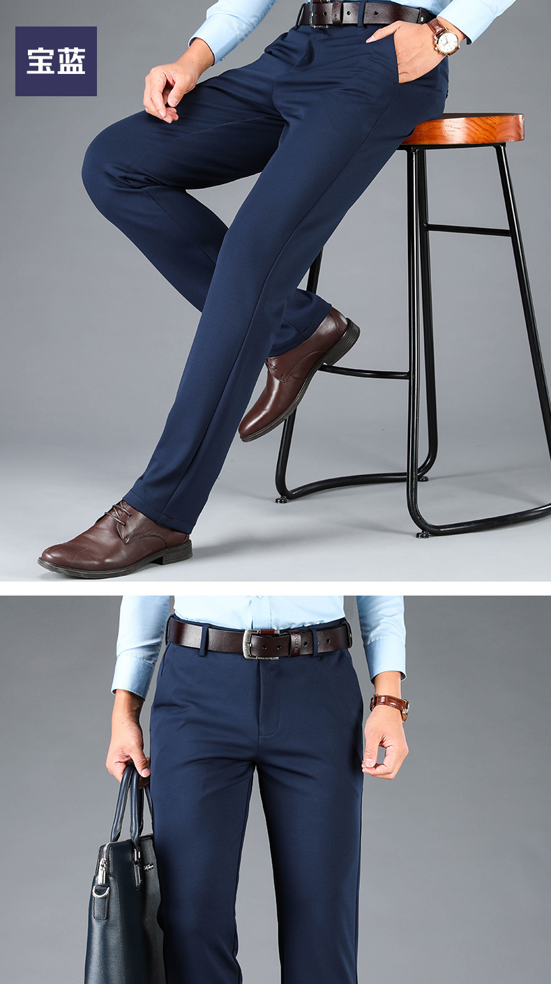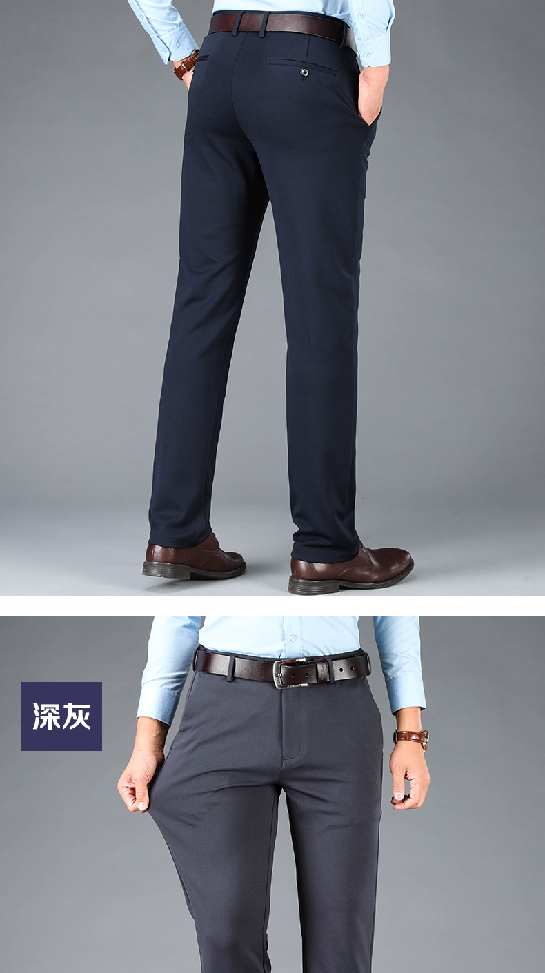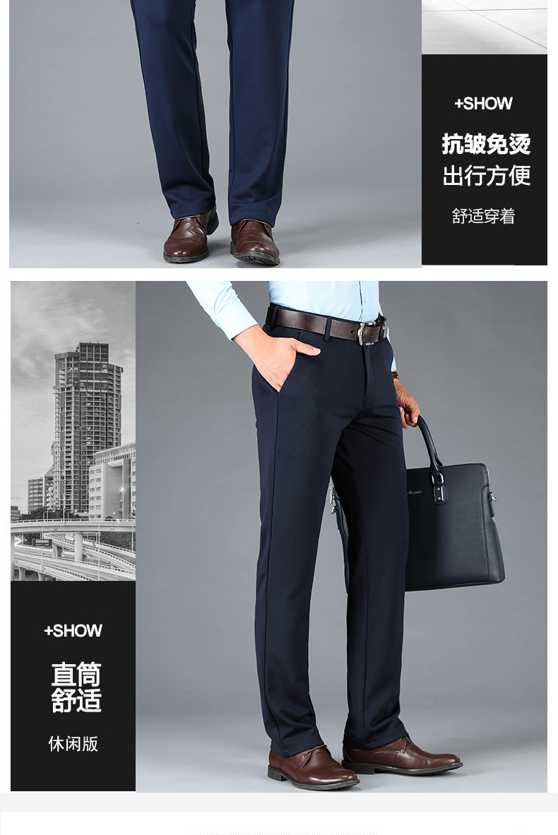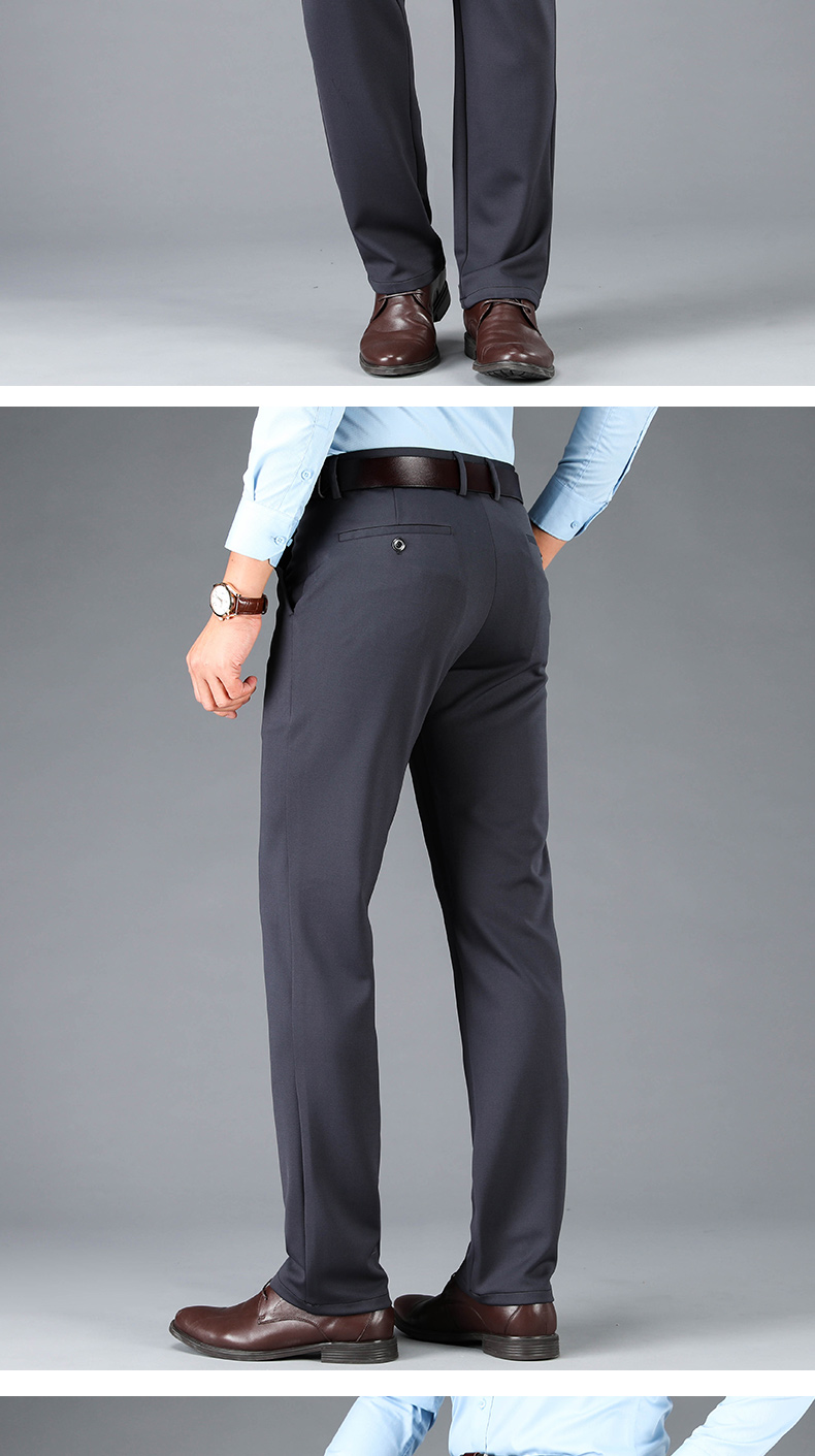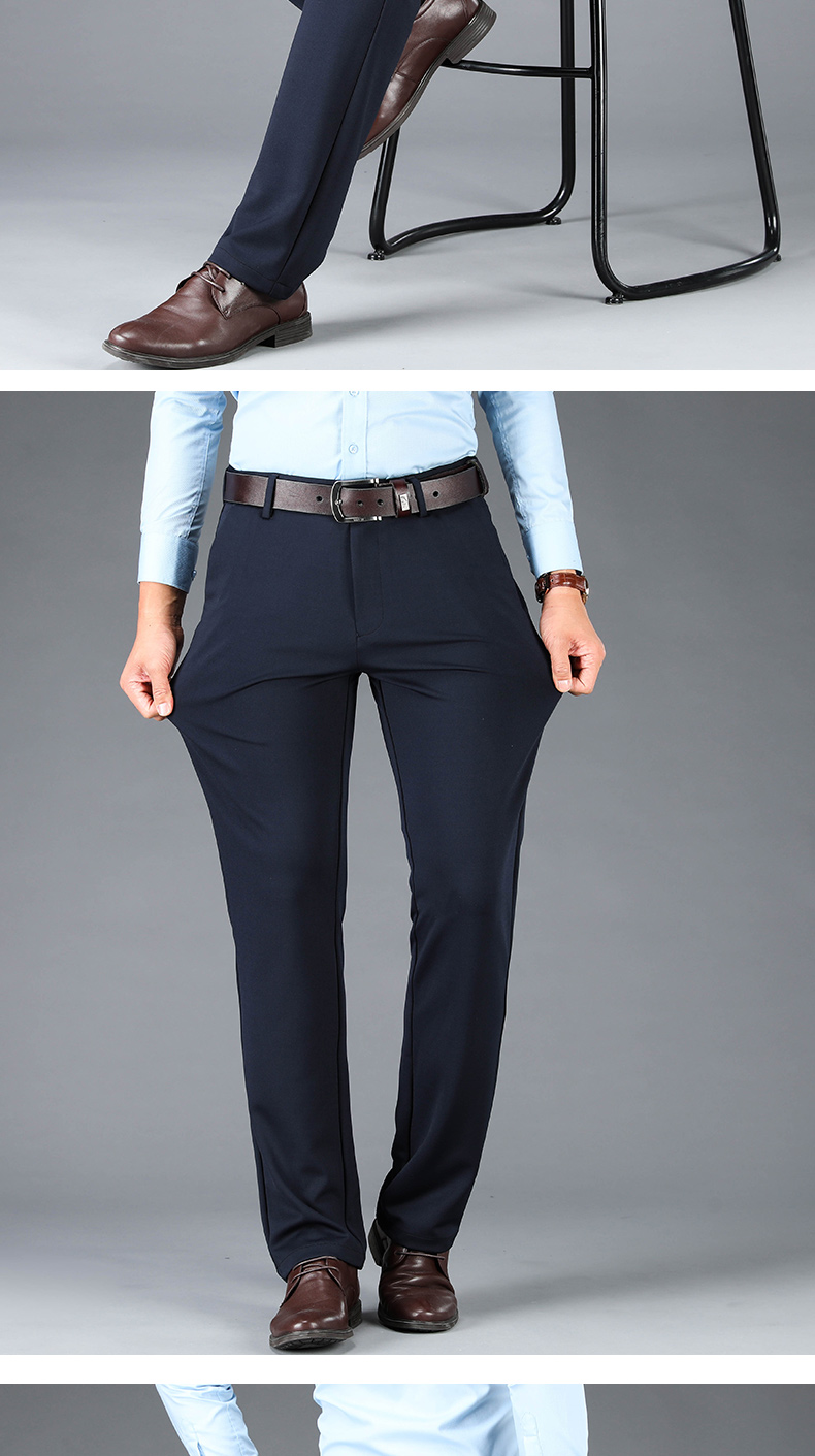 春夏季男士休闲裤宽松直筒商务薄款西裤高弹力男裤黑色抗皱长裤子