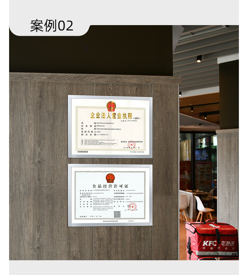 工商营业执照框架挂墙和卫生经营许可证框保护套三合一相框免打孔