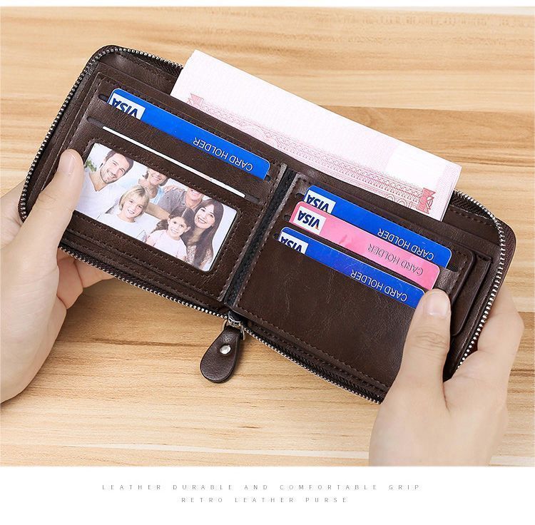 2025年新款钱包男短款拉链零钱袋小钱夹女皮夹子青少年复古卡包男