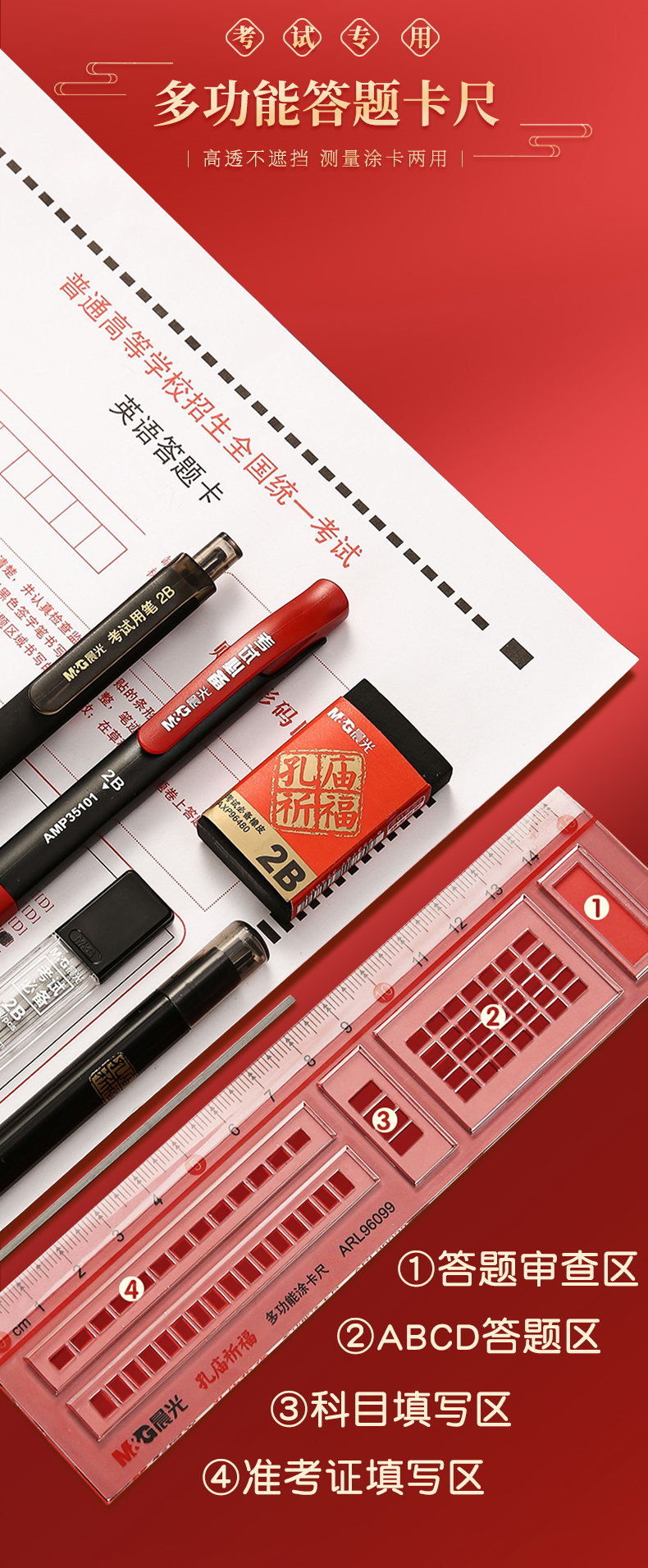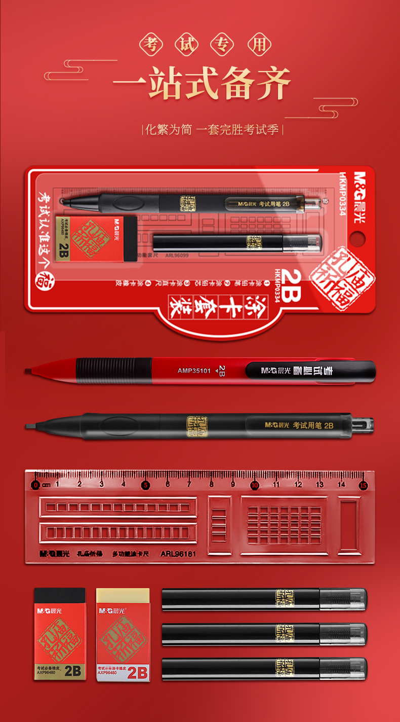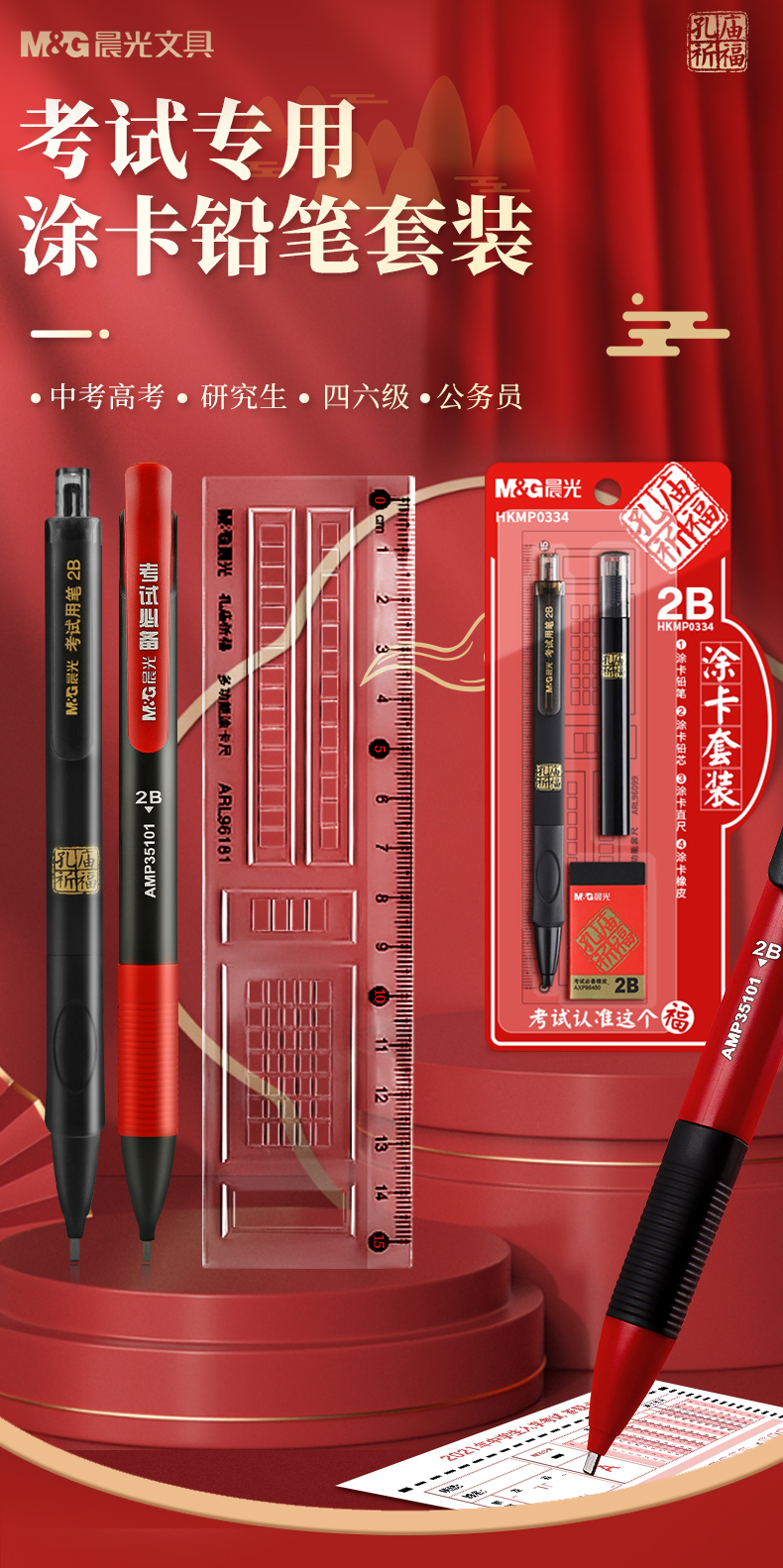 晨光孔庙考试套装2比涂卡铅笔答题卡高考考试备考用工具考研公务员13件初中专学生2Bb电脑填涂卡铅芯尺子