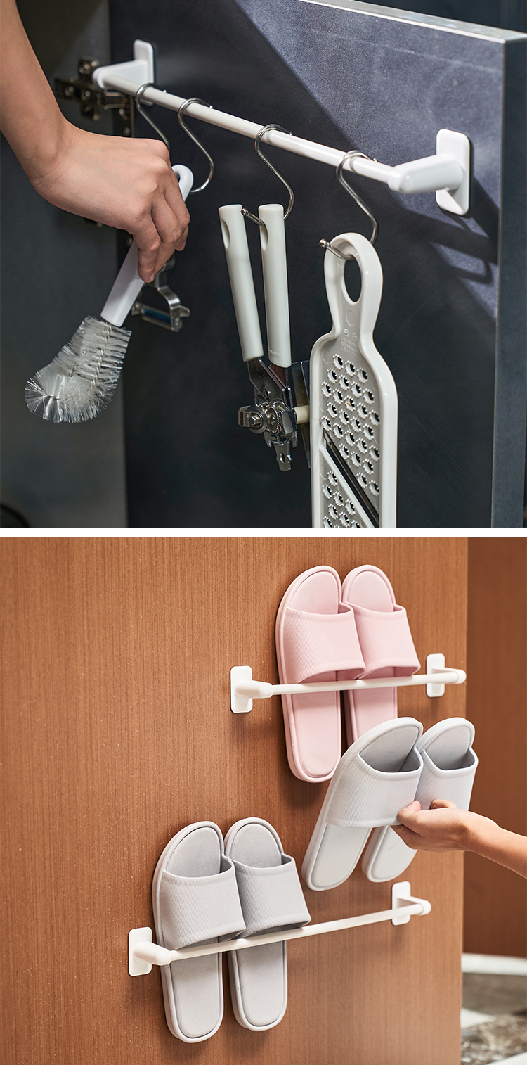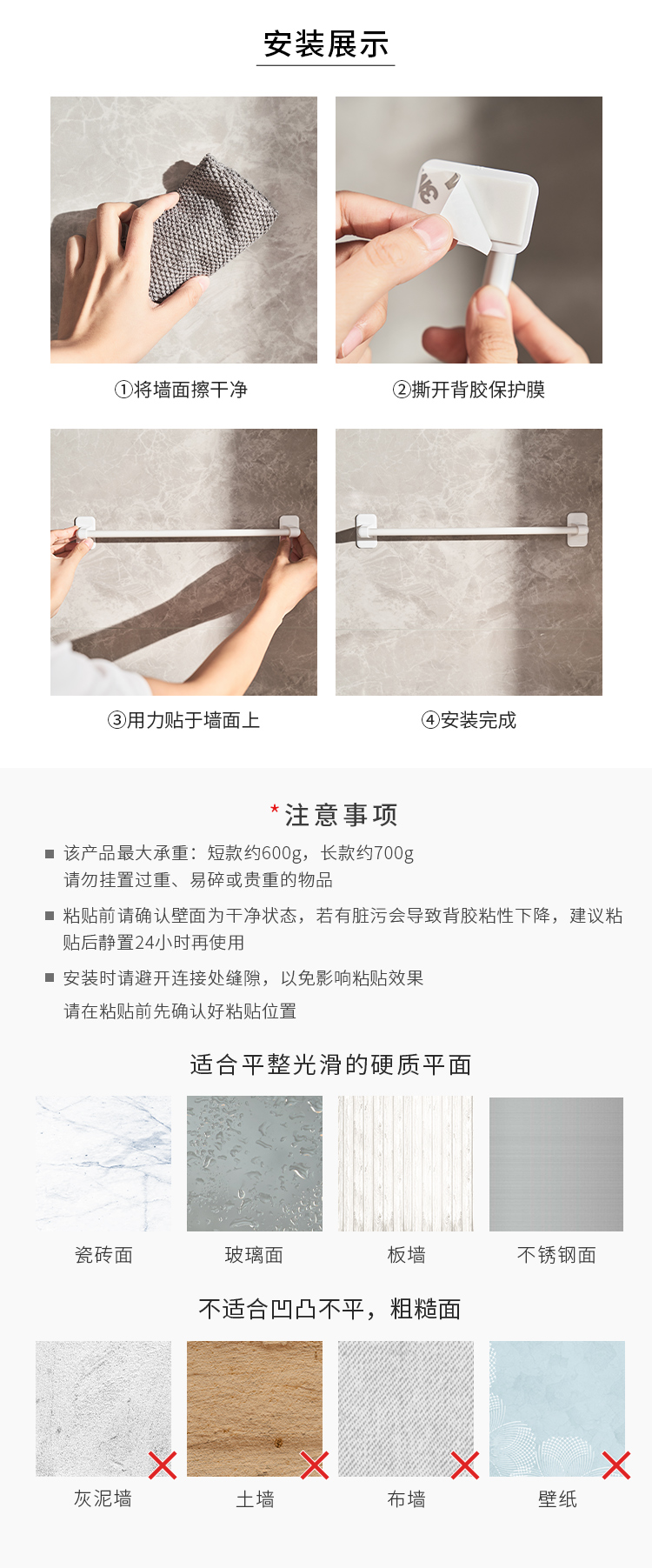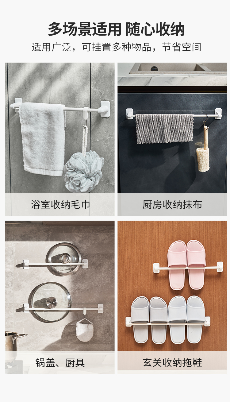 日式壁挂式毛巾杆免打孔挂架置物架毛巾晾晒浴室拖鞋墙壁挂架5133