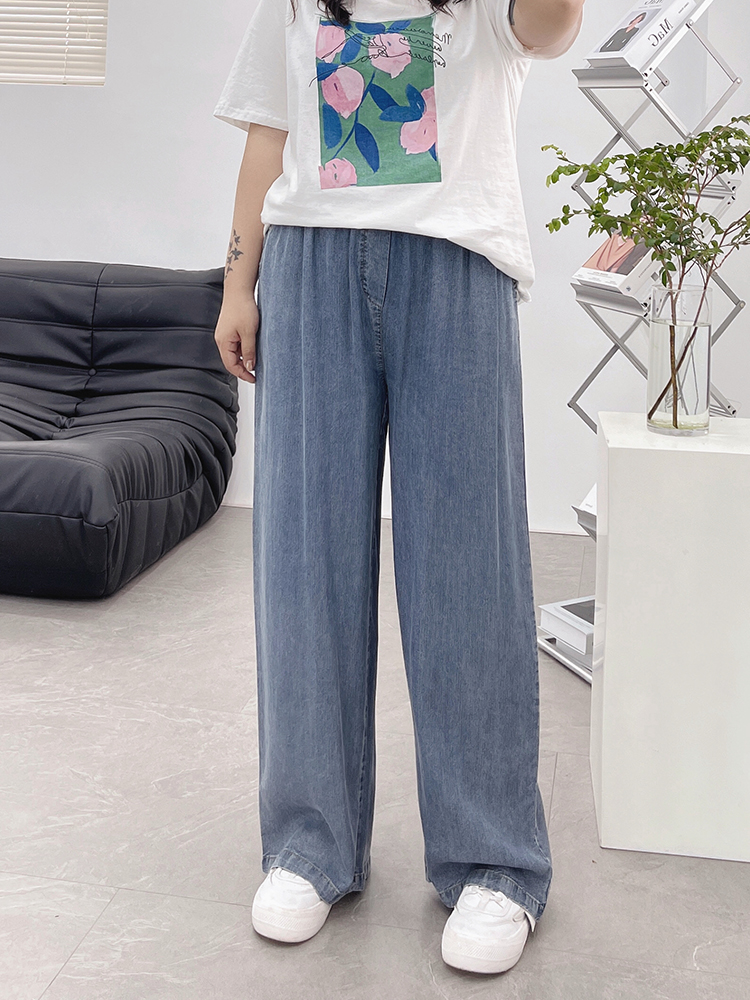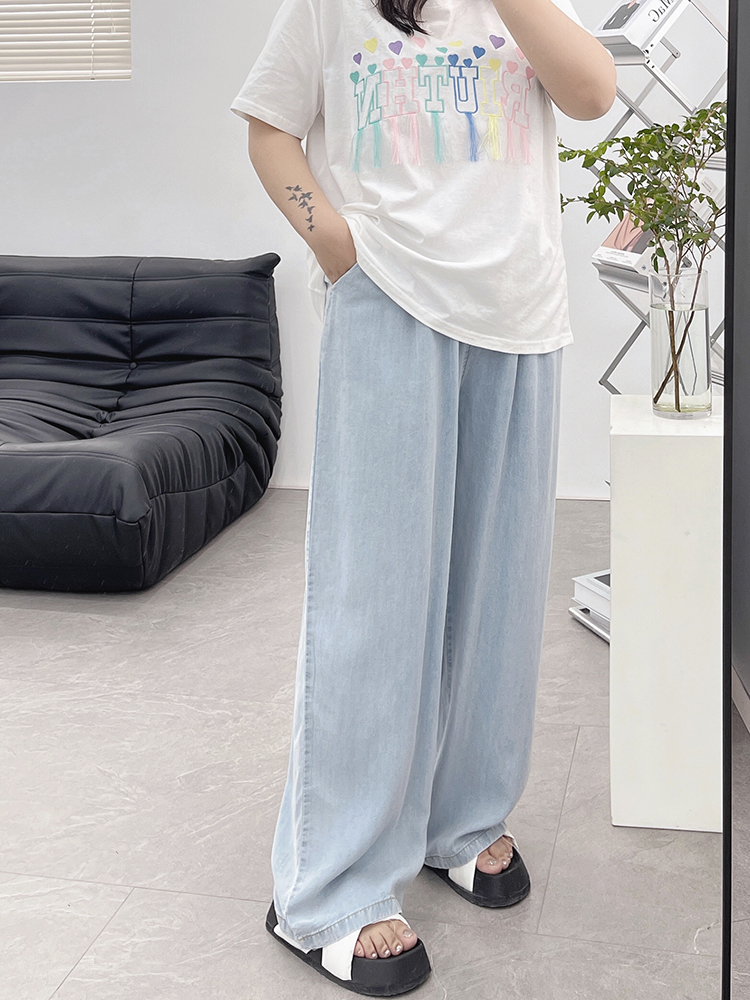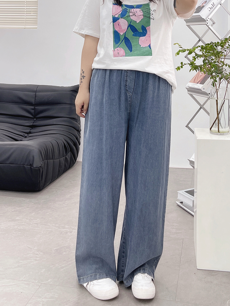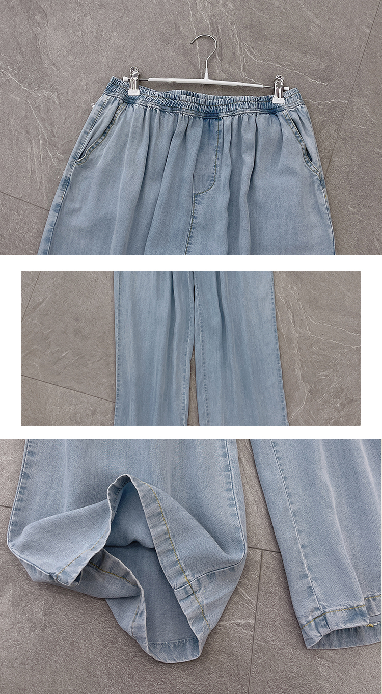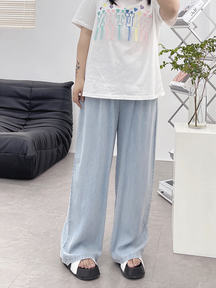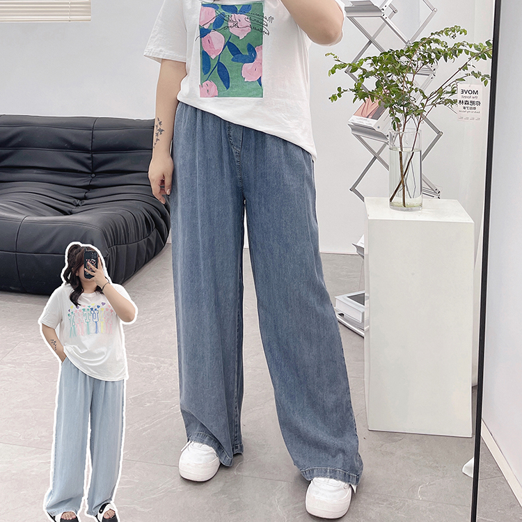 天丝牛仔裤女夏季薄款高腰胖mm大码显瘦冰氧吧垂感冰丝阔腿休闲裤