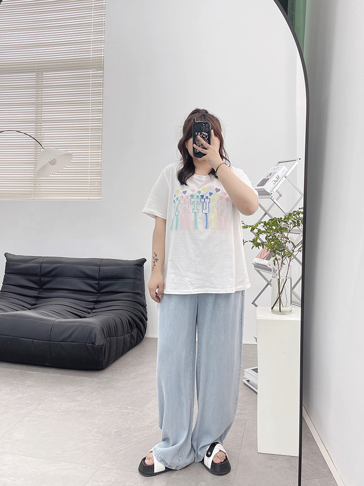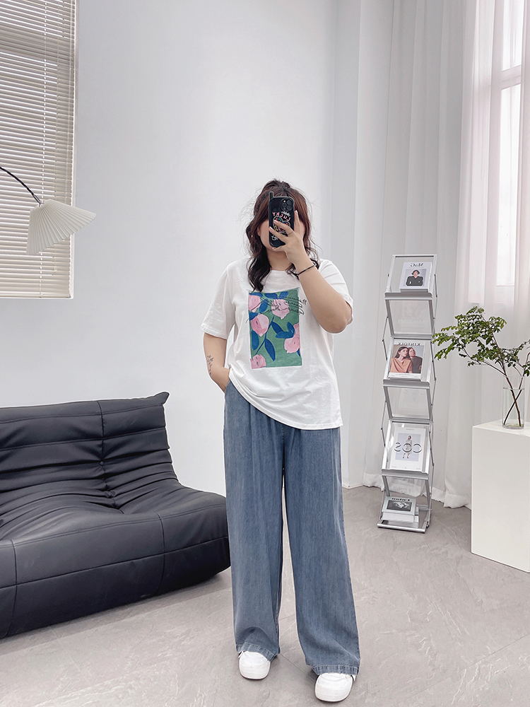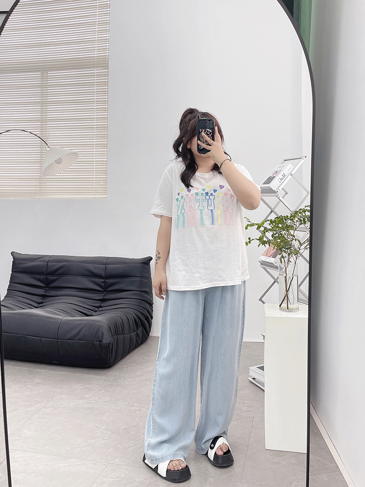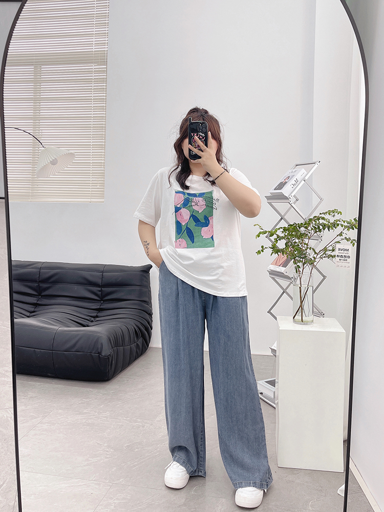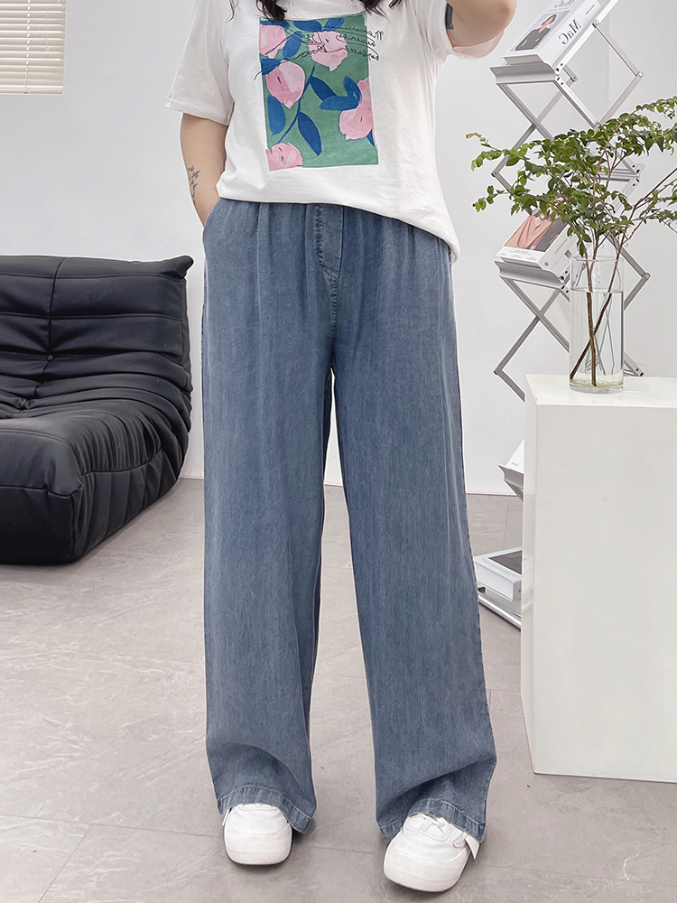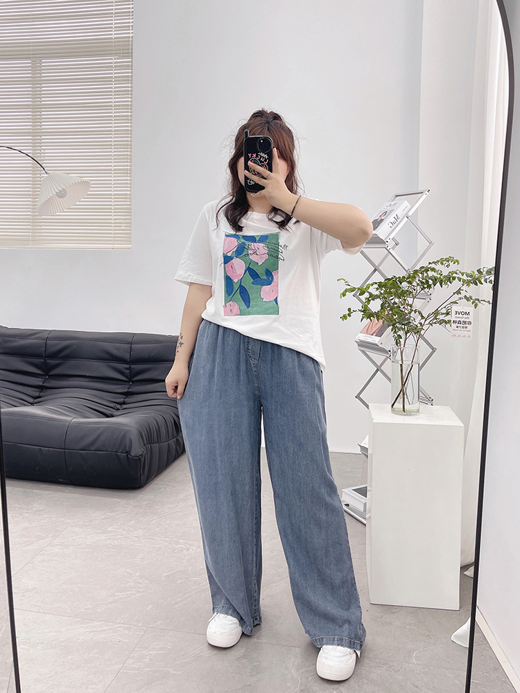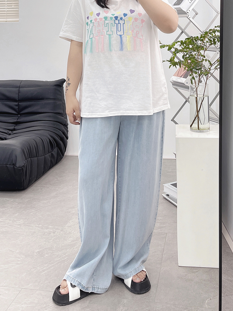 天丝牛仔裤女夏季薄款高腰胖mm大码显瘦冰氧吧垂感冰丝阔腿休闲裤