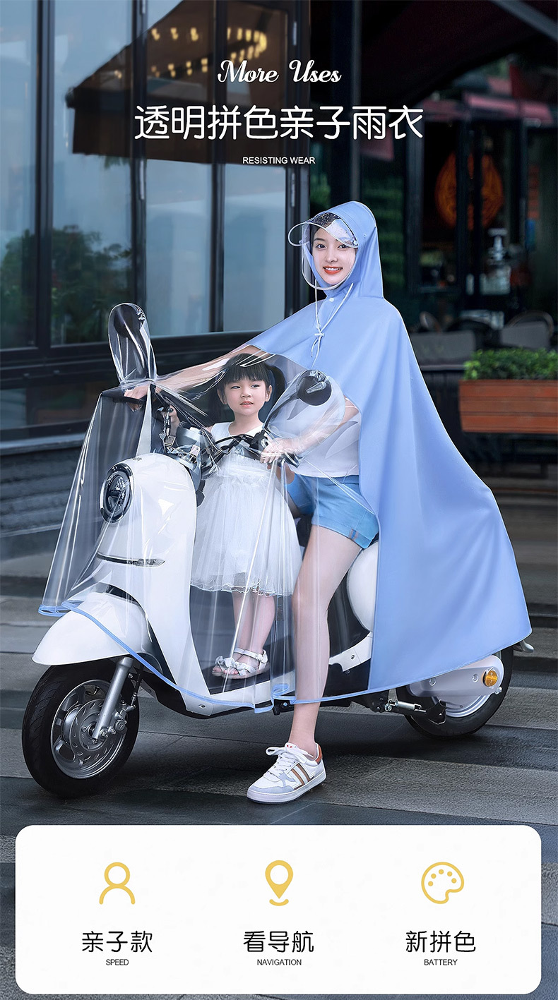 牛津雨衣电动车双人母子女亲子长款全身防暴雨电瓶摩托车三人雨披