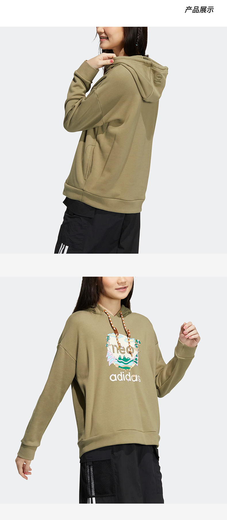 Adidas/阿迪达斯官方正品Neo时尚新款女子连帽运动套头卫衣HN2349