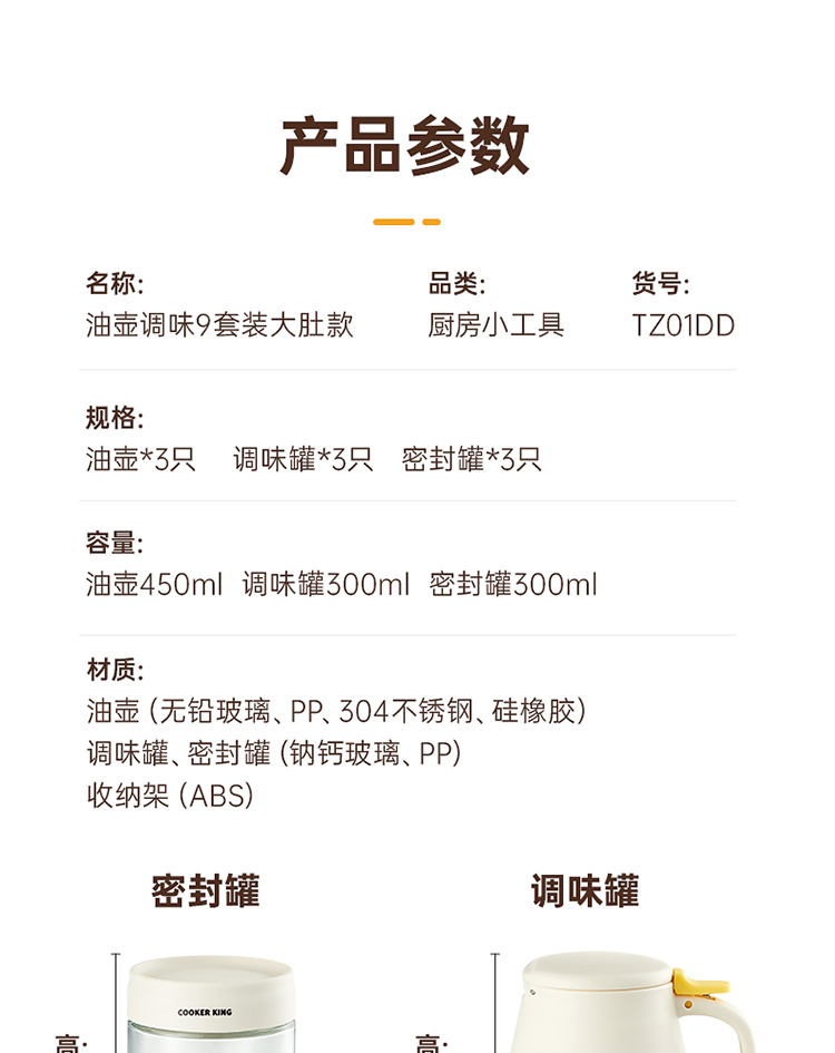 炊大皇调料罐调料盒收纳家用厨房高端盐罐油壶组合套装全套调味瓶