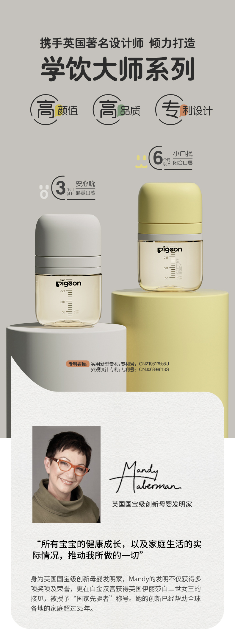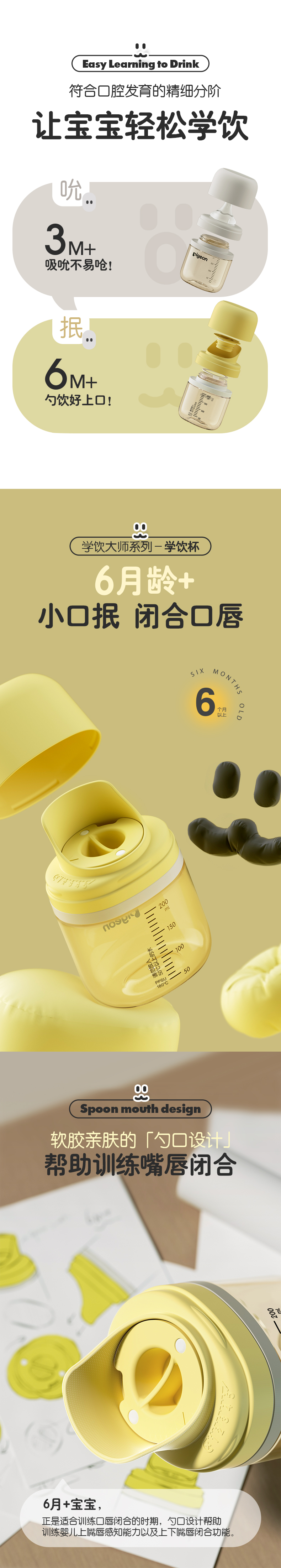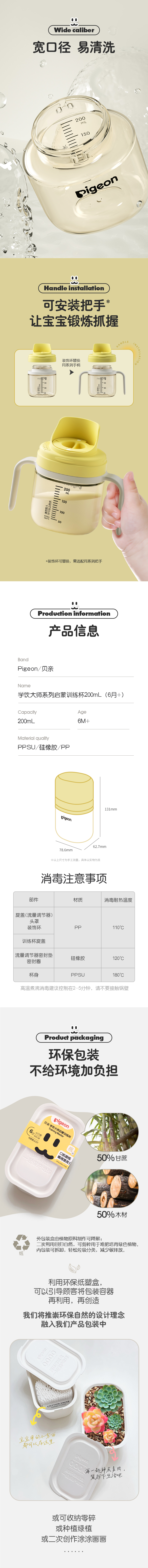 Haberman哈伯曼婴儿PPSU奶瓶学饮直饮吸管水杯贝亲官方旗舰店正品