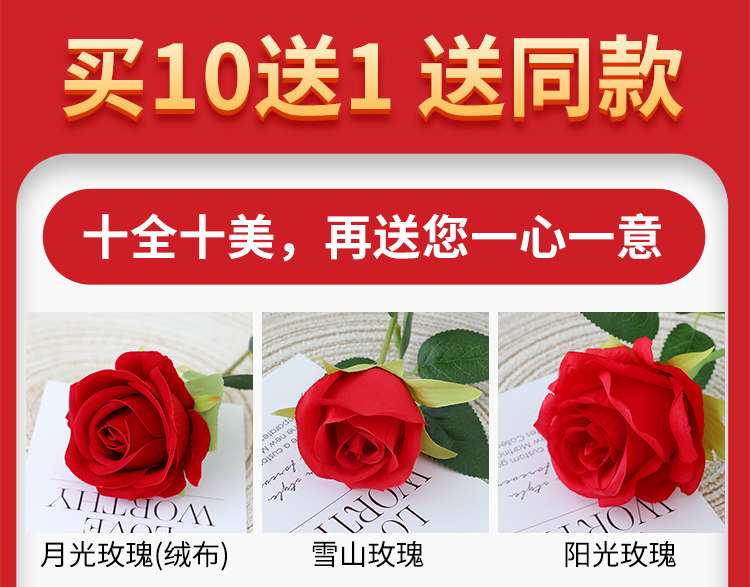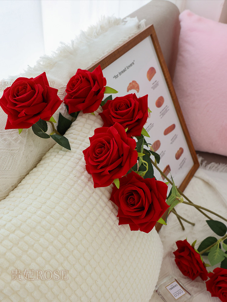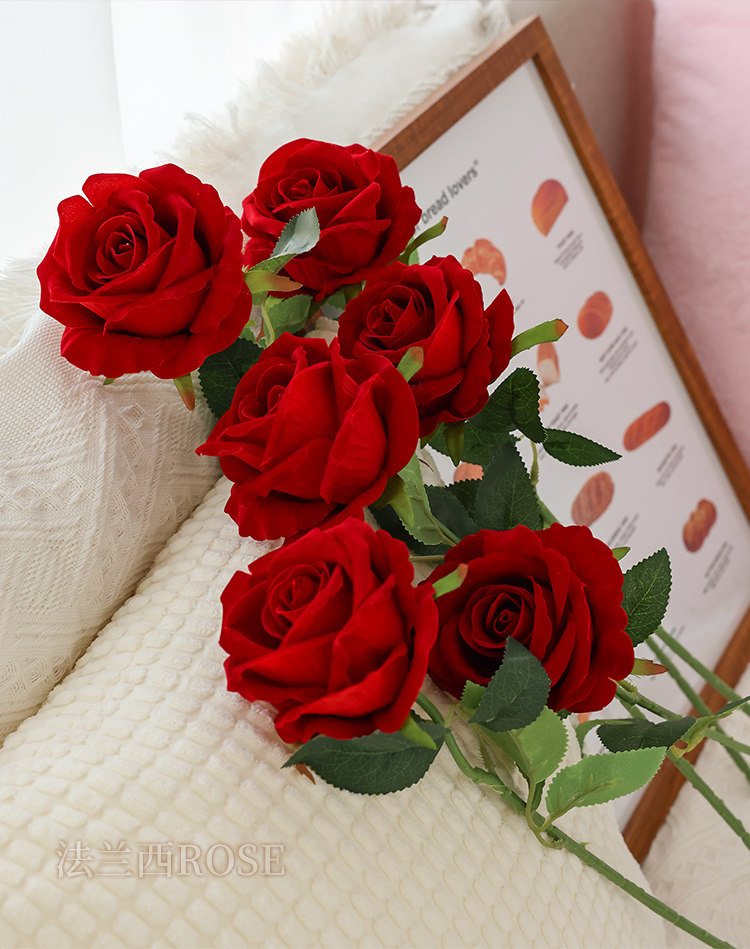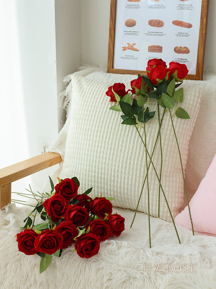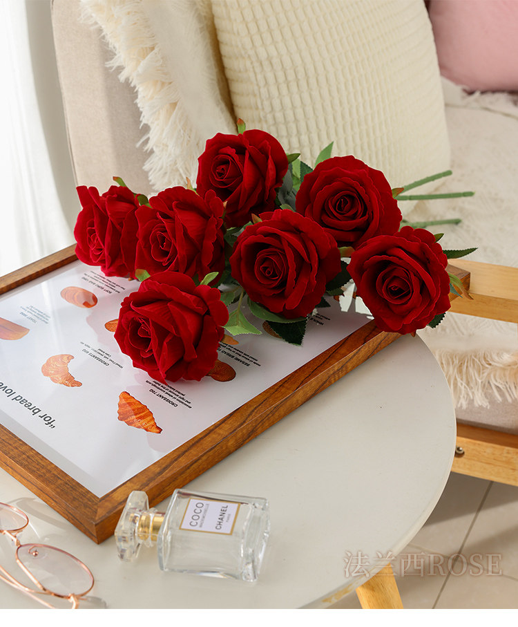 仿真玫瑰花情人节塑料花束家居摆件假花客厅餐桌插花干花摆设装饰