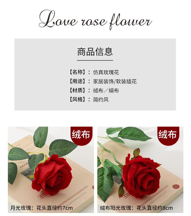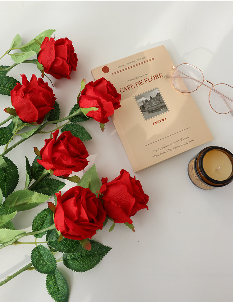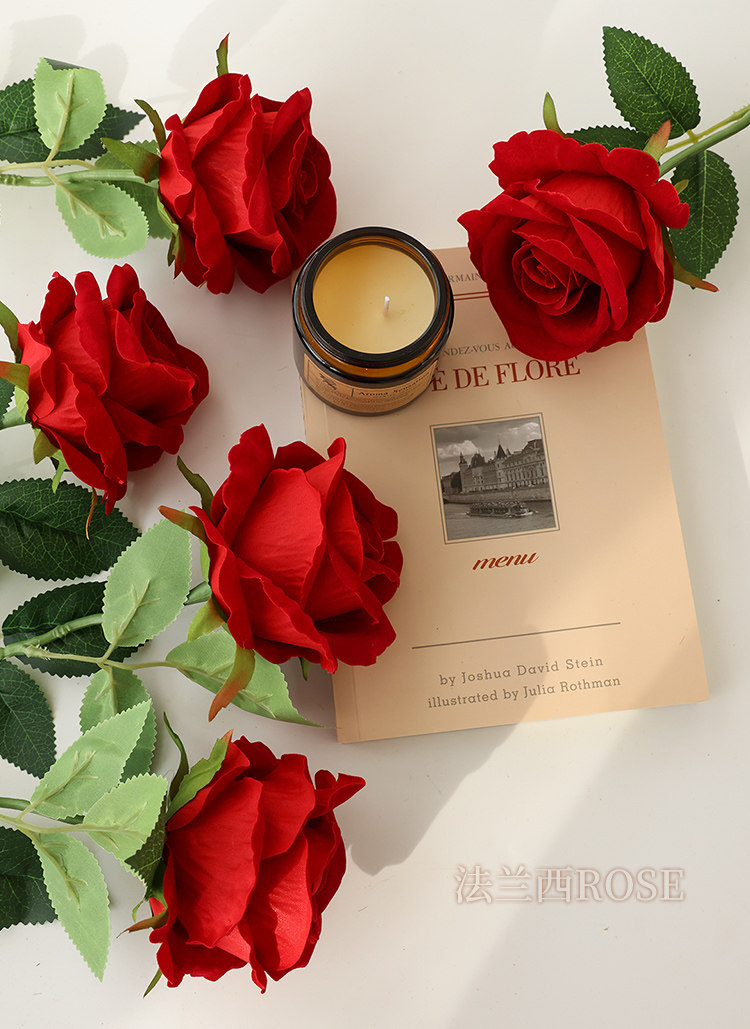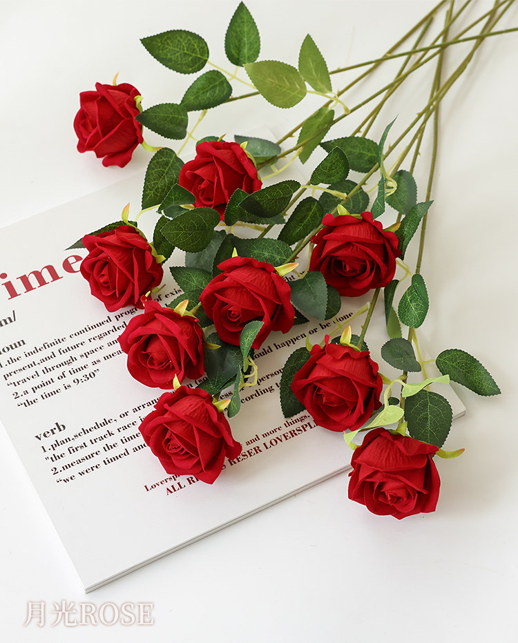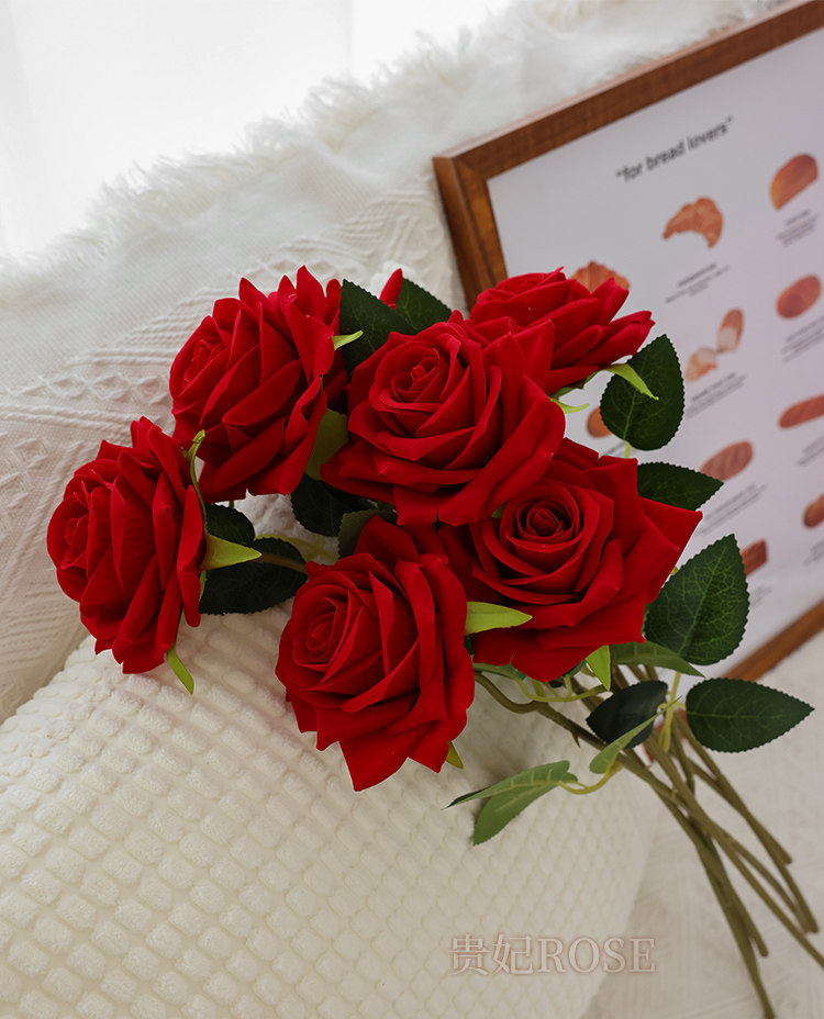 仿真玫瑰花情人节塑料花束家居摆件假花客厅餐桌插花干花摆设装饰