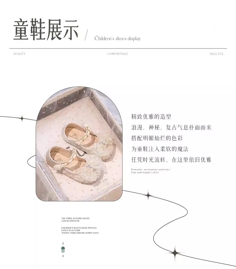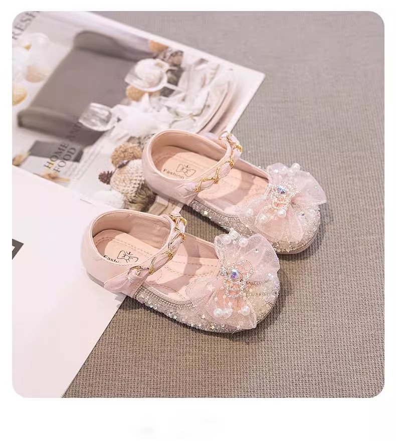 真皮女童公主鞋2025春秋新款软底儿童小皮鞋闪亮水晶鞋配礼服单鞋