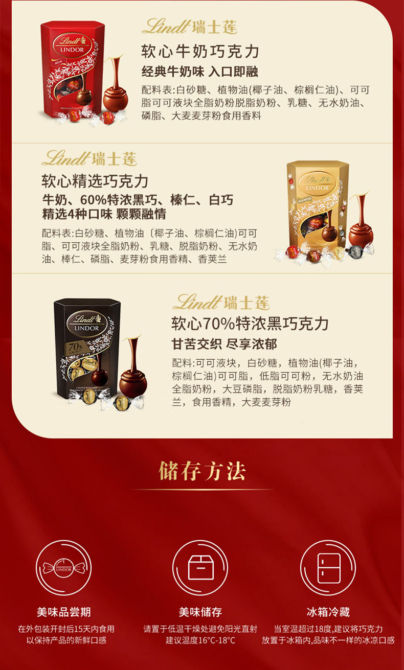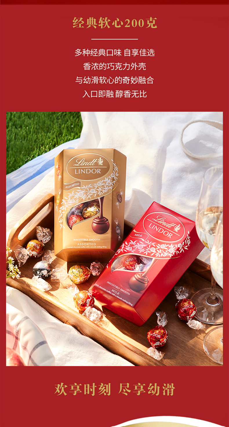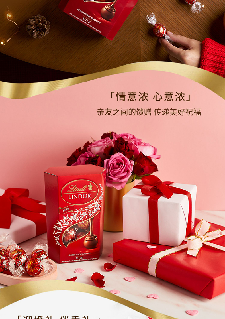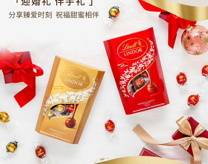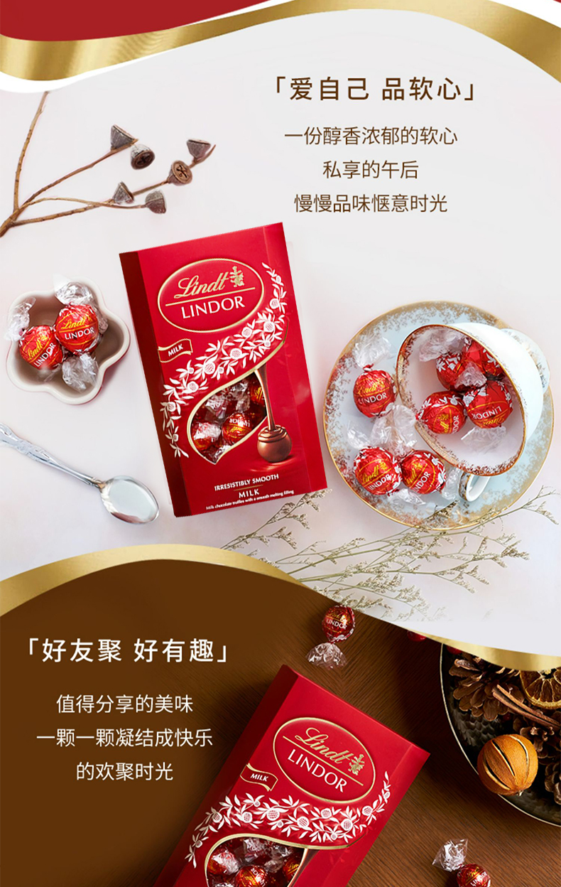 Lindt瑞士莲软心牛奶黑巧克力分享装200g16粒球零食送礼