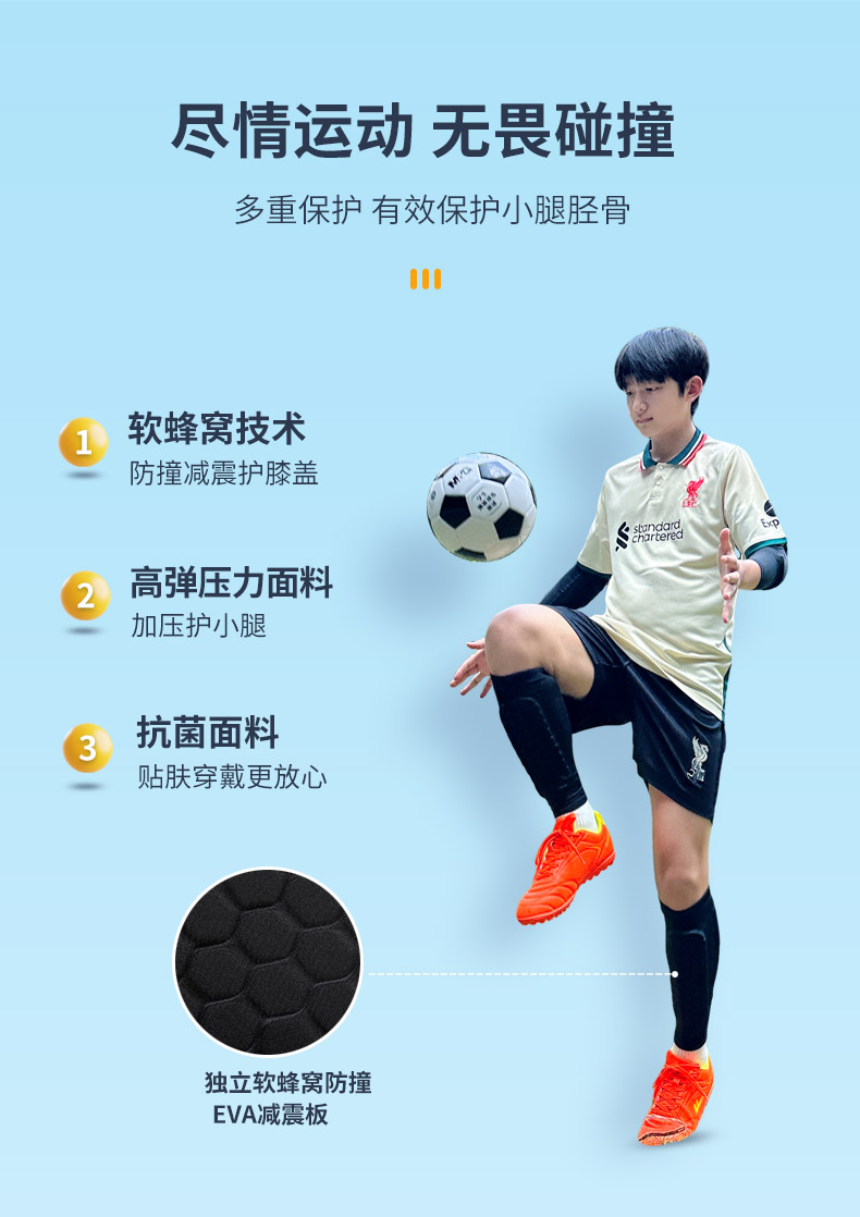 TEEIS 儿童足球护腿板袜套小学生男女骑行专业防撞护胫骨非插片式