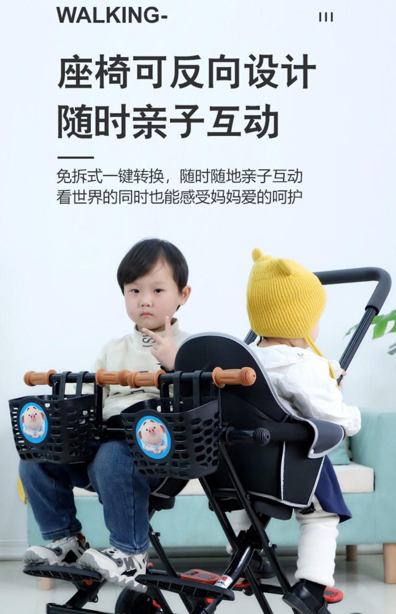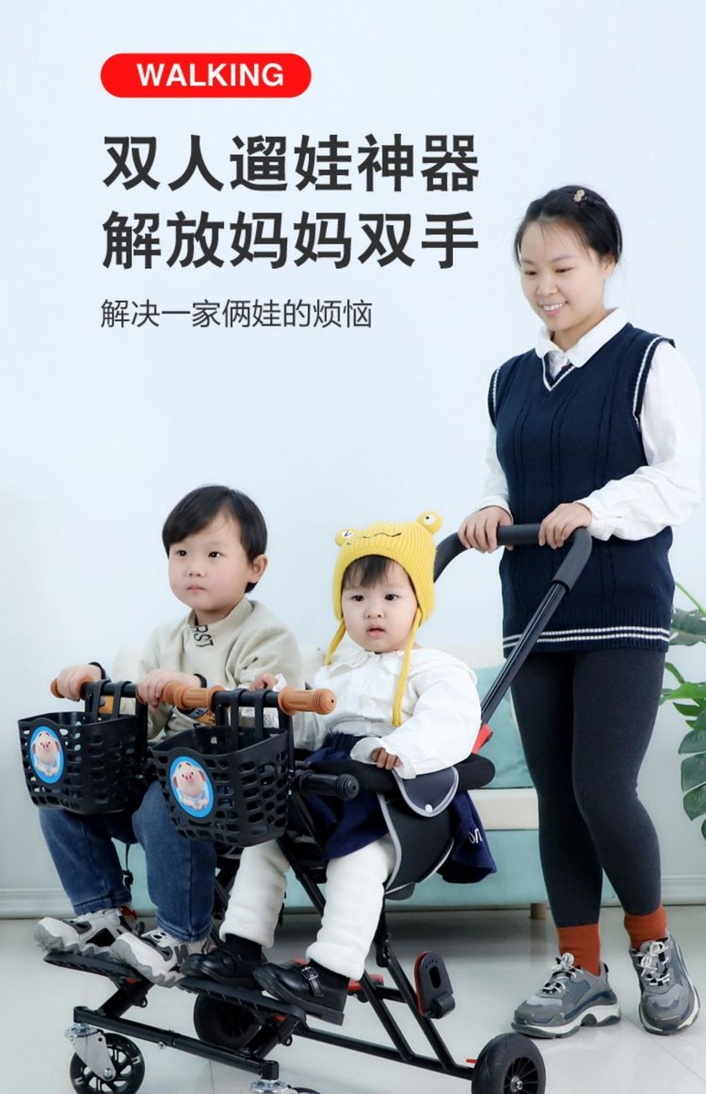 双人遛溜娃神器双胞胎婴幼儿童小孩可折叠旋转双座轻便二胎手推车