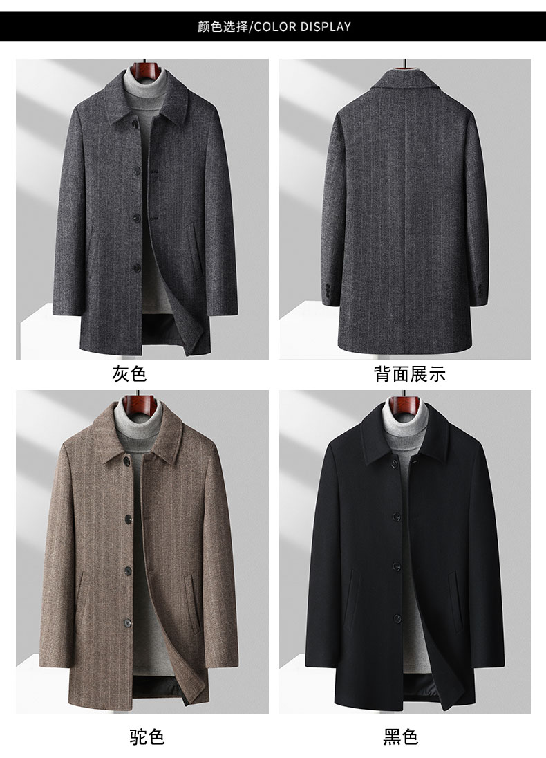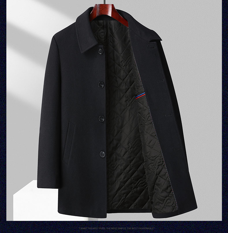 皮尔卡丹羊毛呢大衣男士中长款冬季羊绒风衣韩版休闲呢子加厚外套