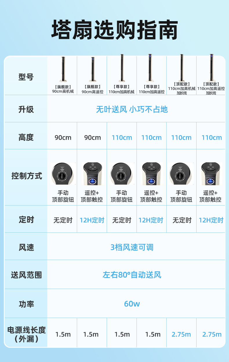 钻石牌塔扇电风扇家用无叶风扇节能卧室轻音大风塔立式落地扇新款