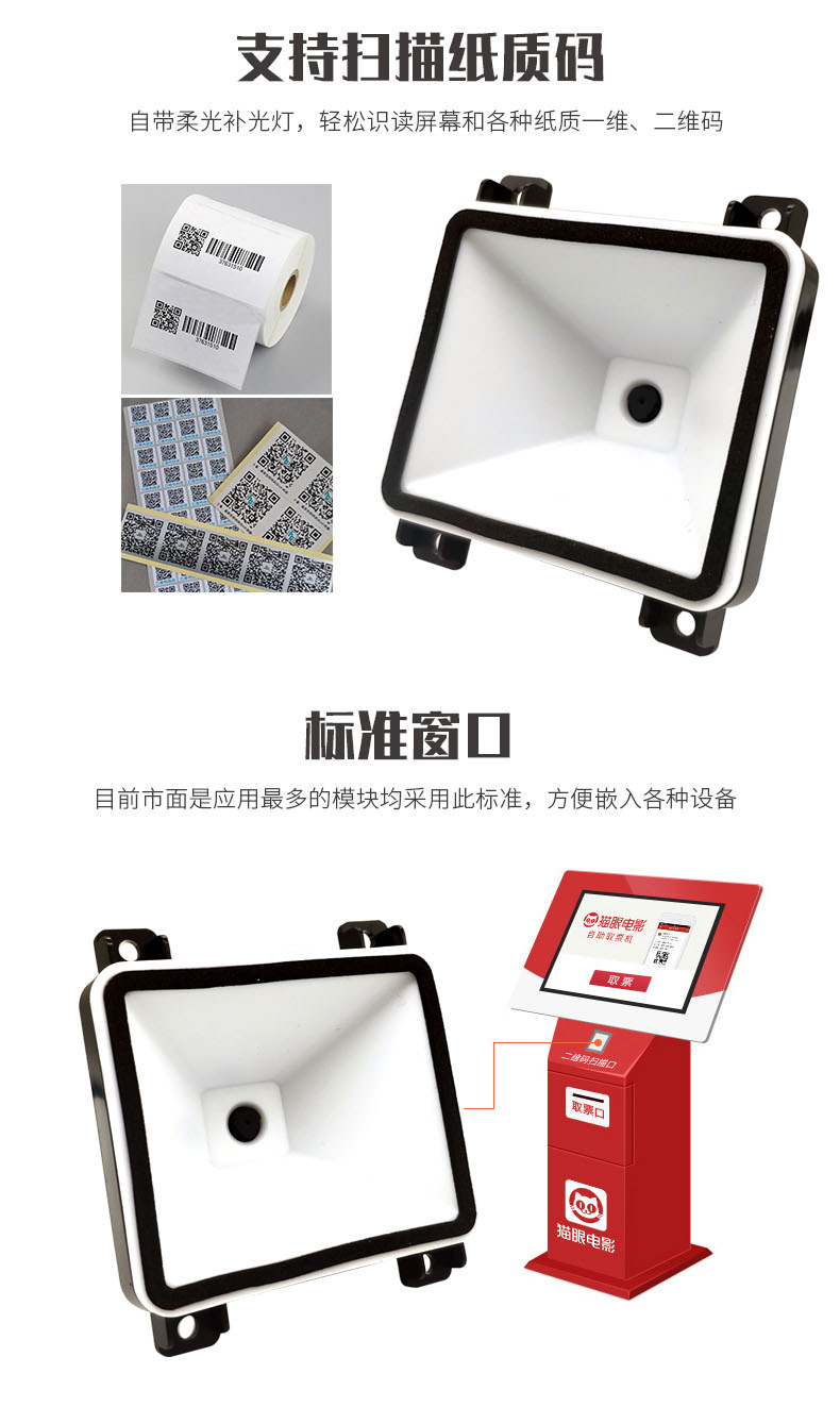 二维码扫描模组景区闸机餐饮电影院娃娃机自助终端机嵌入式扫码器