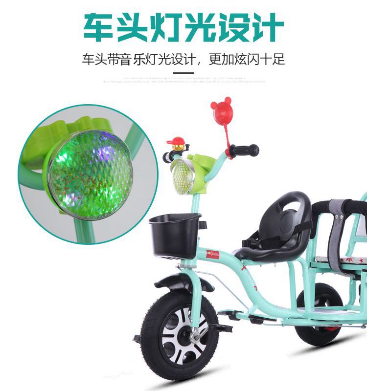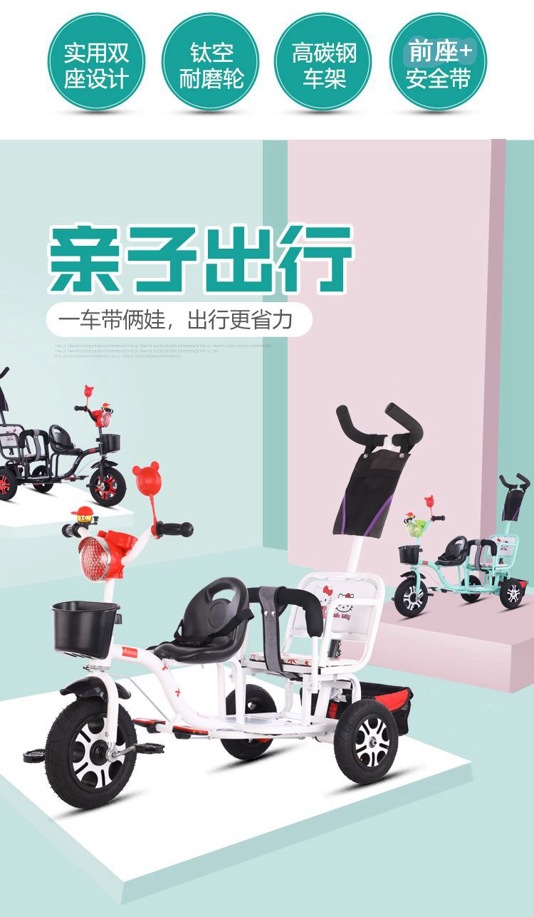 双人儿童三轮车双胞胎童车二胎双座脚踏车宝宝婴儿幼儿大号手推车