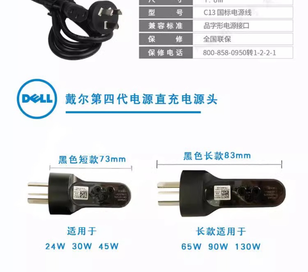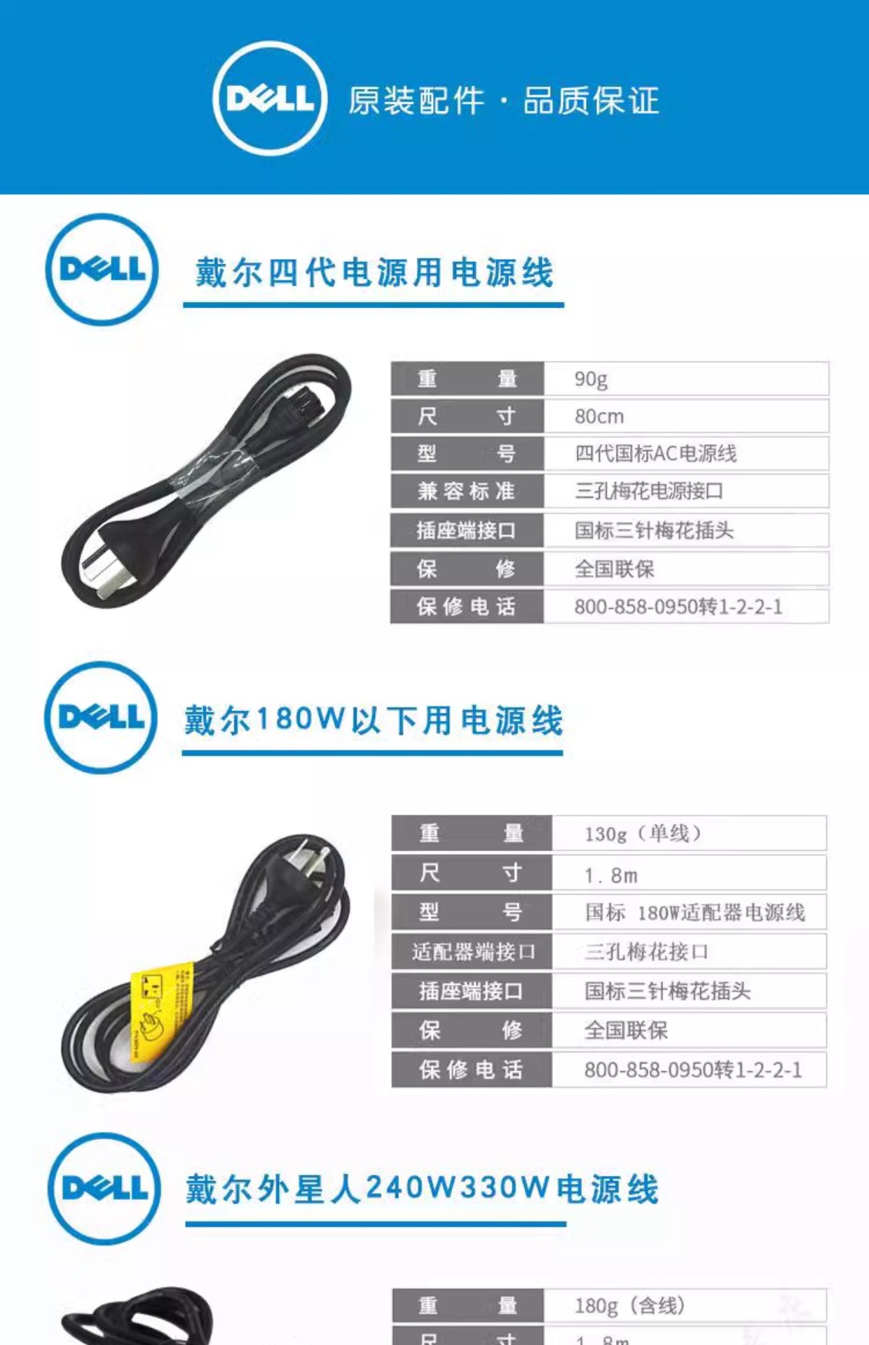 正品戴尔DELL 外星人笔记本适配器 电源线三孔梅花孔联想惠普通用
