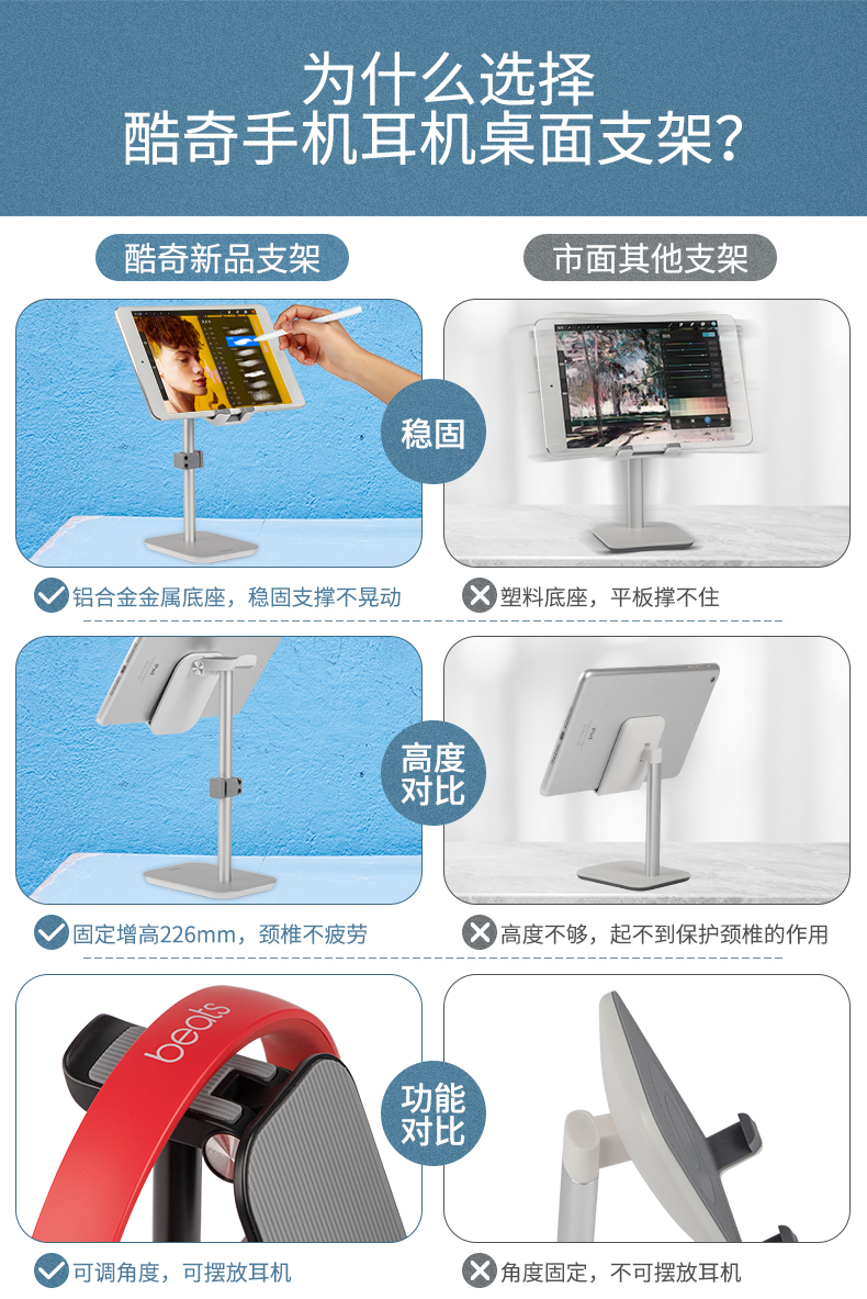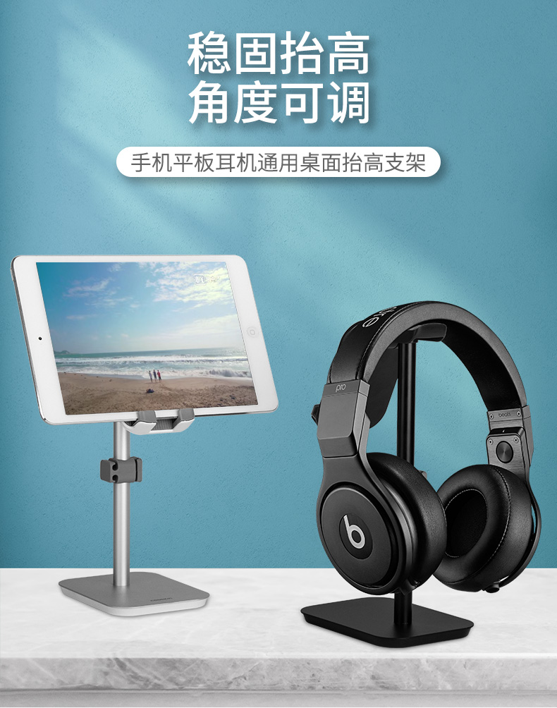 手机网课支架桌面pad平板通用底座头戴式耳机收纳架子挂钩直播支撑夹托多功能懒人床头看电视追剧便携耳麦架
