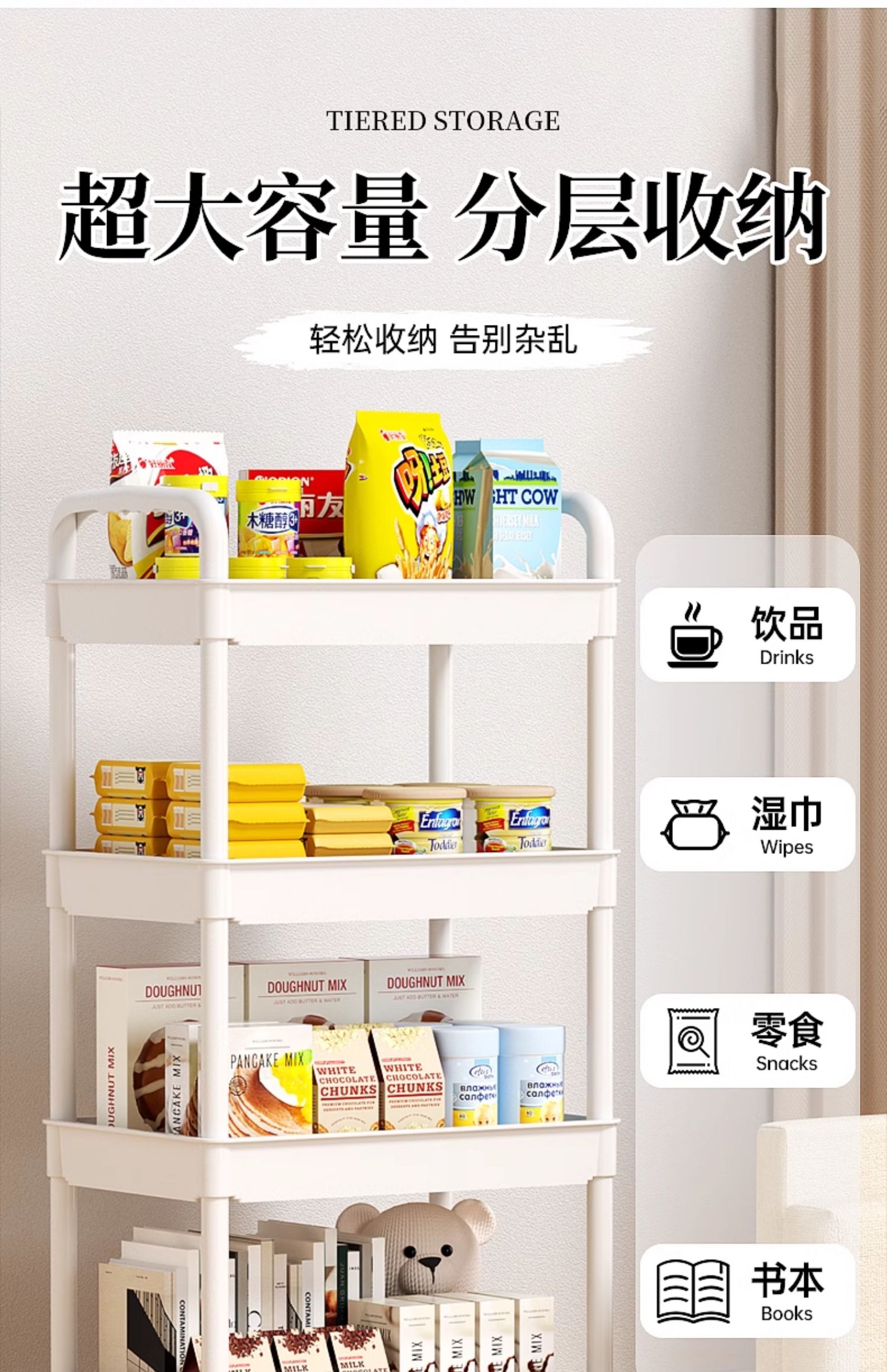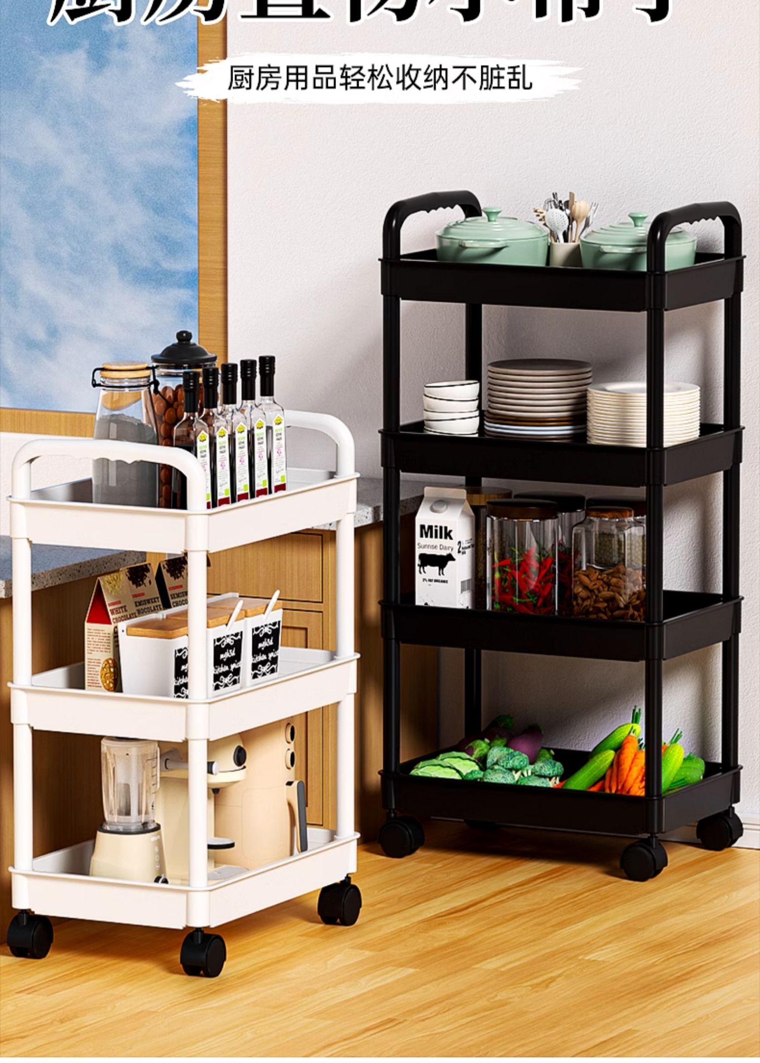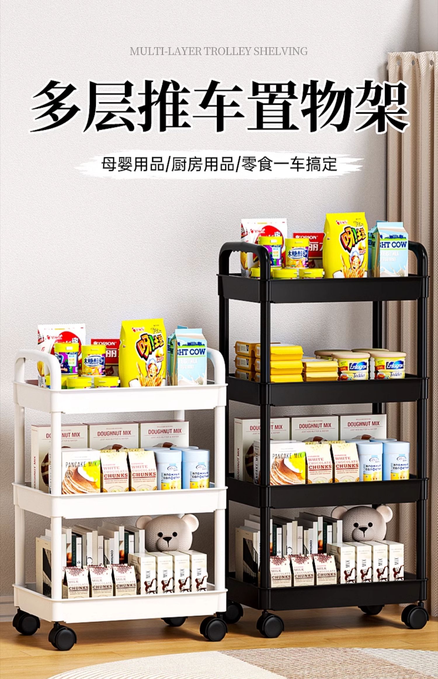 小推车置物架厨房落地卧室多层婴儿零食移动浴室卫生间收纳储物架