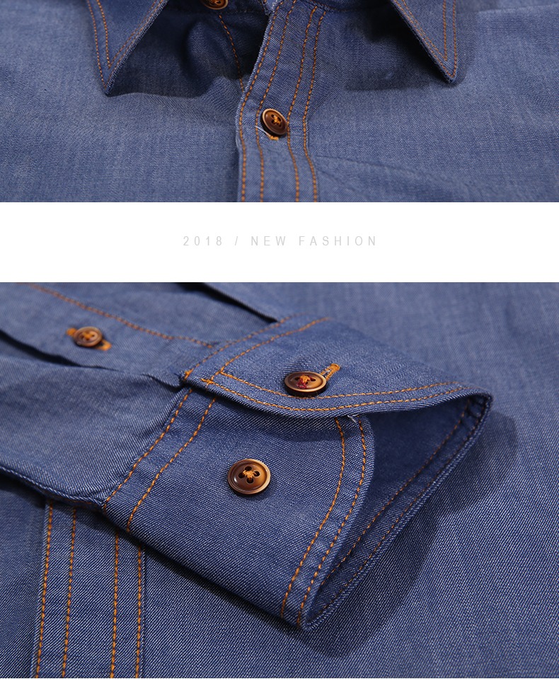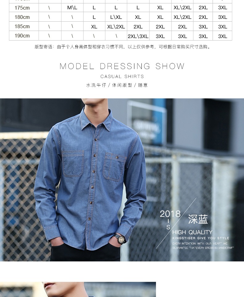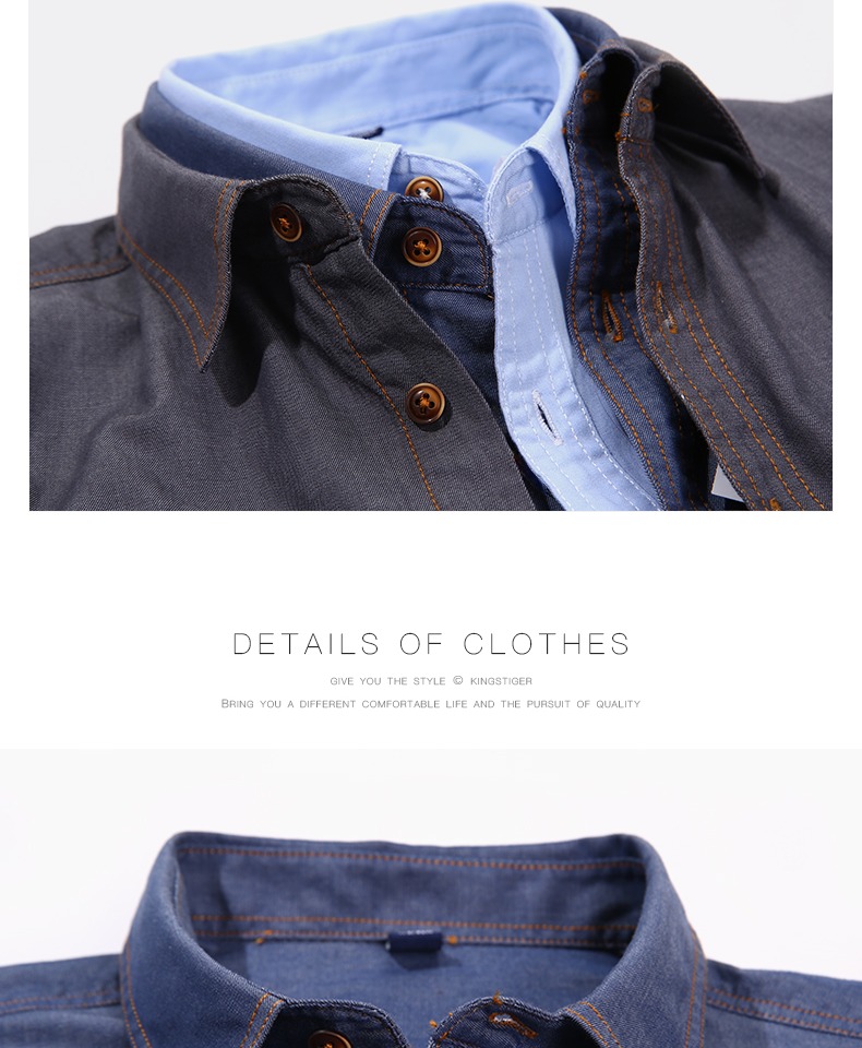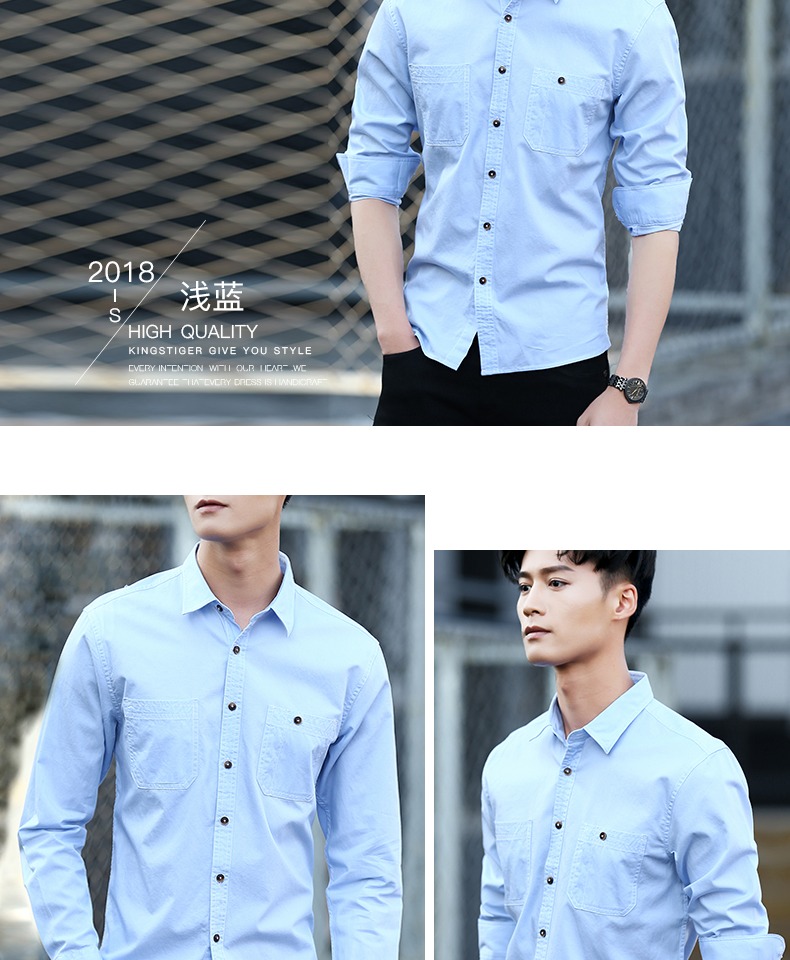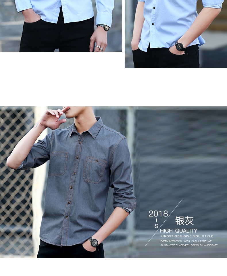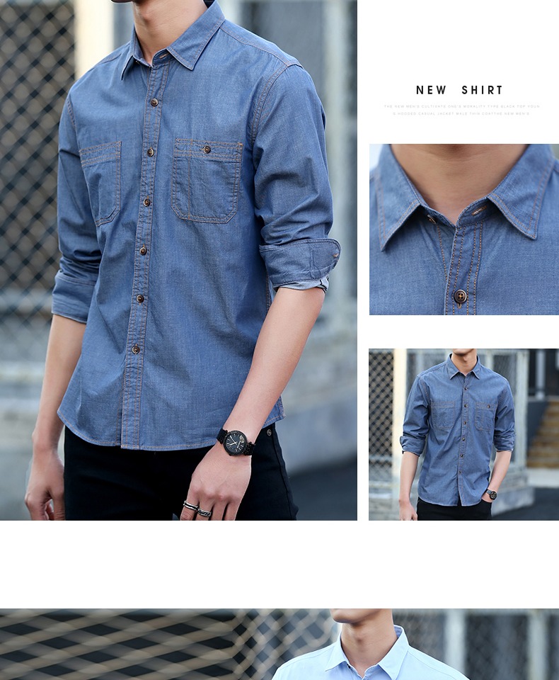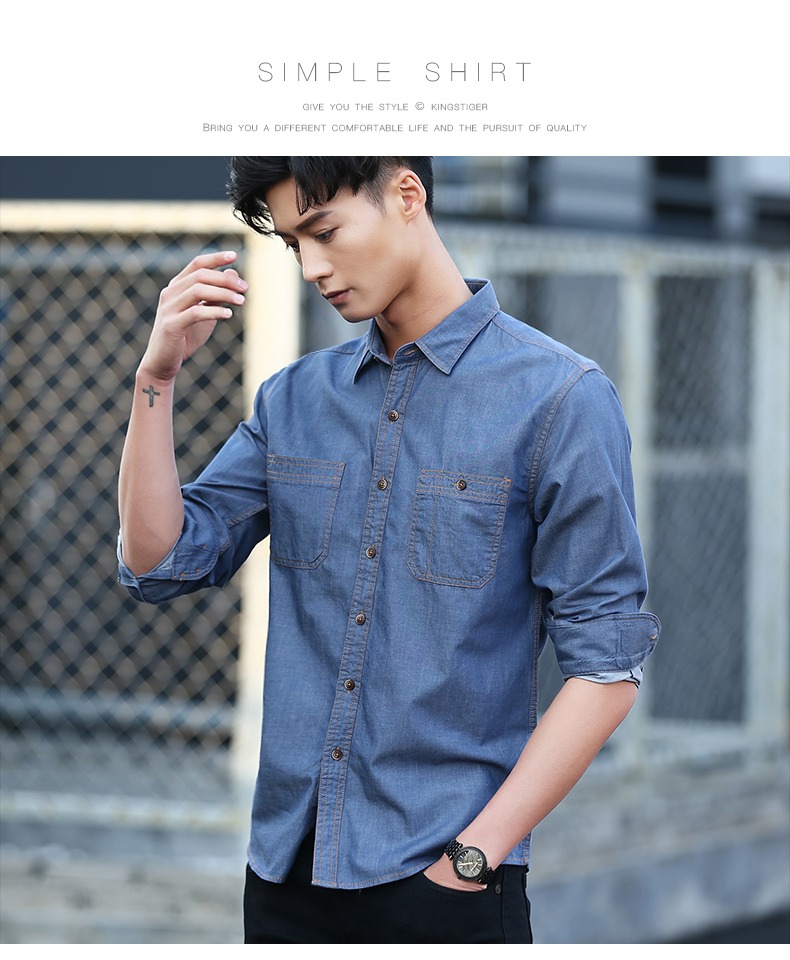 春季男士纯棉衬衣宽松青年上衣服休闲长袖牛仔衬衫男装大码潮外套