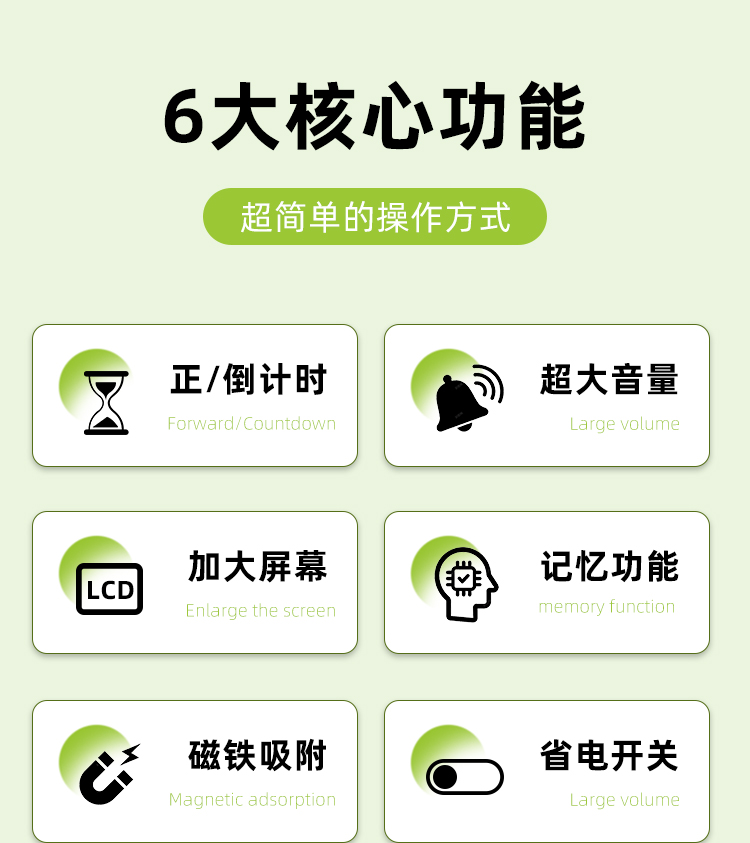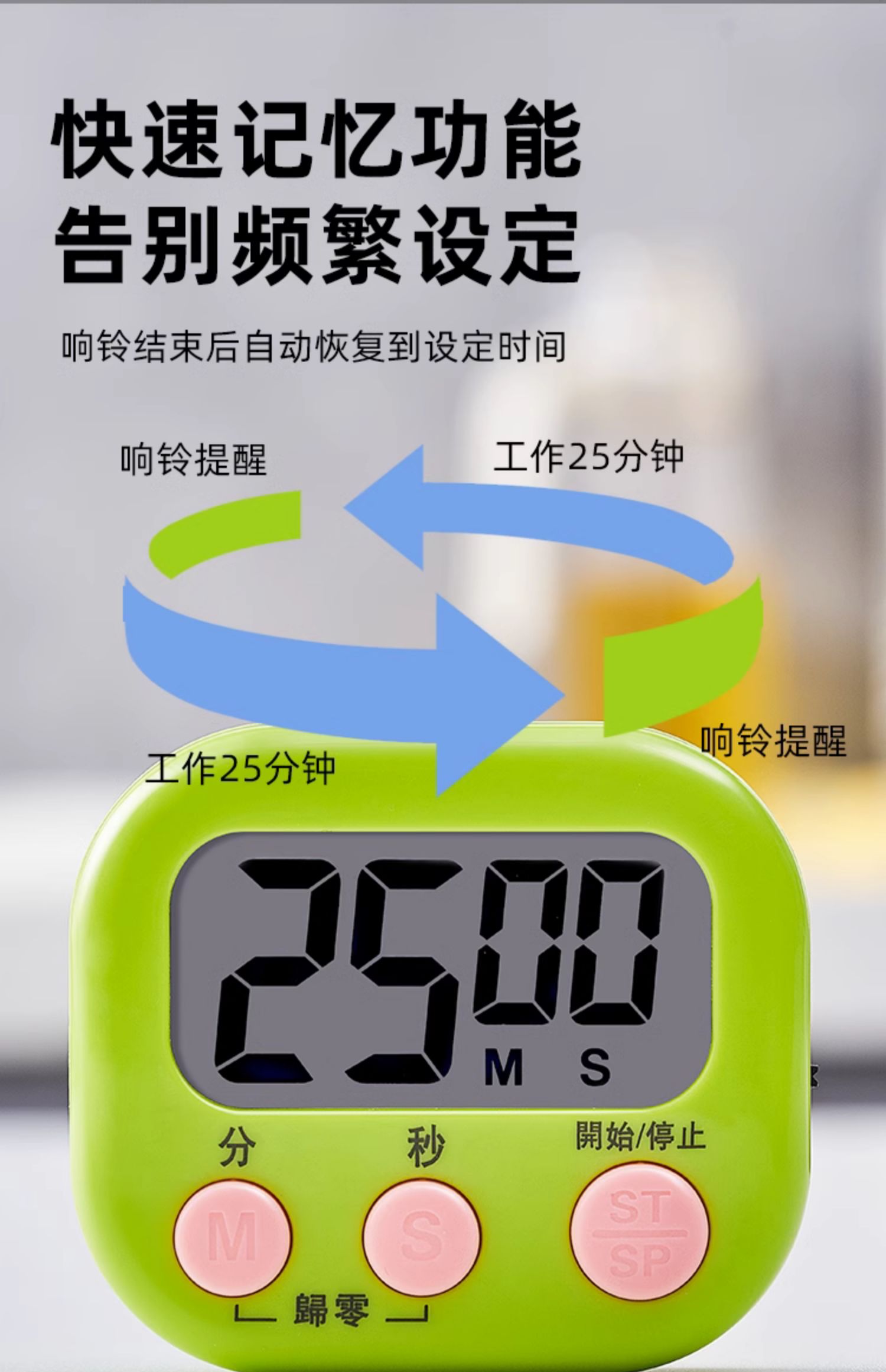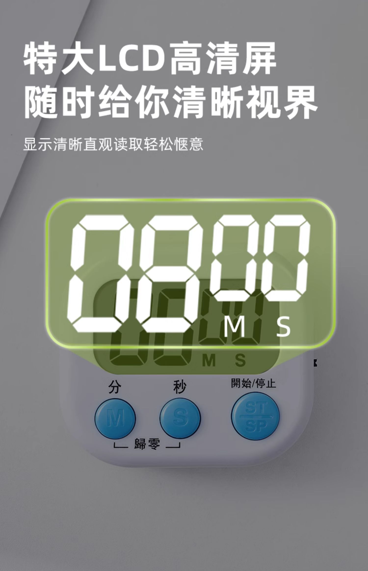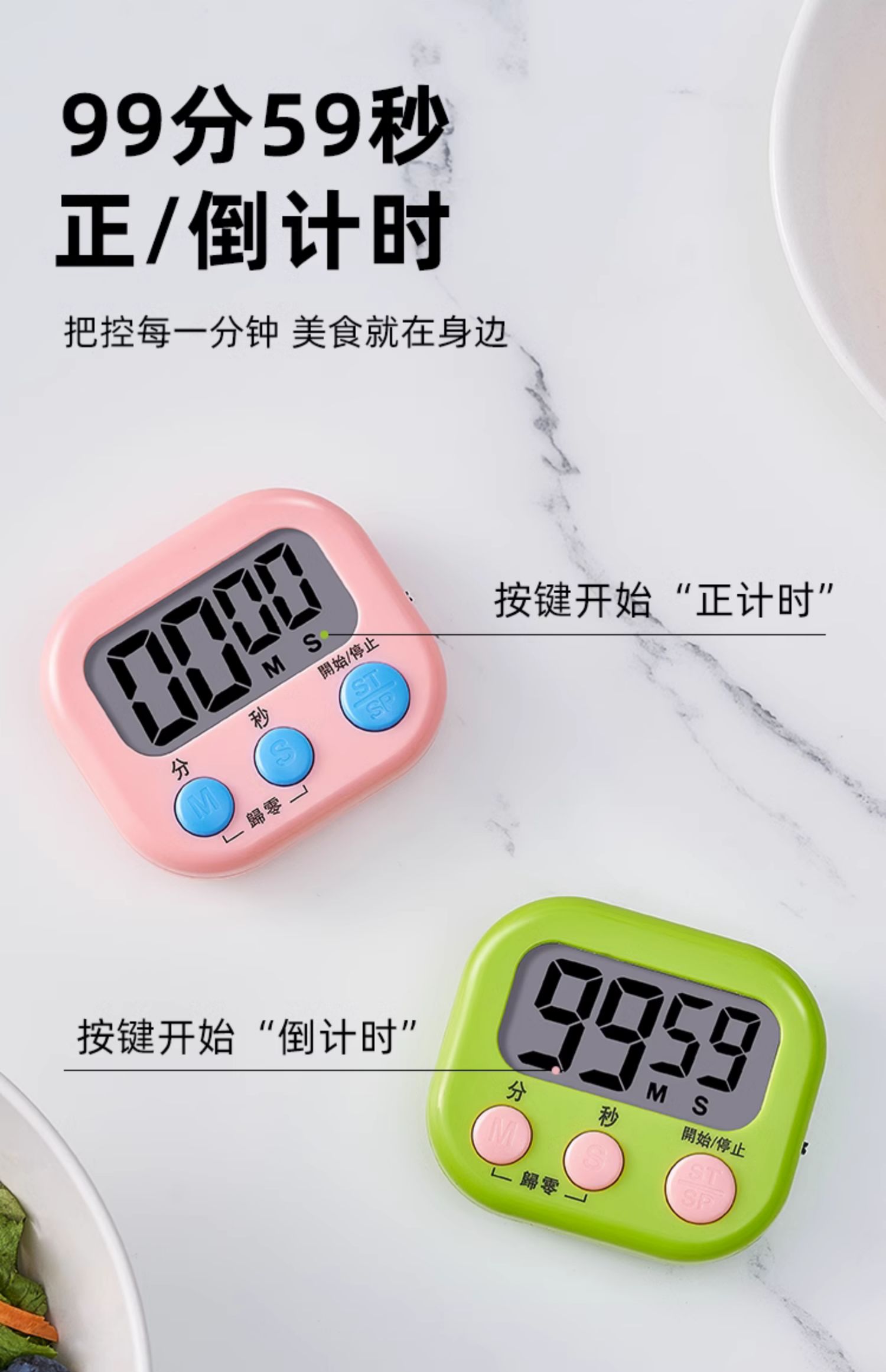 厨房定时器计时器提醒器学生倒计时器电子闹钟秒表钟磁吸商用停止