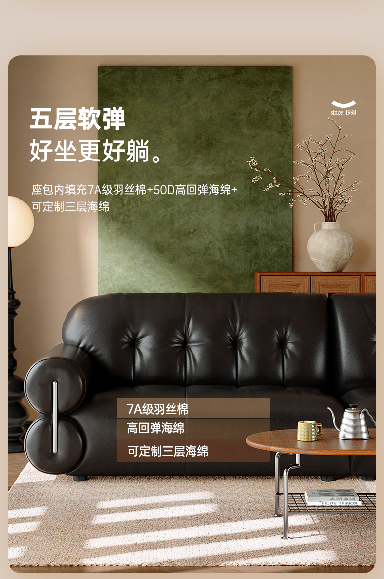浪度黑糖功能真皮沙发黑色复古小户型电动调节可伸缩头层牛皮新款
