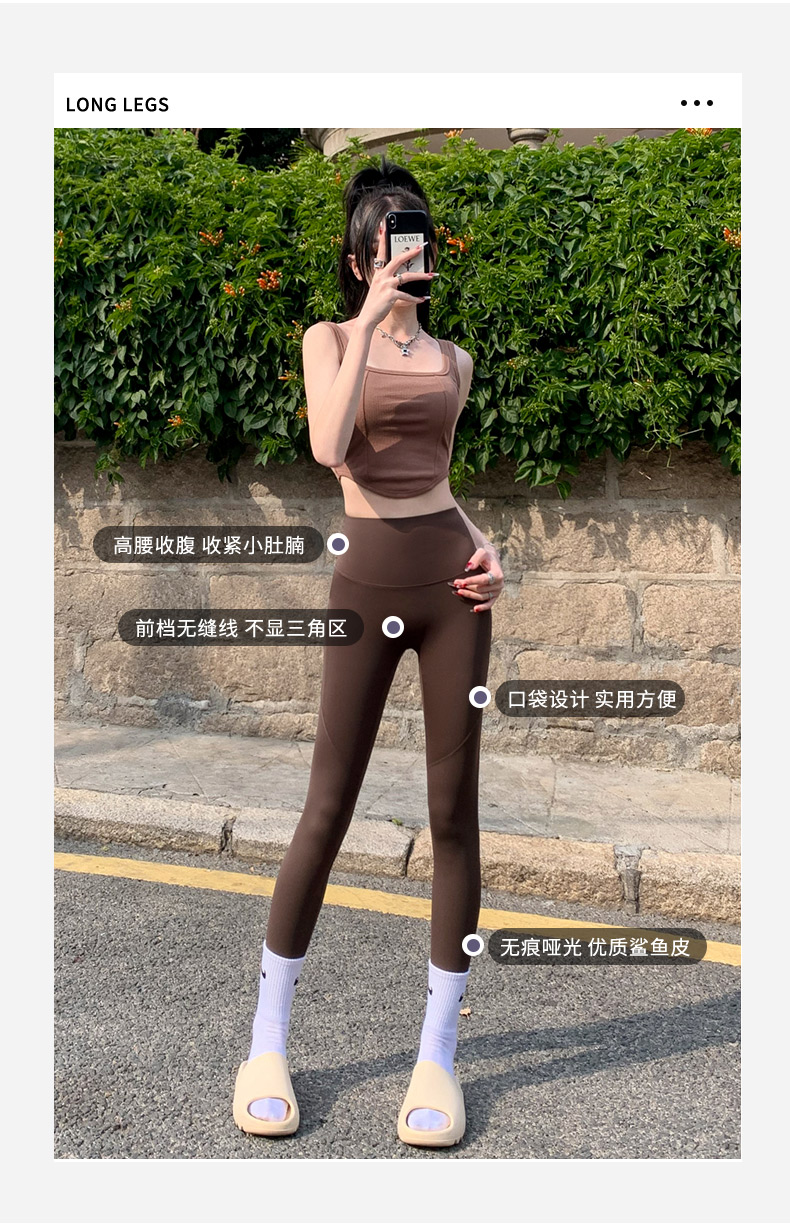 口袋鲨鱼裤2025新款春秋薄款女外穿瑜伽打底裤紧身收腹提臀芭比裤