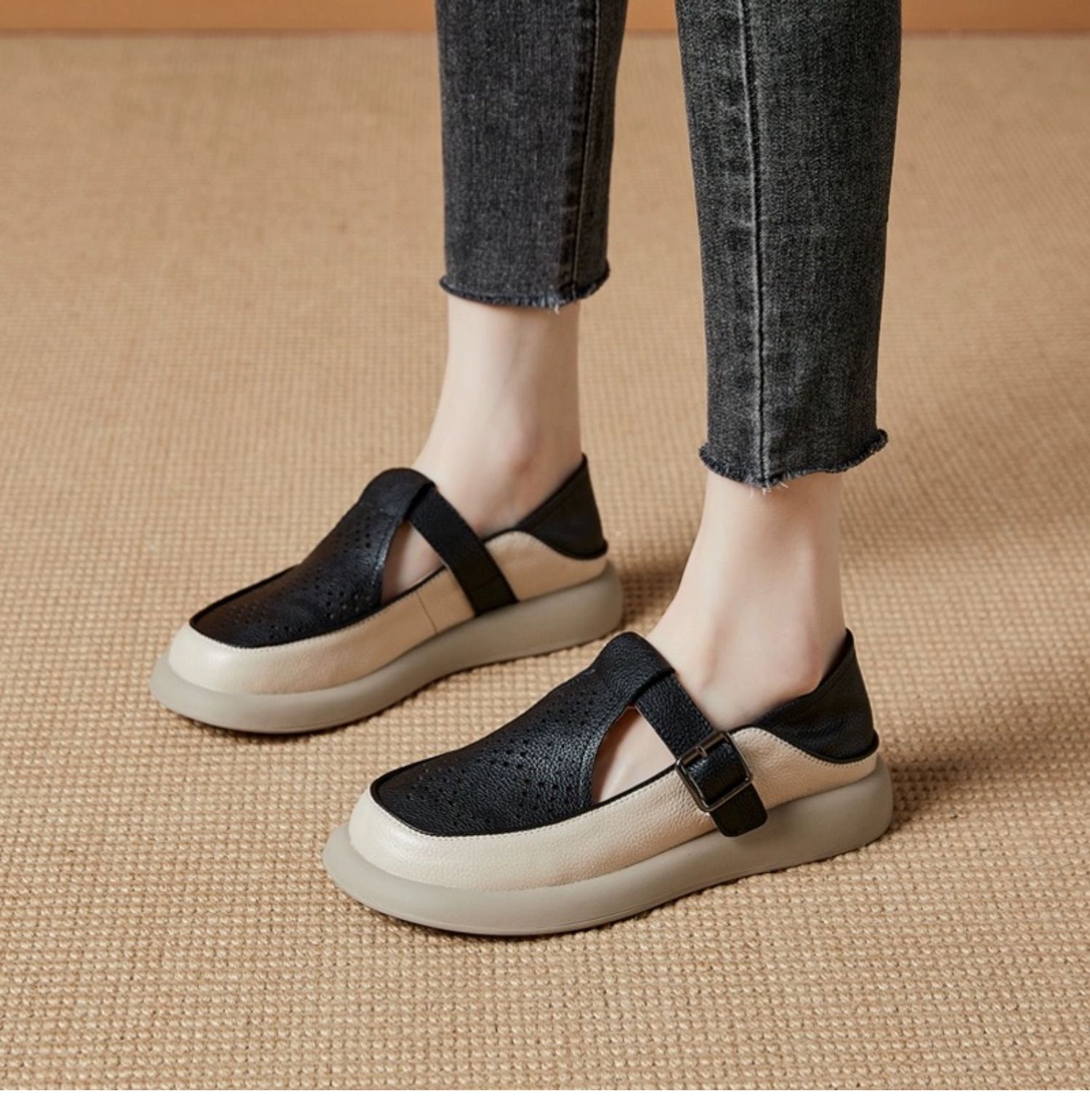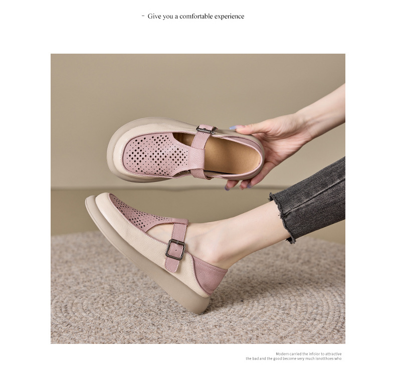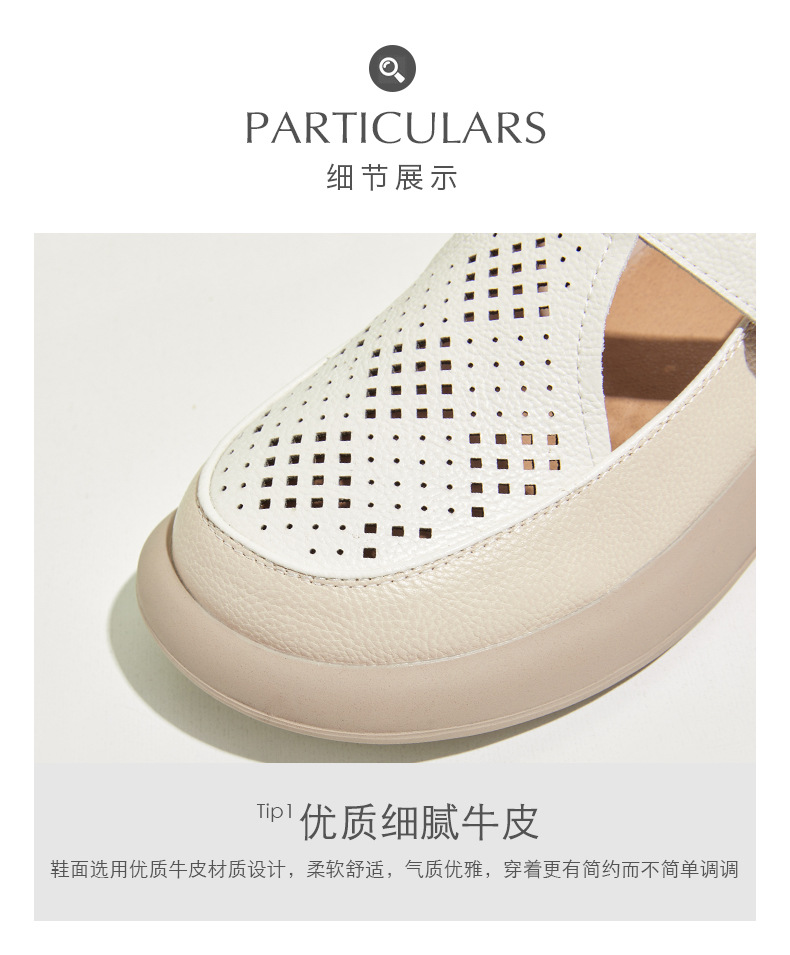 包头罗马凉鞋女2025年新款夏季平底休闲洞洞鞋真皮踩跟镂空单鞋子
