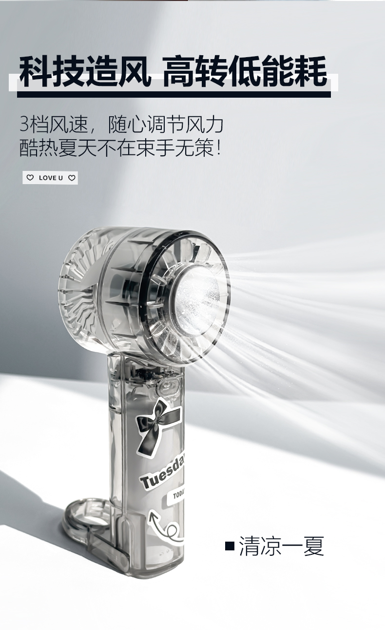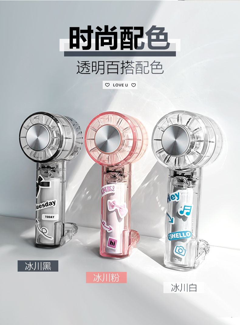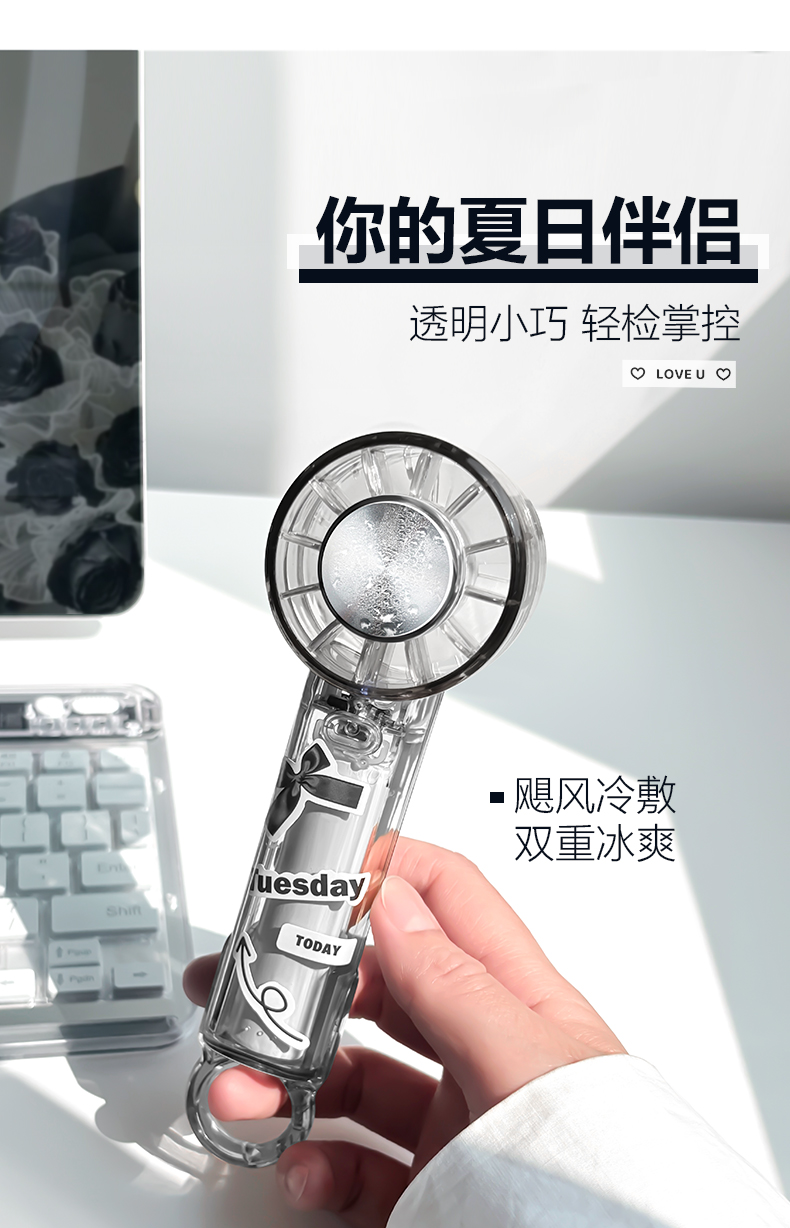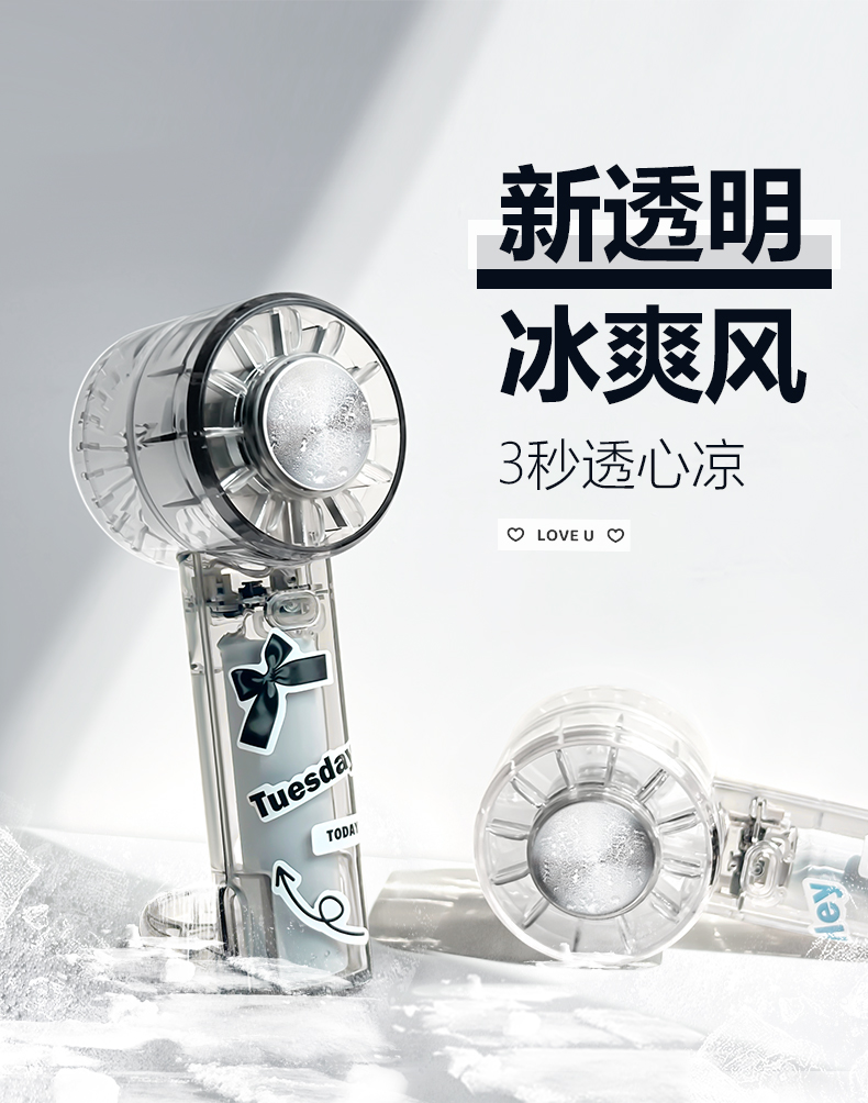 透明手持制冷小风扇2025新款便携式随身迷你涡轮风扇学生上课静音办公室桌上usb电风扇超大风力户外降温神器